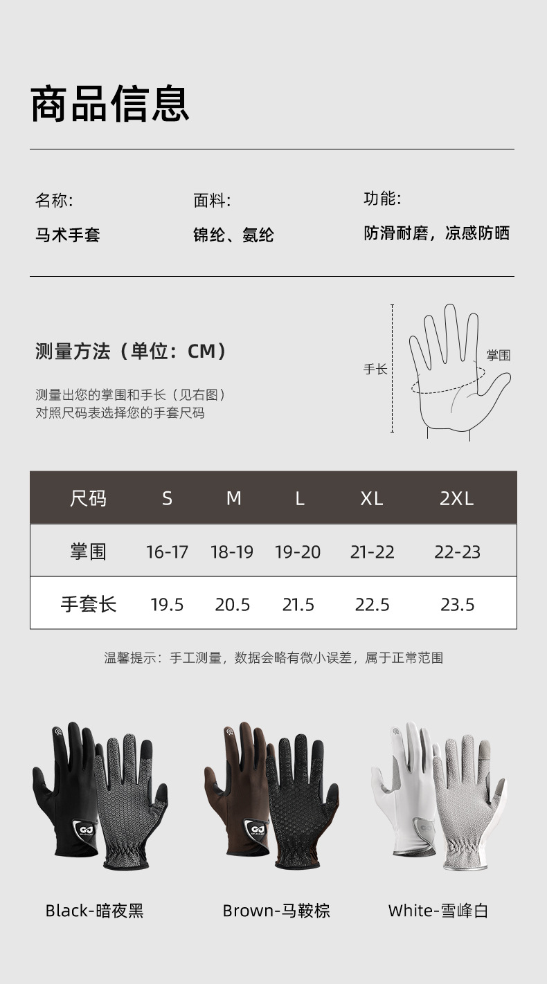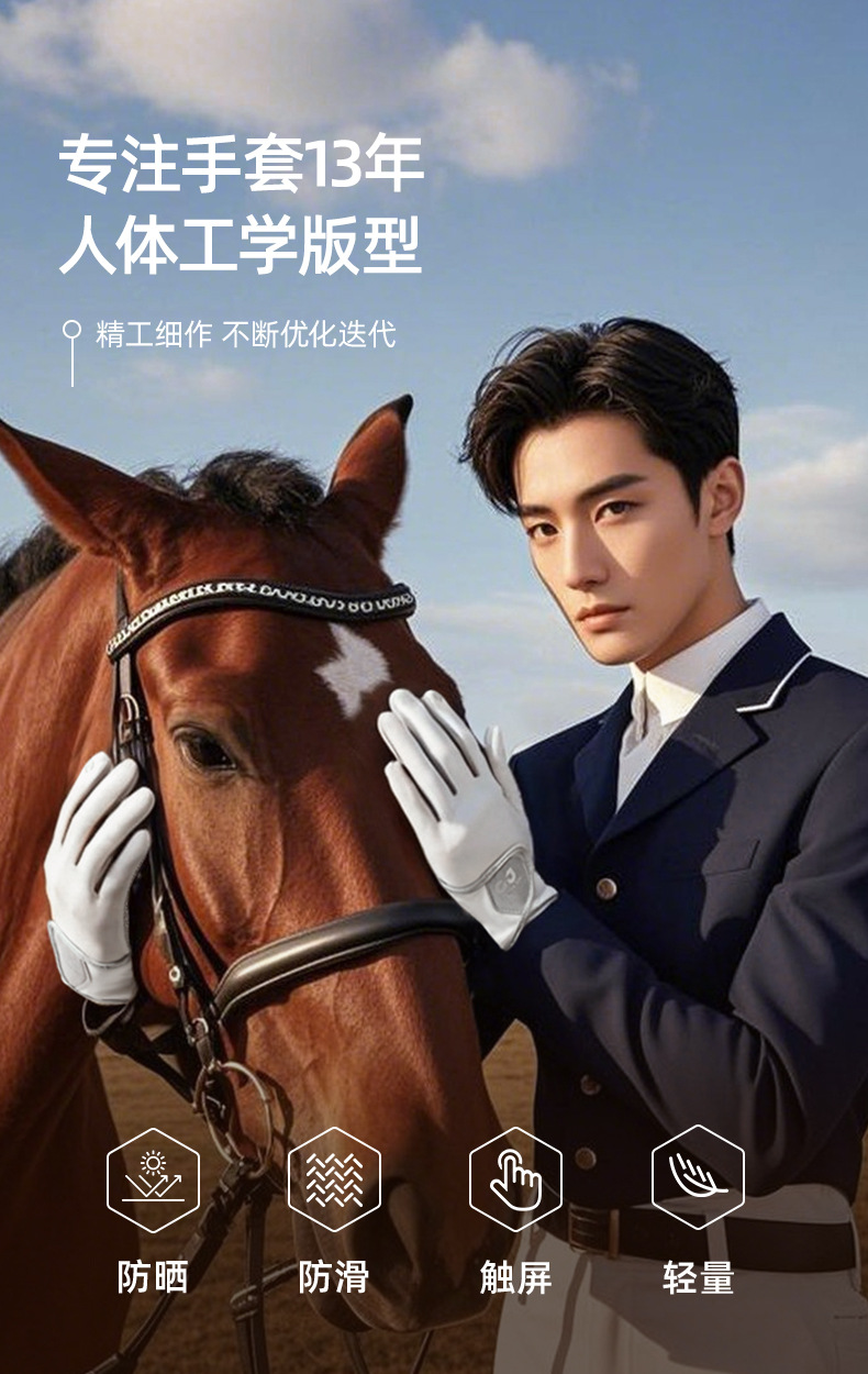 新款马术手套训练赛马手套骑马手套防滑冰丝防晒手套透气耐磨触屏