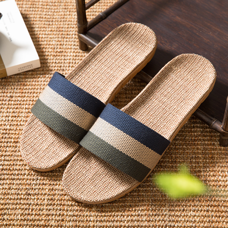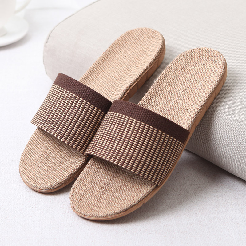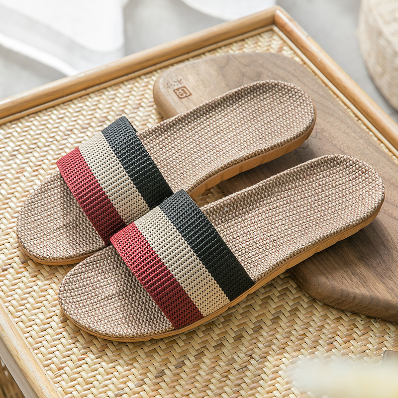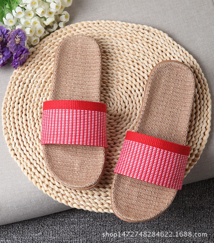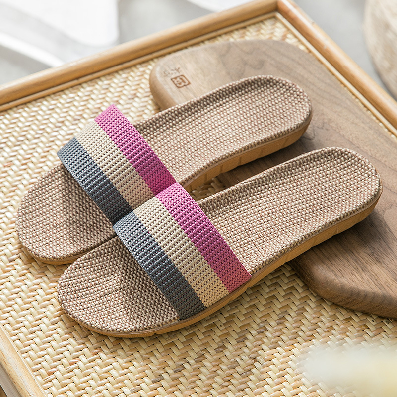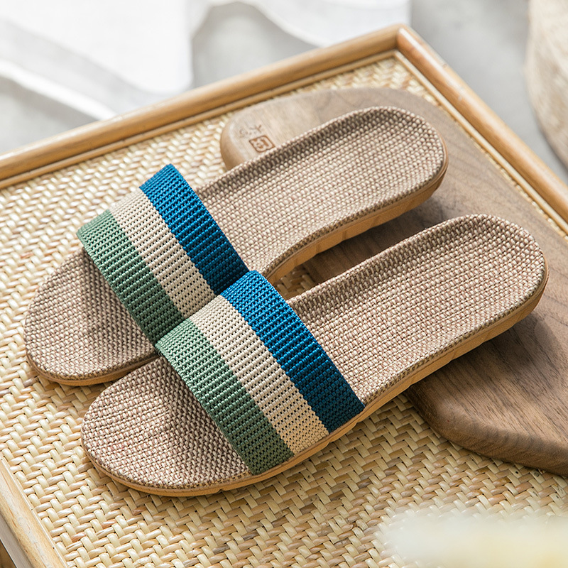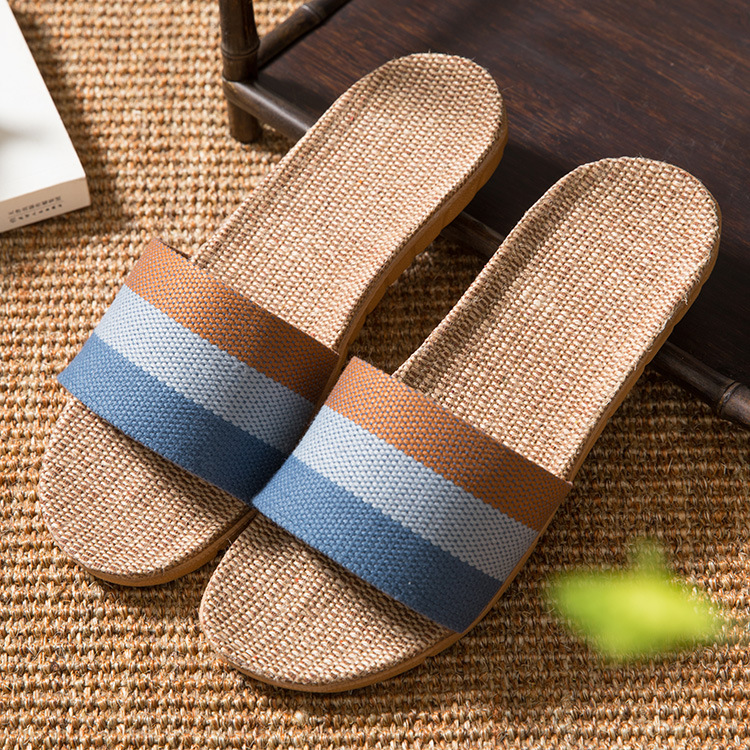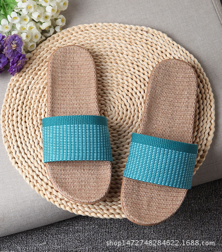 亚麻拖鞋家居拖鞋室内拖鞋木地板一字静音防滑厚底夏季凉拖鞋男女