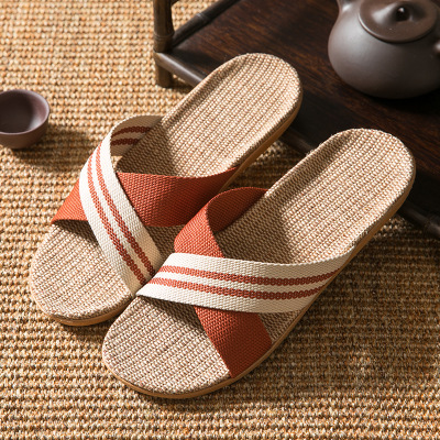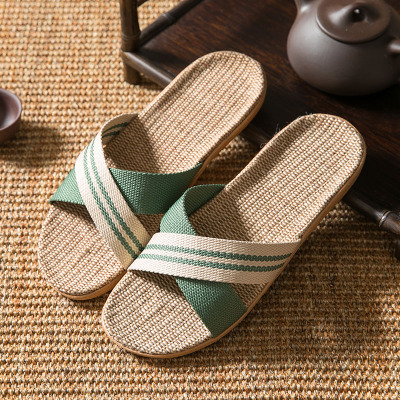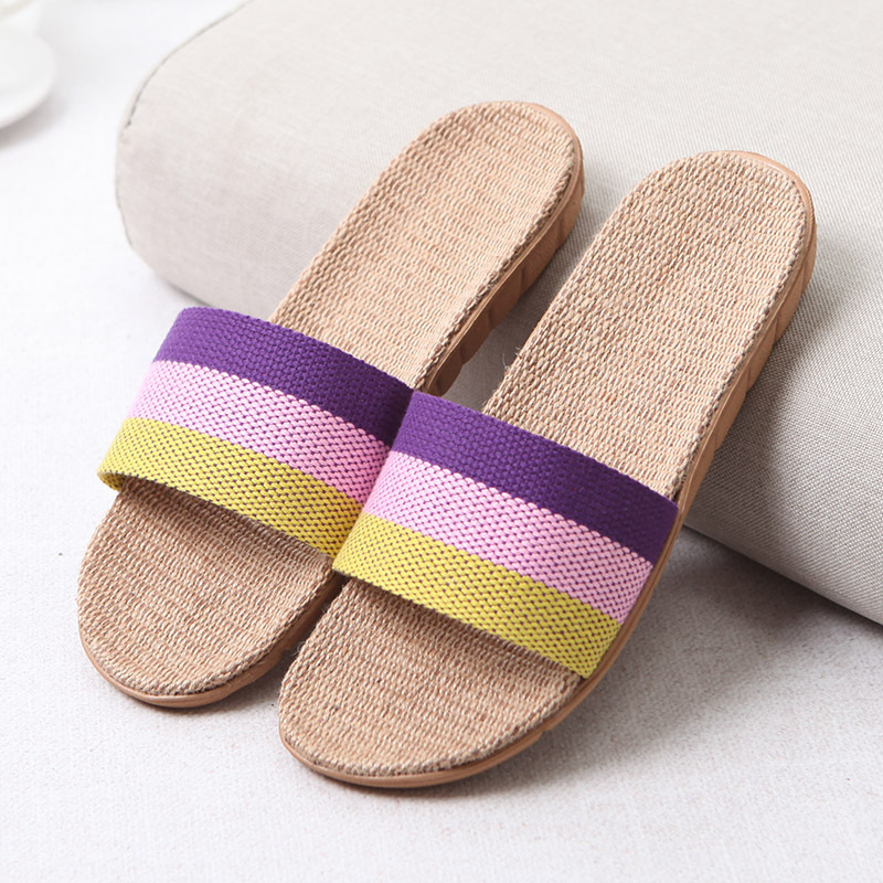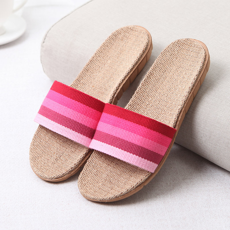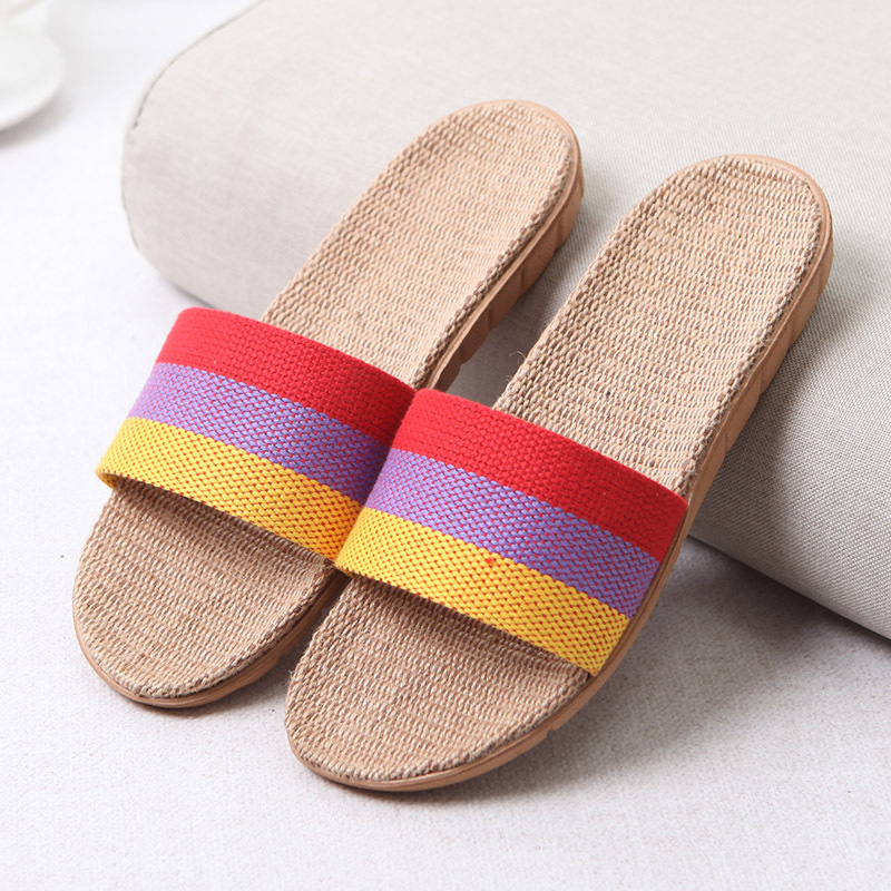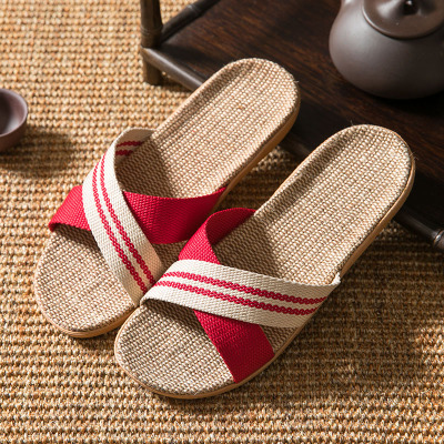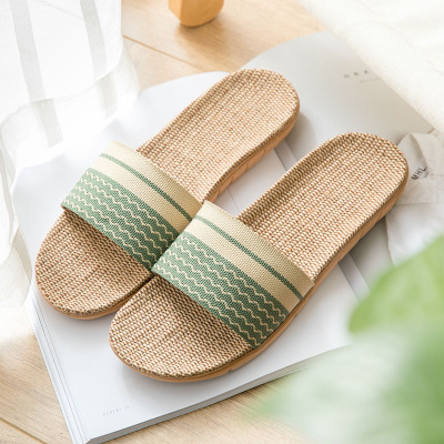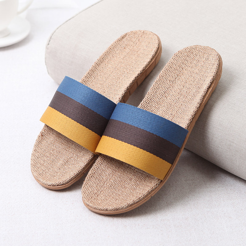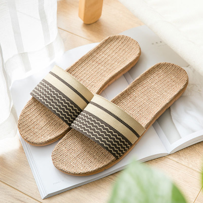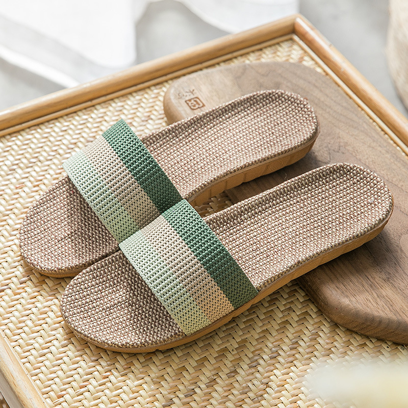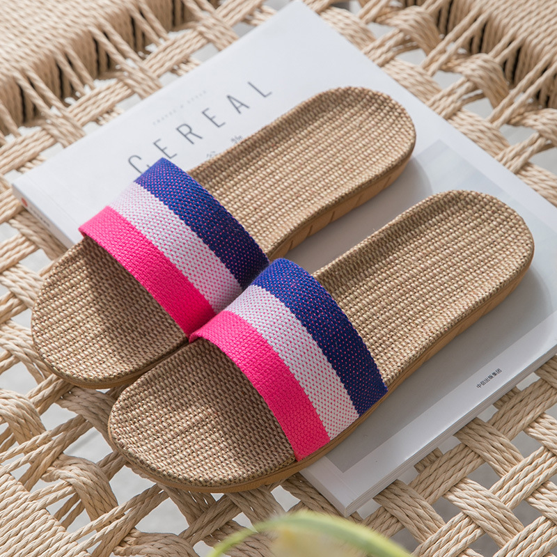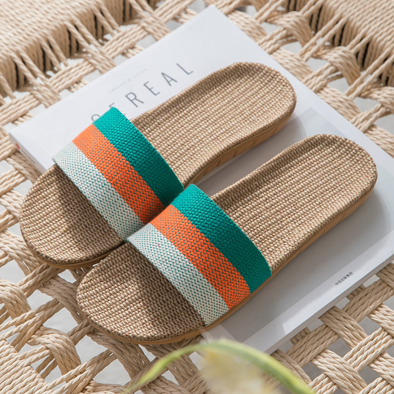 亚麻拖鞋家居拖鞋室内拖鞋木地板一字静音防滑厚底夏季凉拖鞋男女