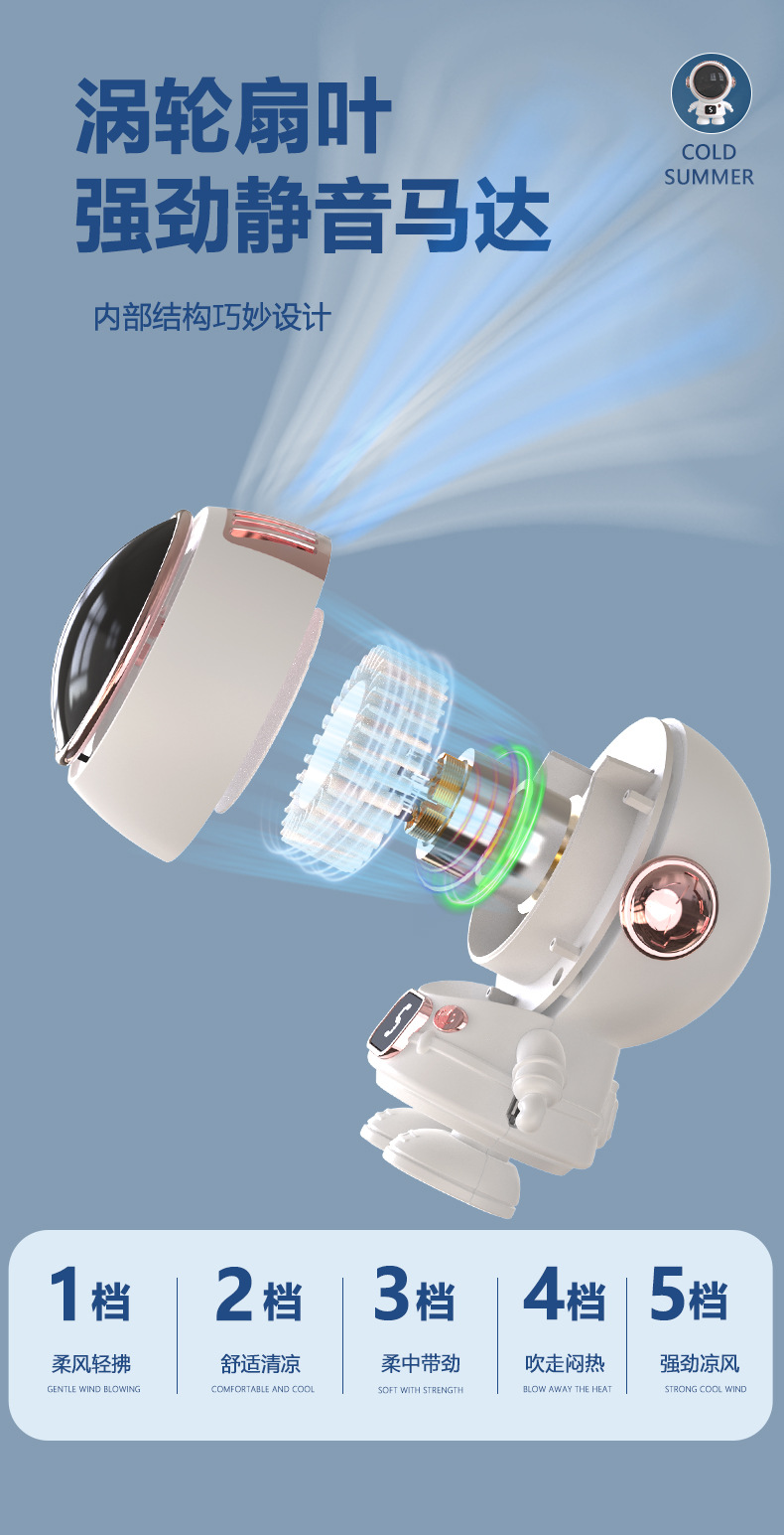 太空人挂脖风扇爆款手持迷你随身便携usb小电扇无叶宇航员小风扇