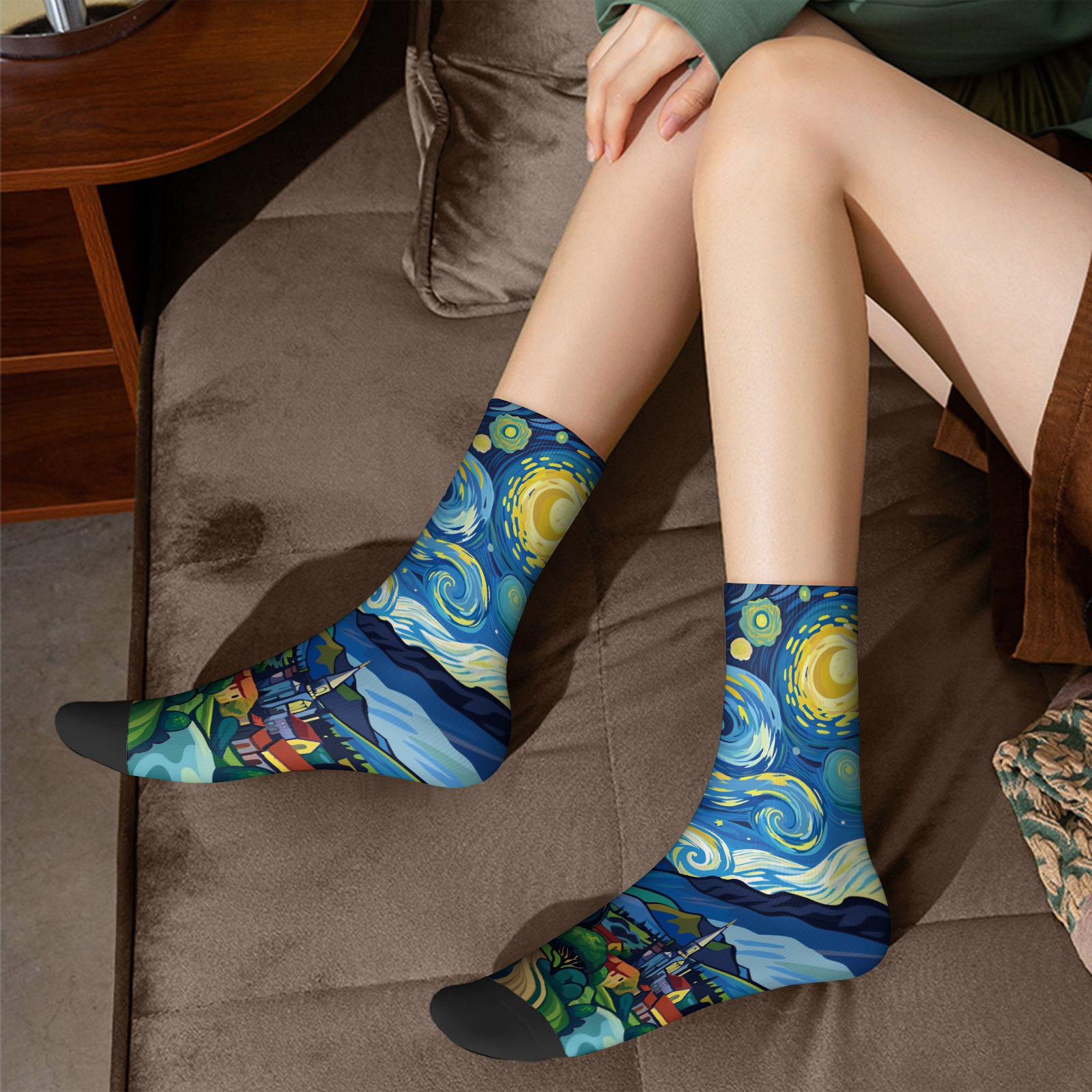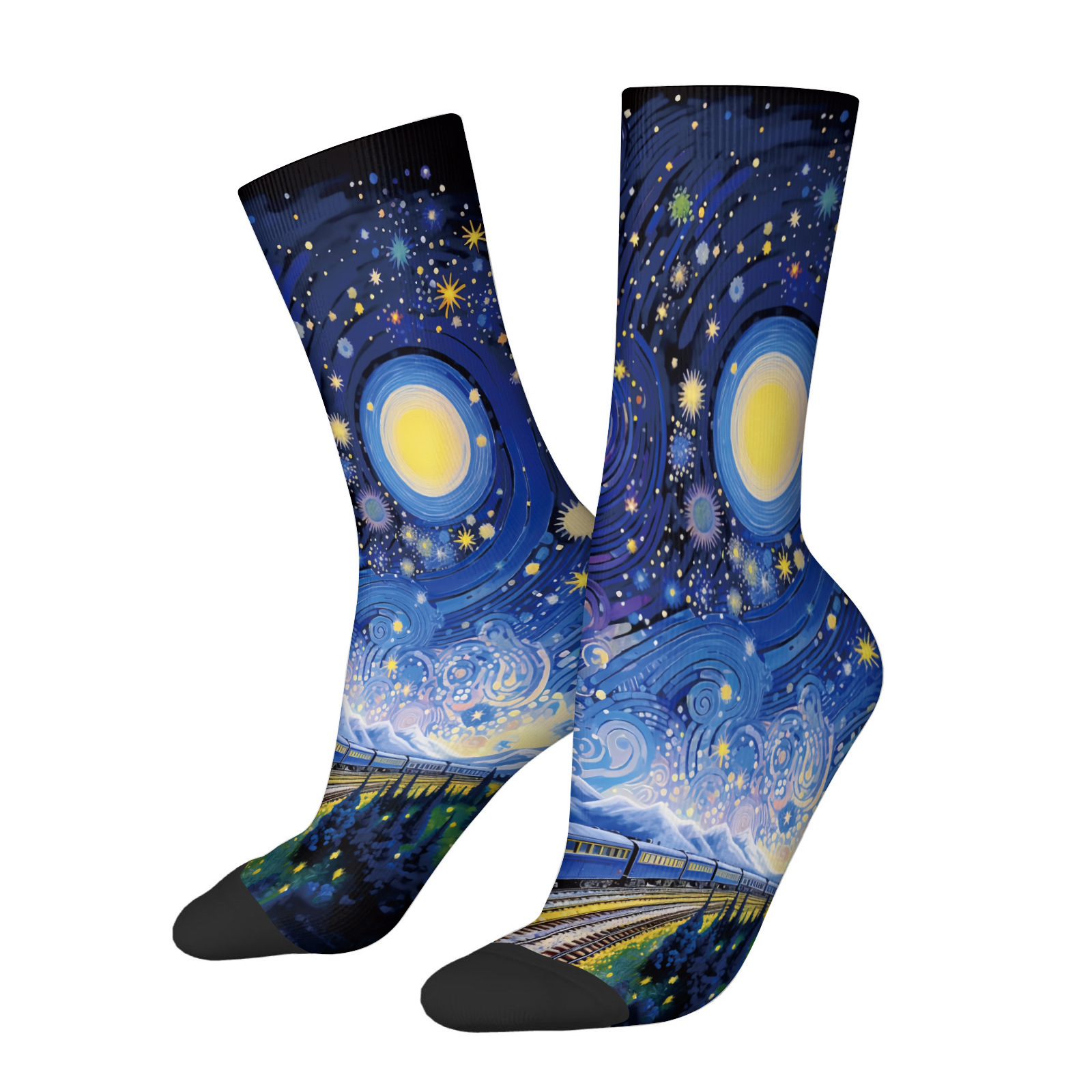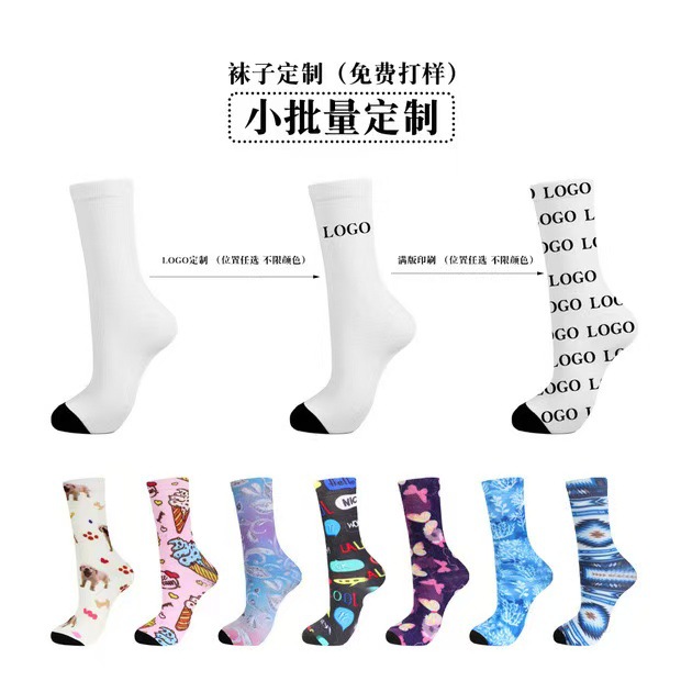 跨境袜子3D数码印花袜欧美运动袜360无缝热转印中筒袜潮袜数字67