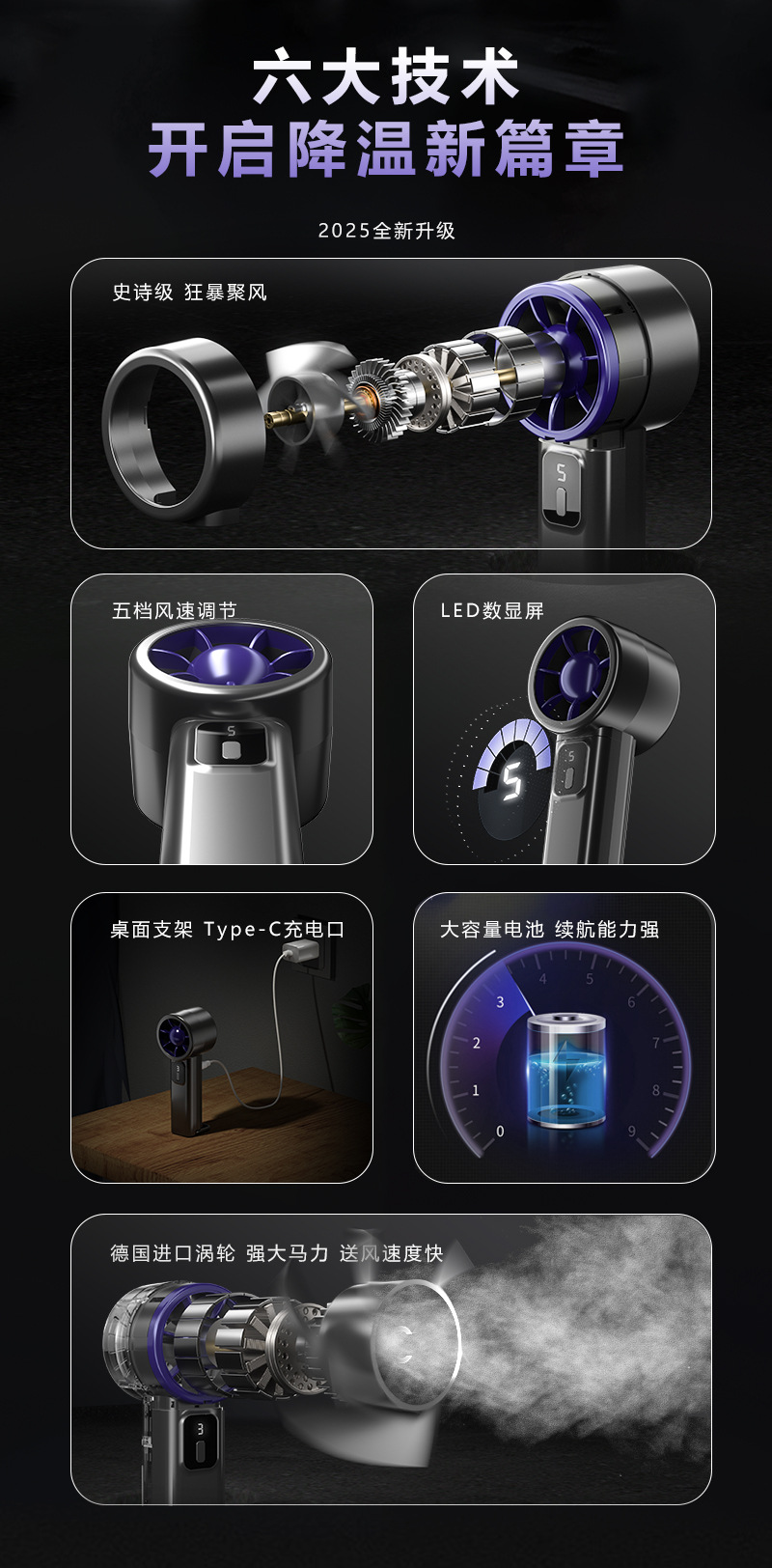 2025新款199档高速涡轮风扇usb迷你手持便携式199档暴力小风扇