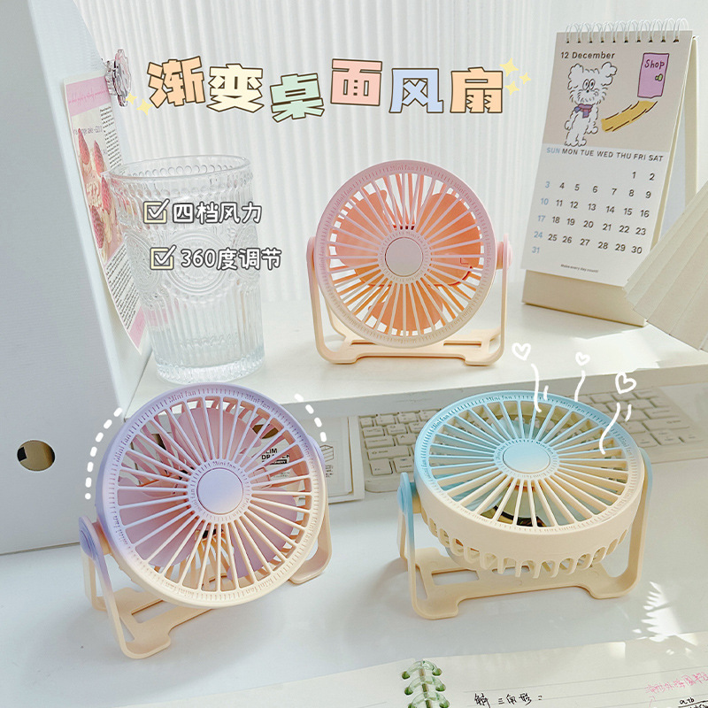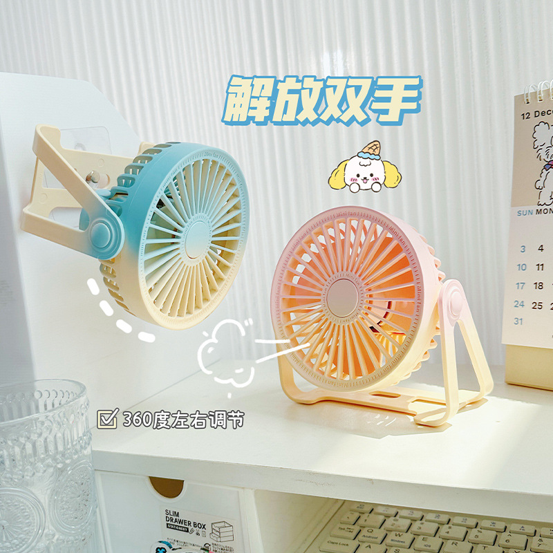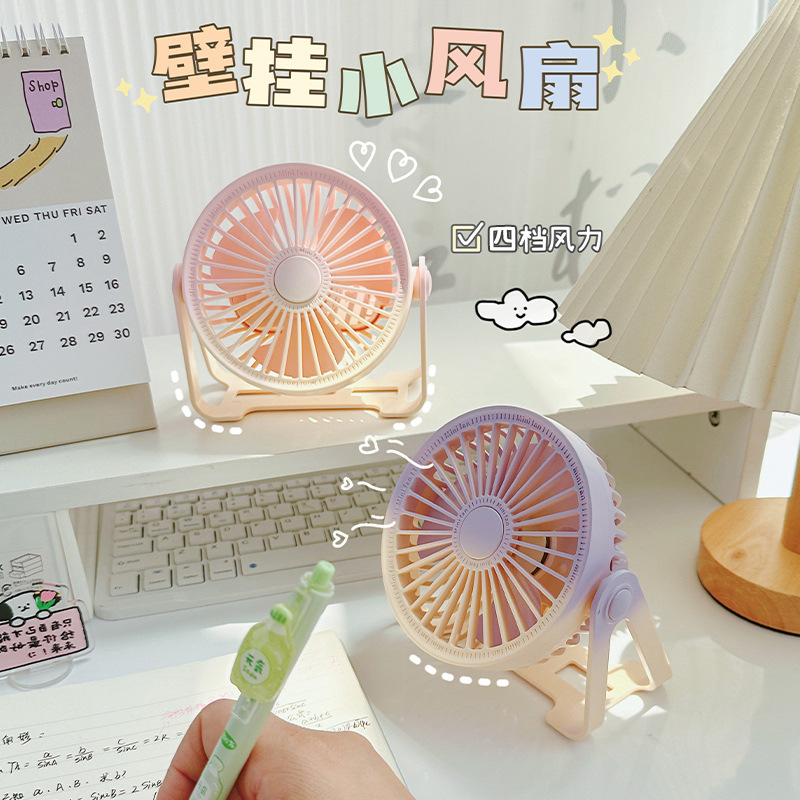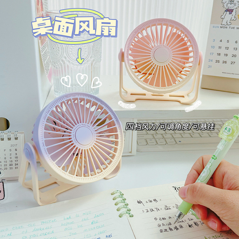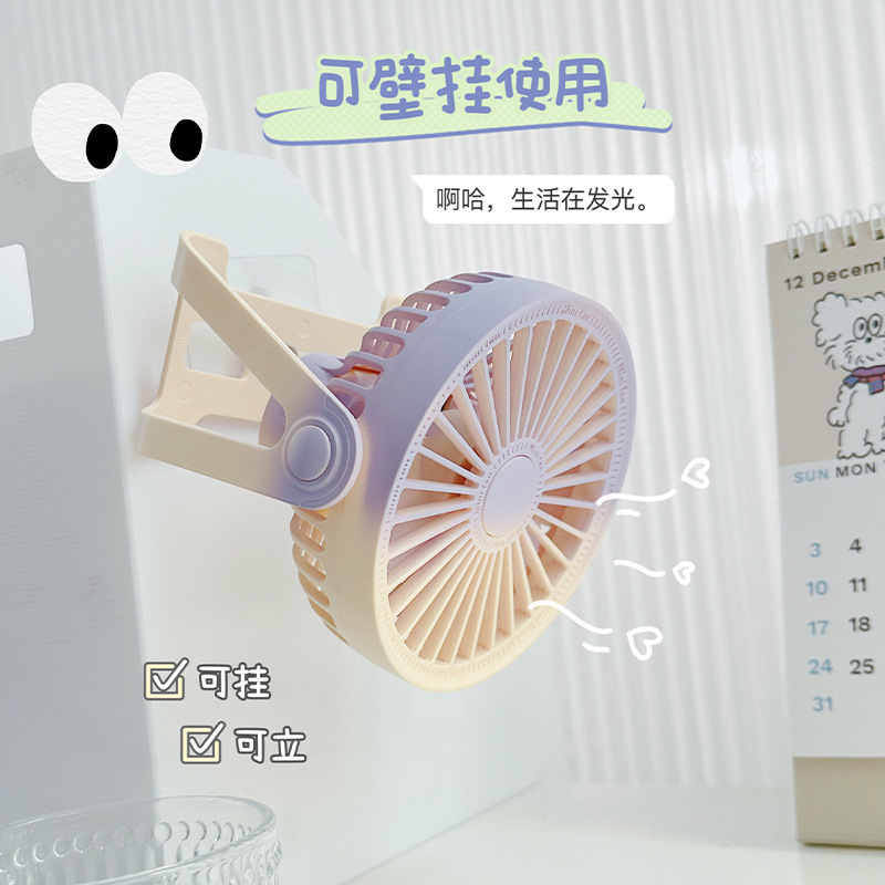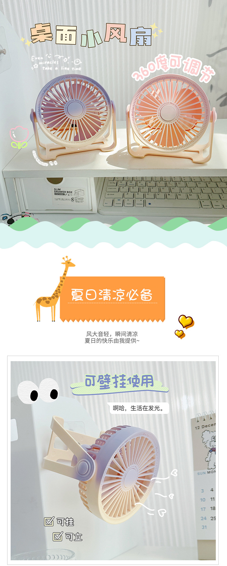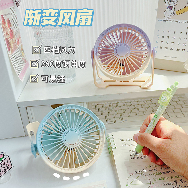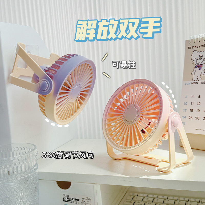 渐变壁挂桌面台扇便携USB办公室充电夏季清新安静风扇360°调节