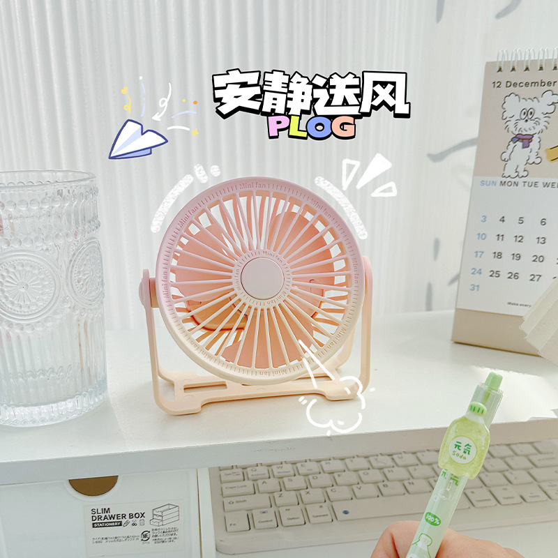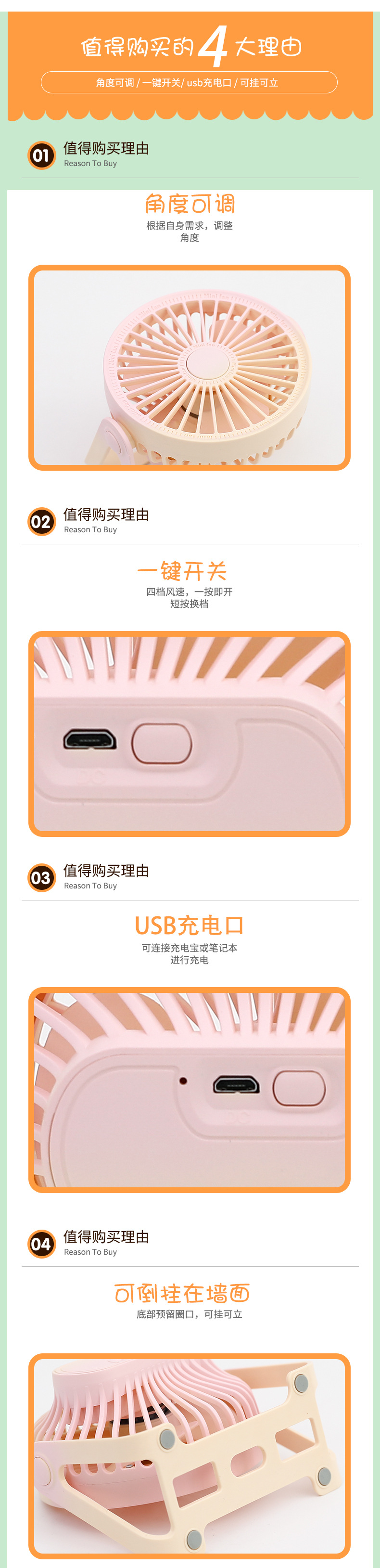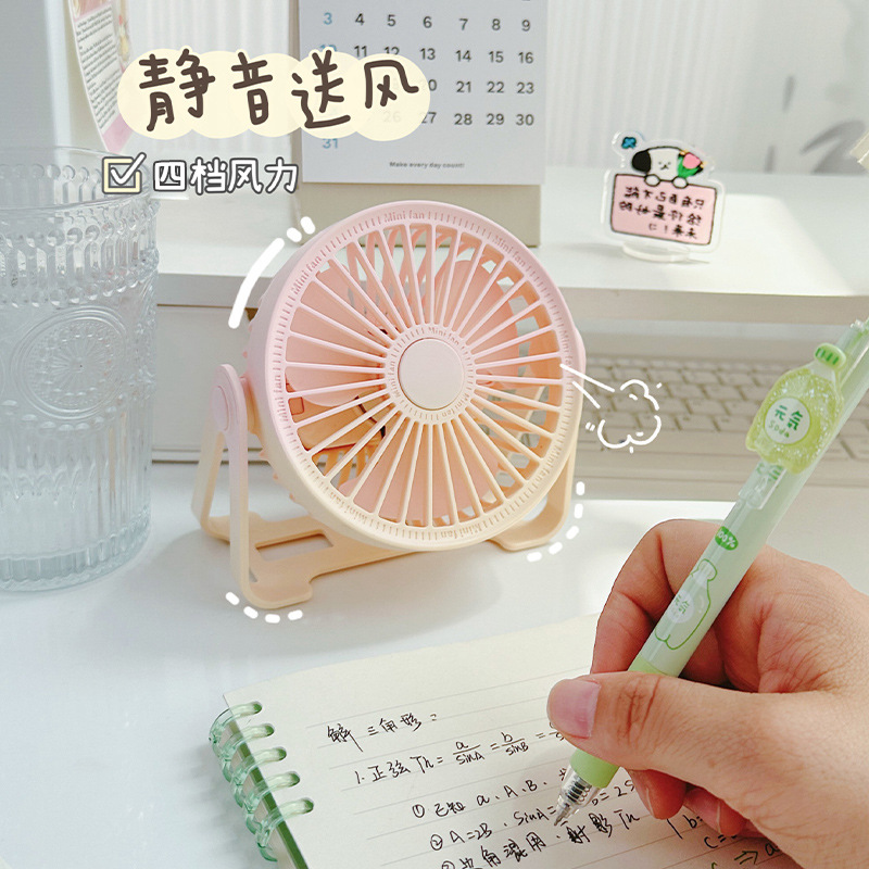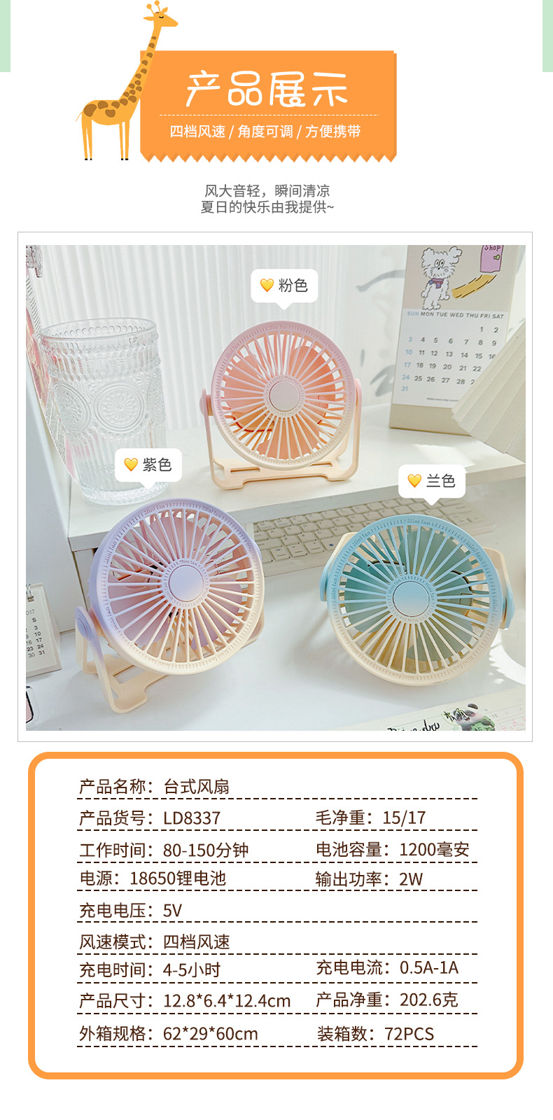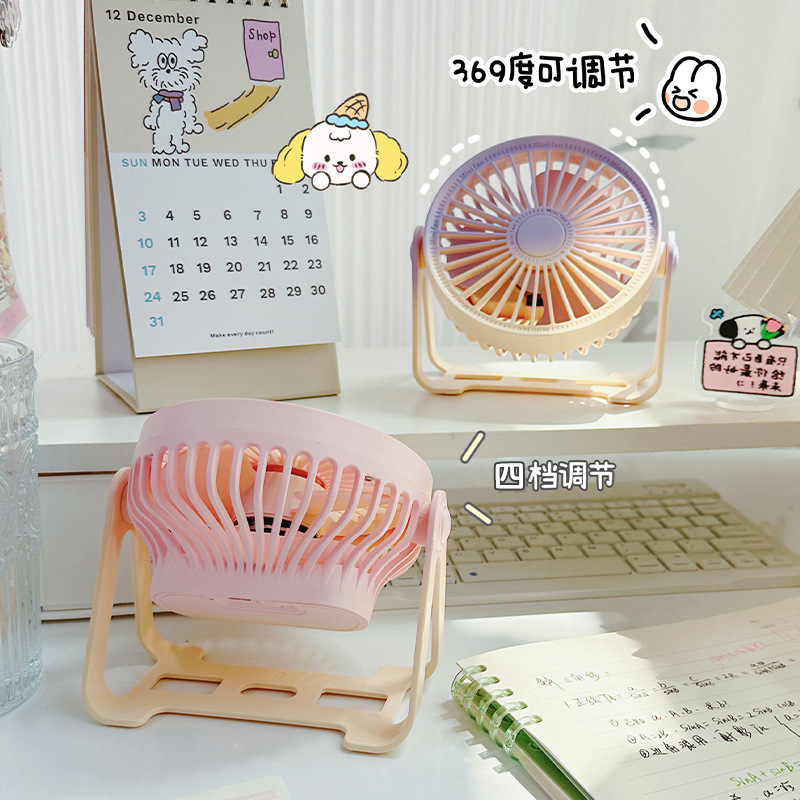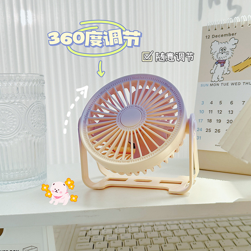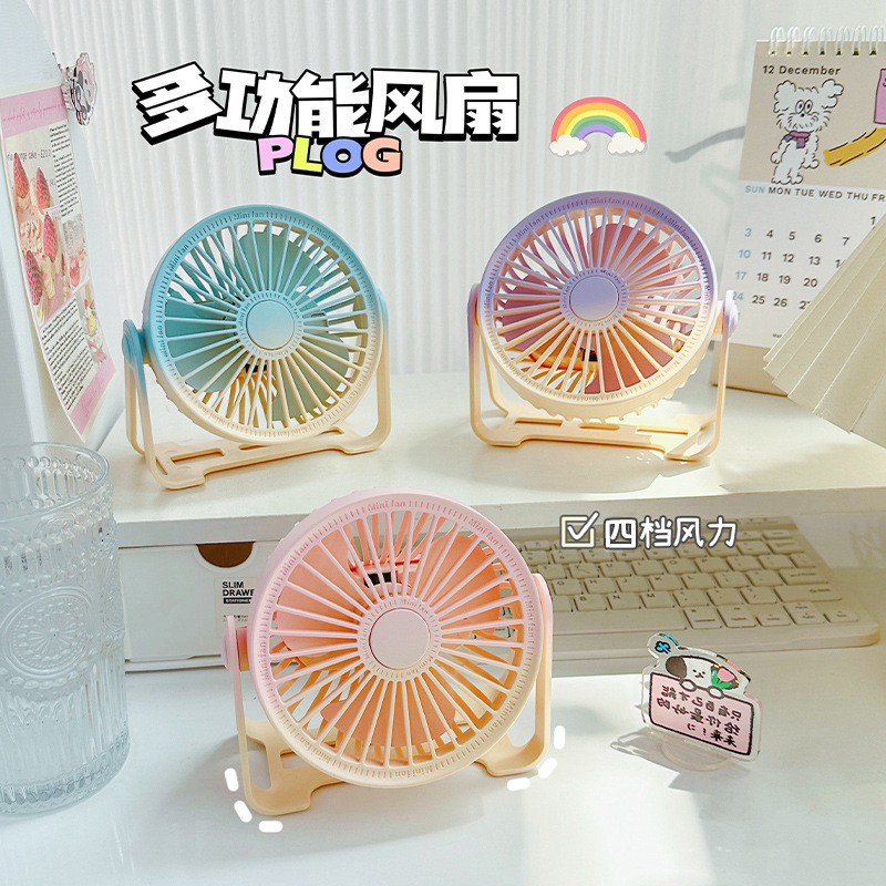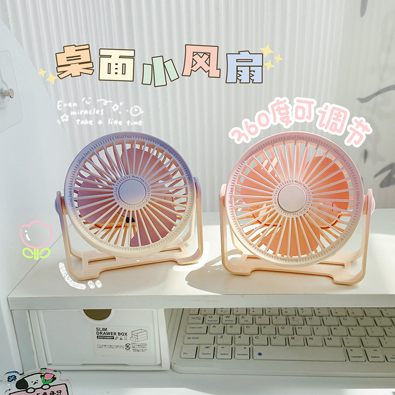 渐变壁挂桌面台扇便携USB办公室充电夏季清新安静风扇360°调节