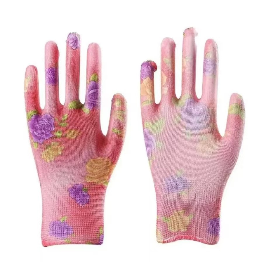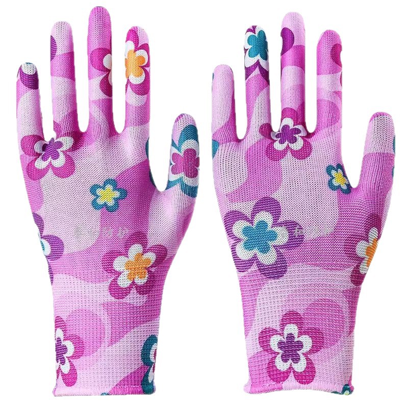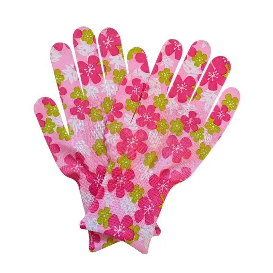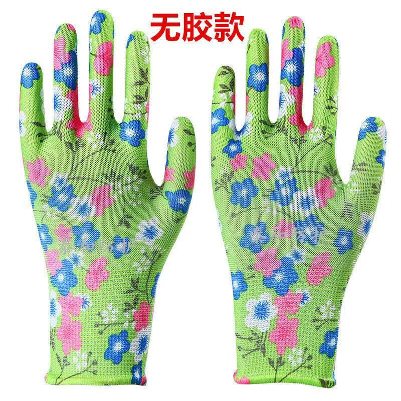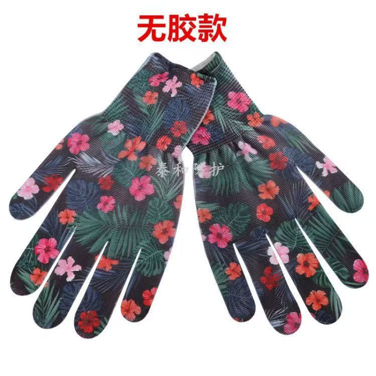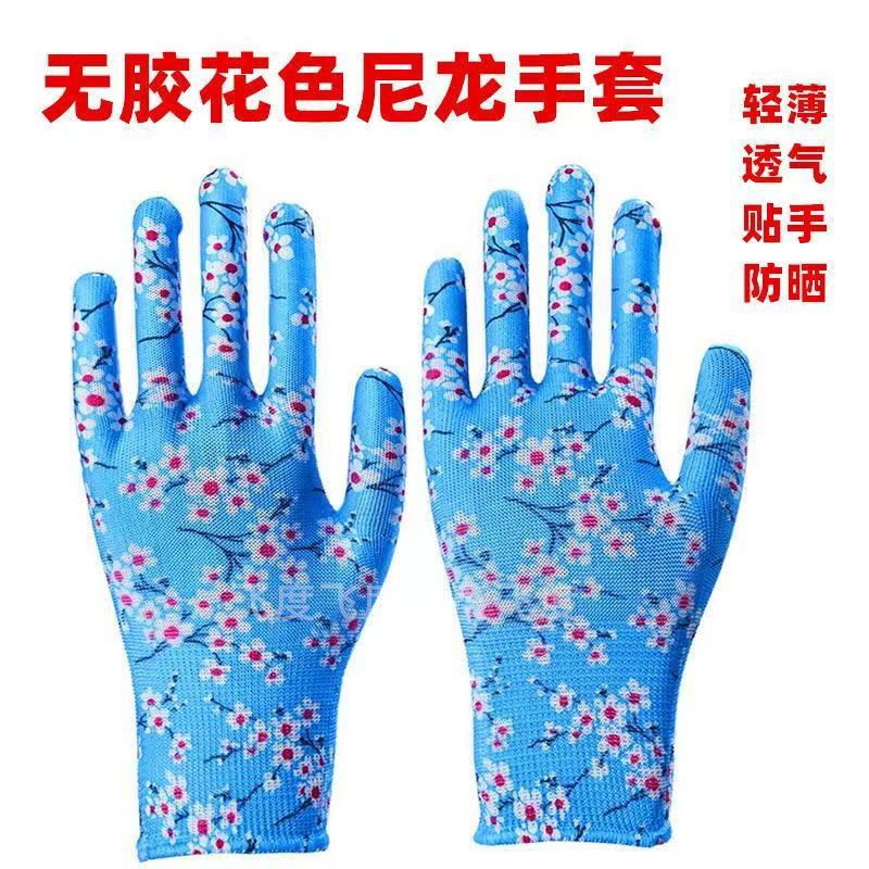 夏天透气防晒尼龙印花针织劳保防护手套女士弹力劳动工作干活采摘