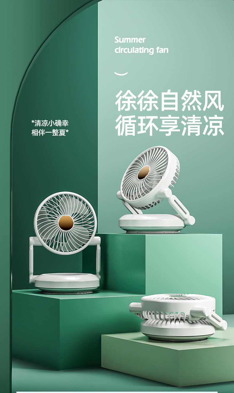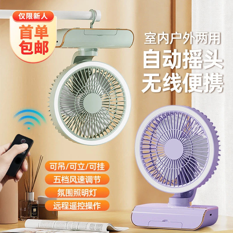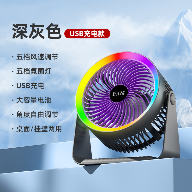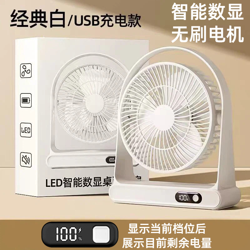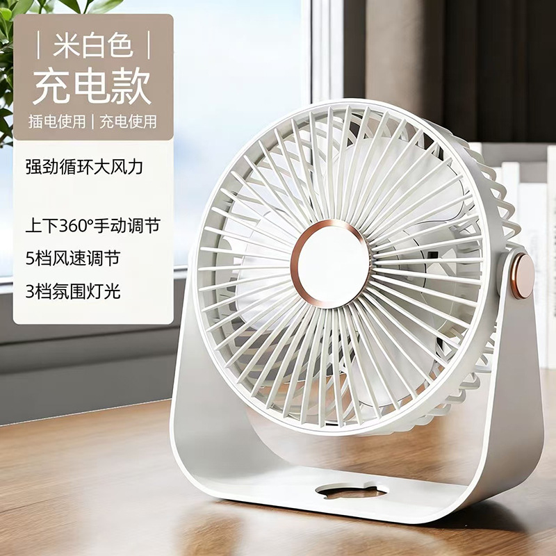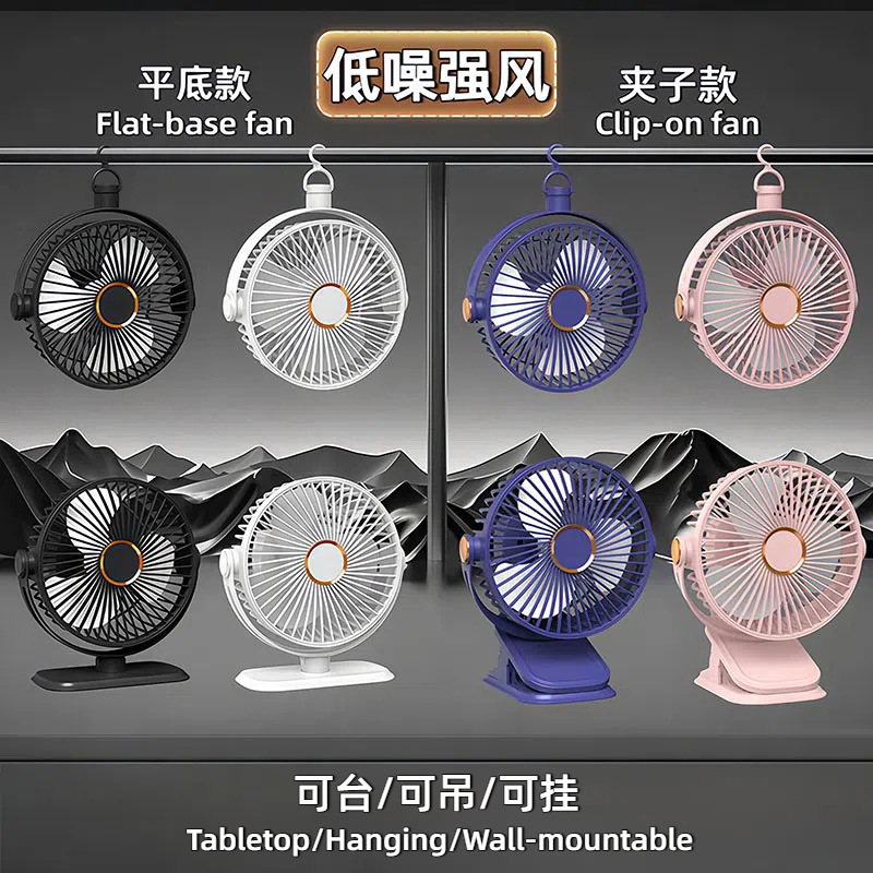 夏季新品桌面小风扇长续航可充电大风力办公静音户外露营小型便携
