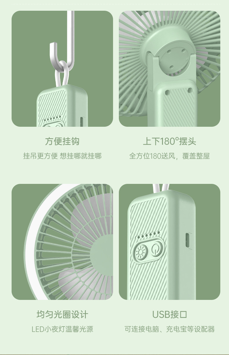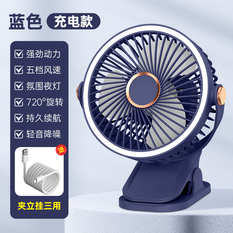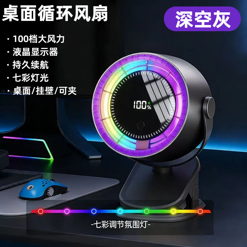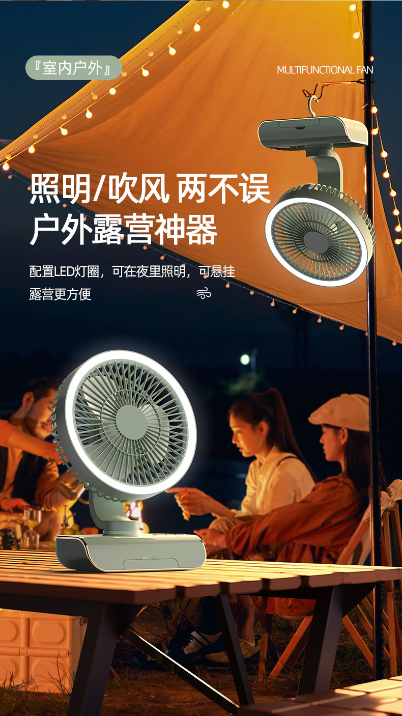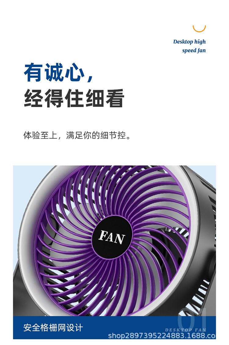 夏季新品桌面小风扇长续航可充电大风力办公静音户外露营小型便携