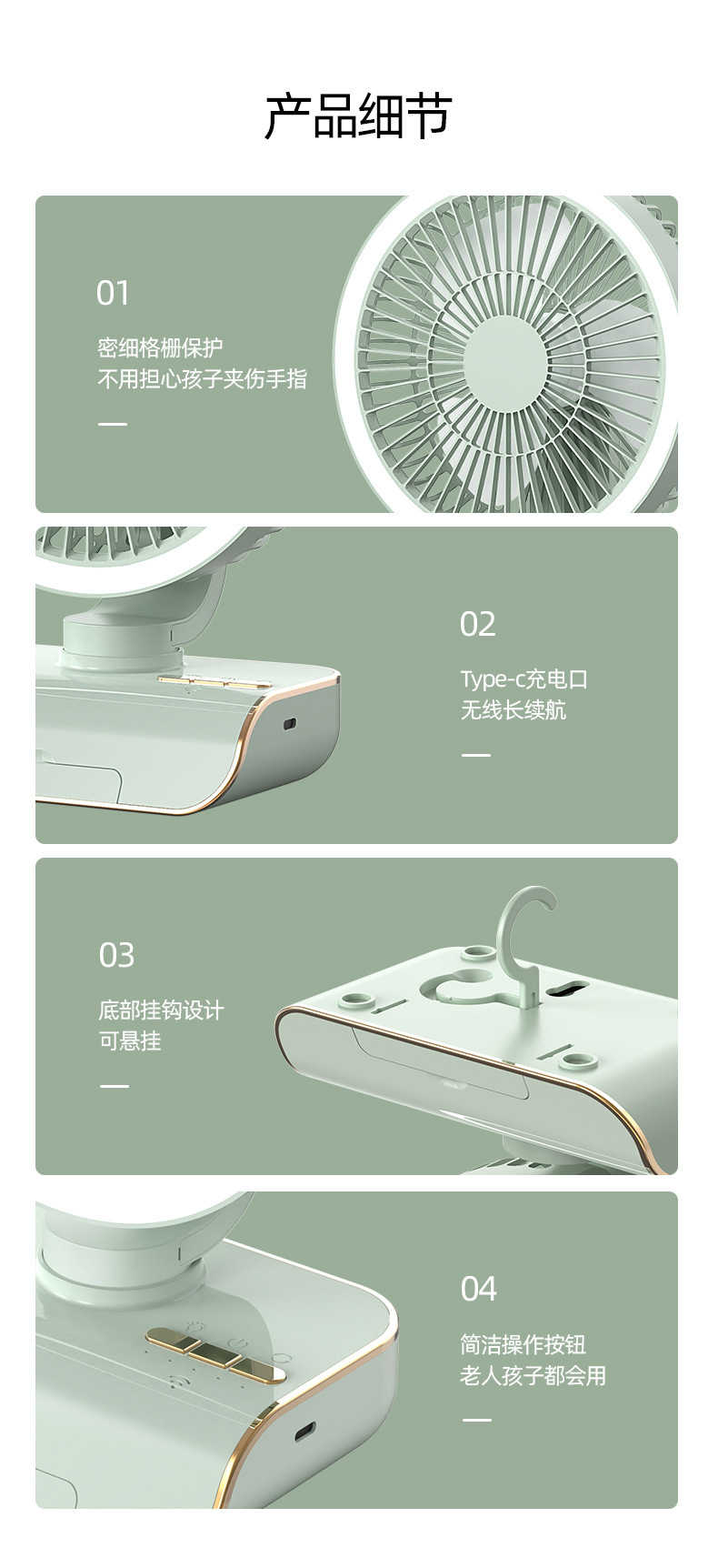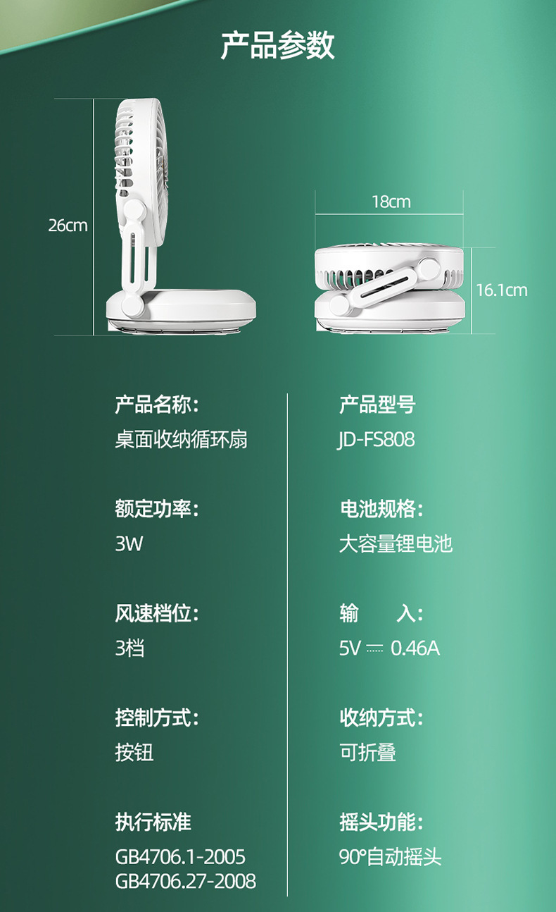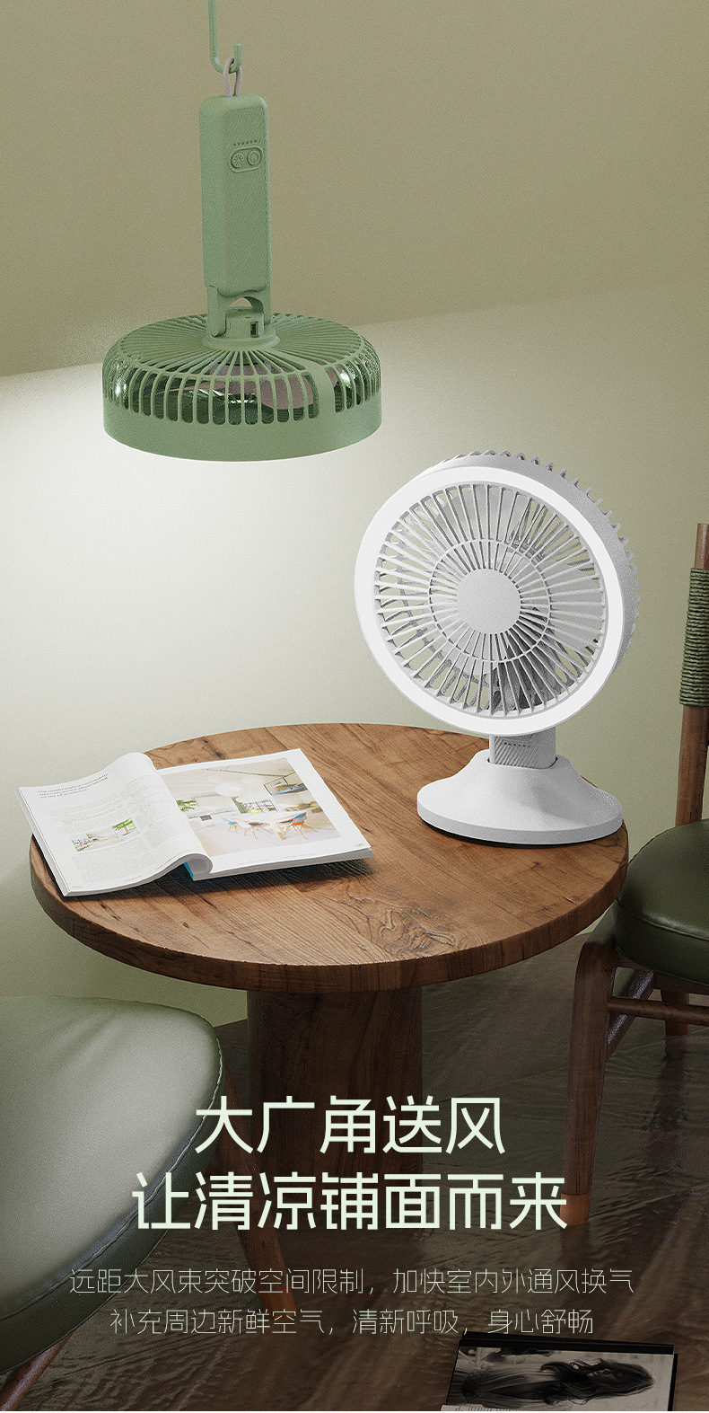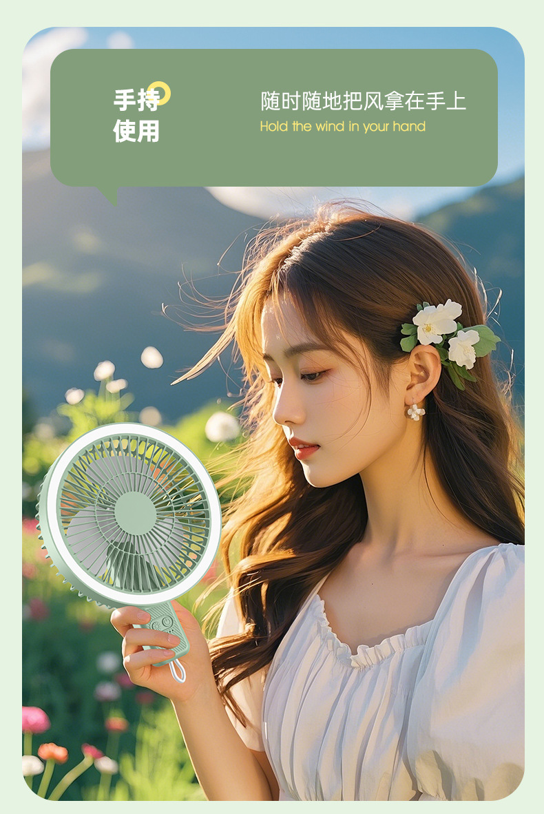 夏季新品桌面小风扇长续航可充电大风力办公静音户外露营小型便携