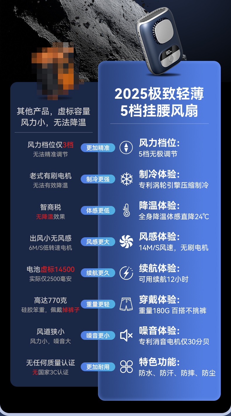 跨境新款2025新品超薄挂腰风扇随身便携式夹腰间室户外作业小风扇