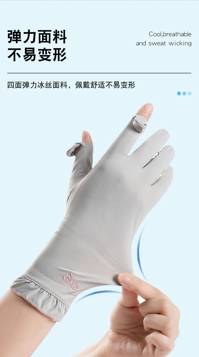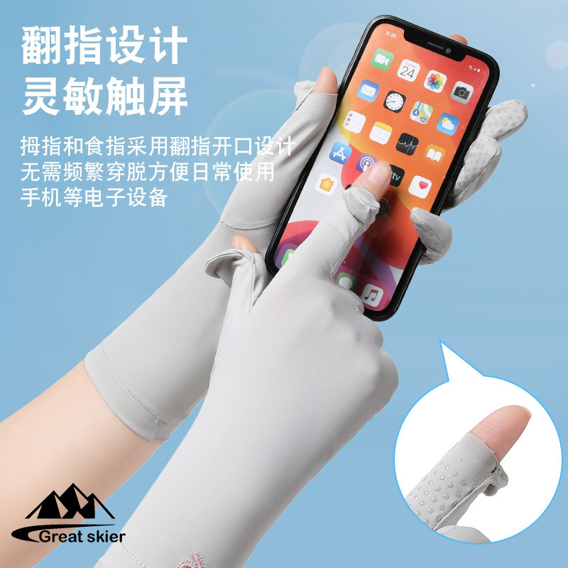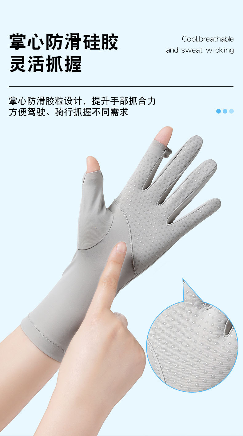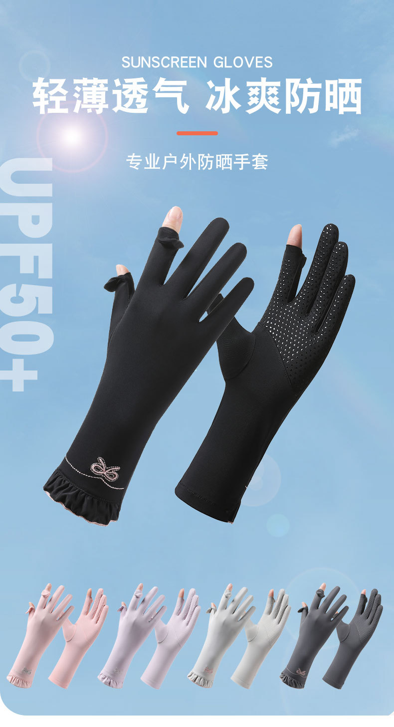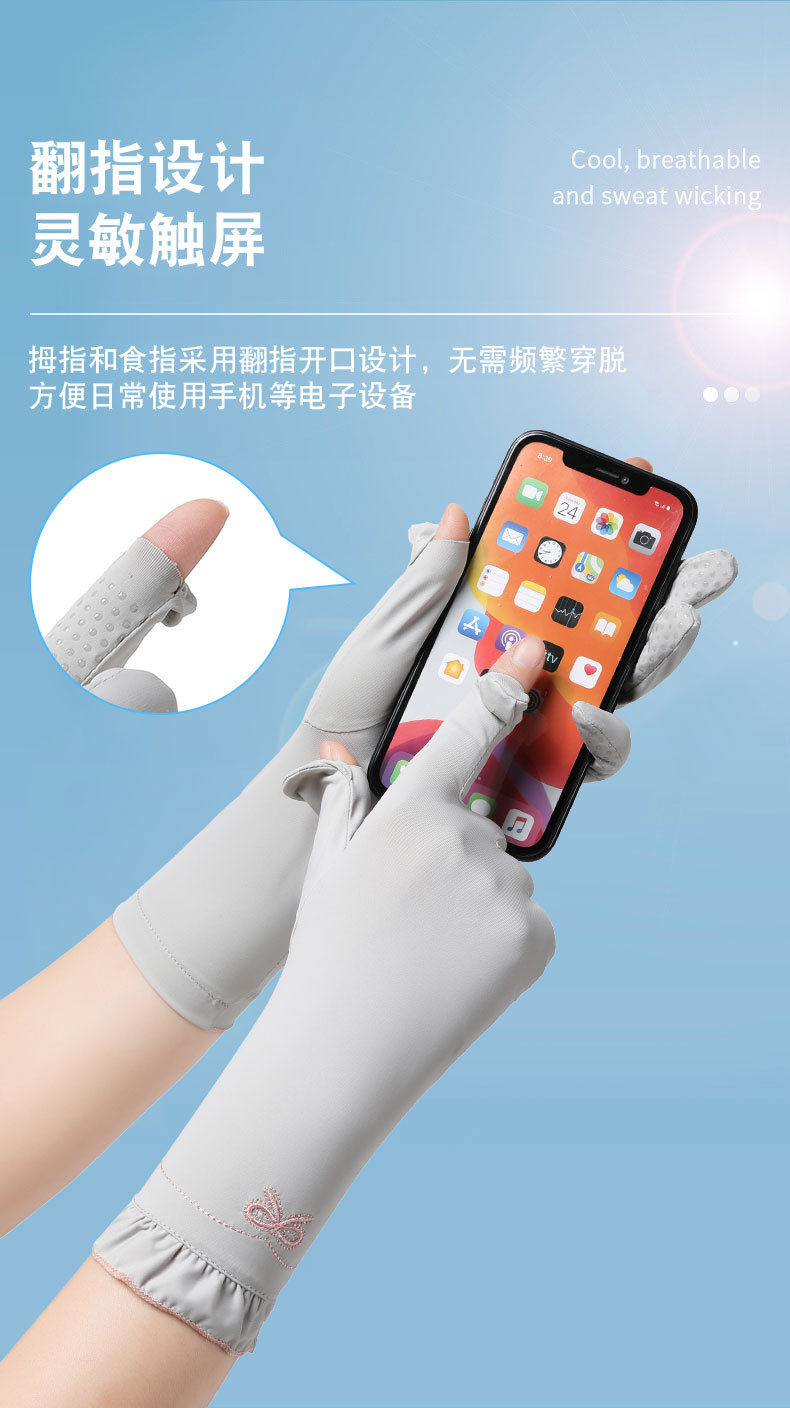防晒手套女外出防紫外线冰丝薄款开车骑车防滑可翻盖触屏手套批发