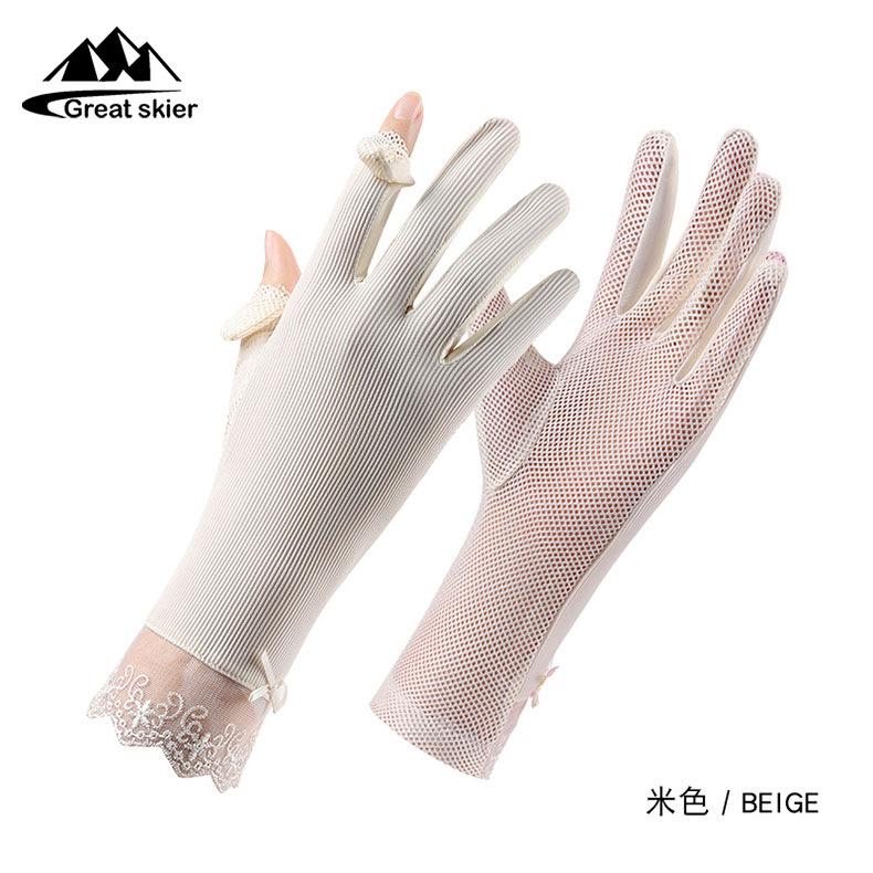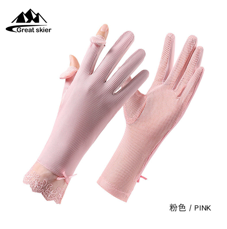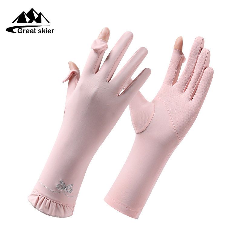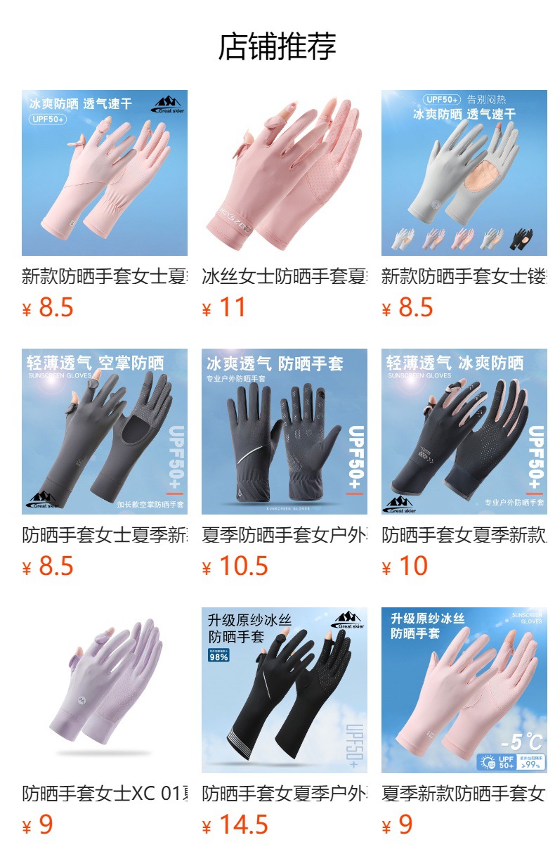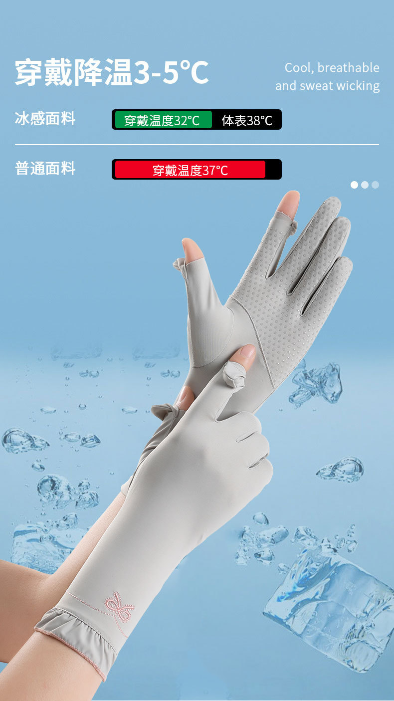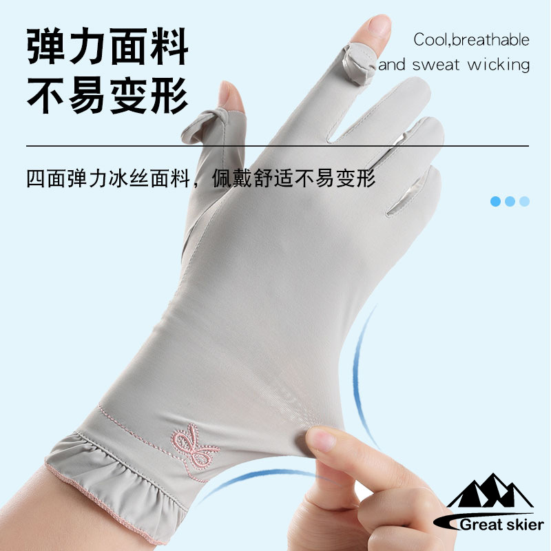 防晒手套女外出防紫外线冰丝薄款开车骑车防滑可翻盖触屏手套批发