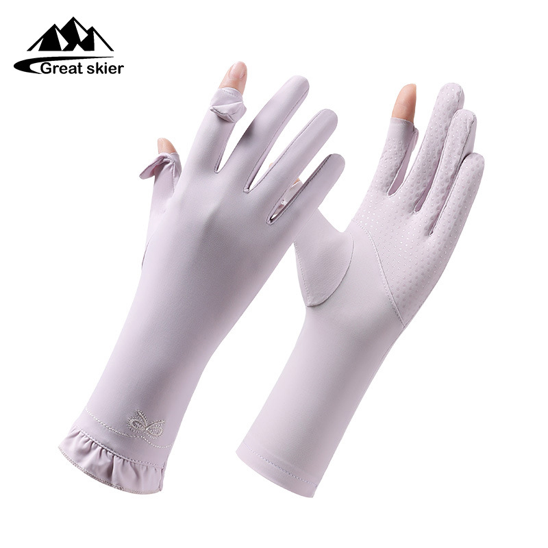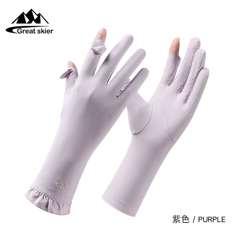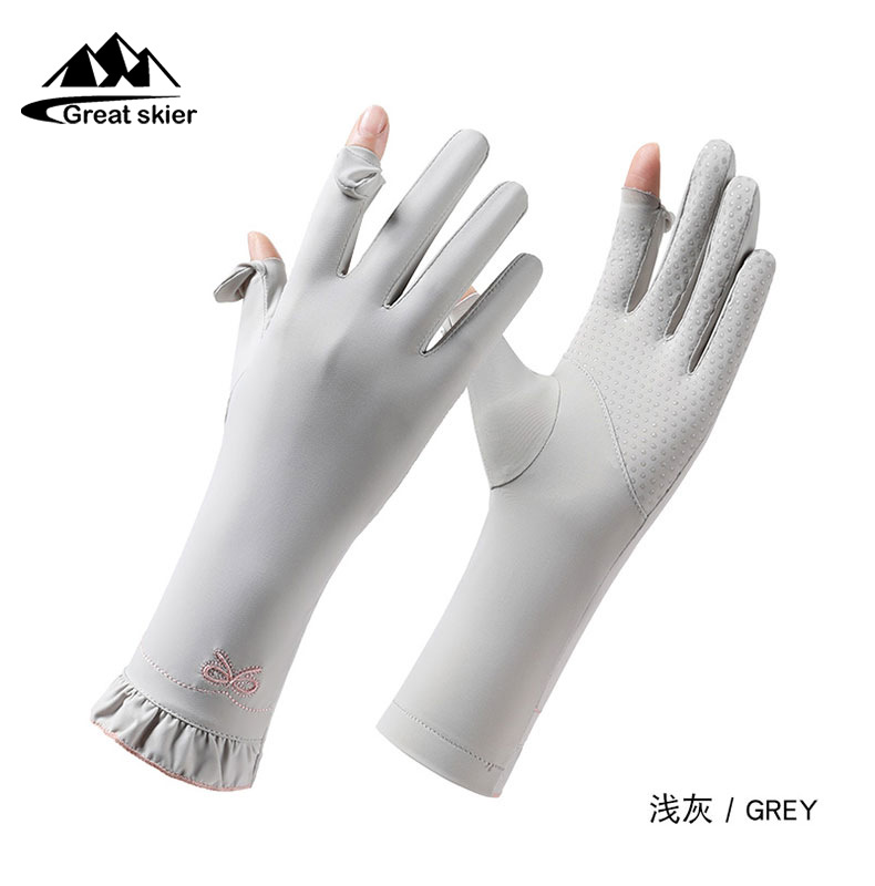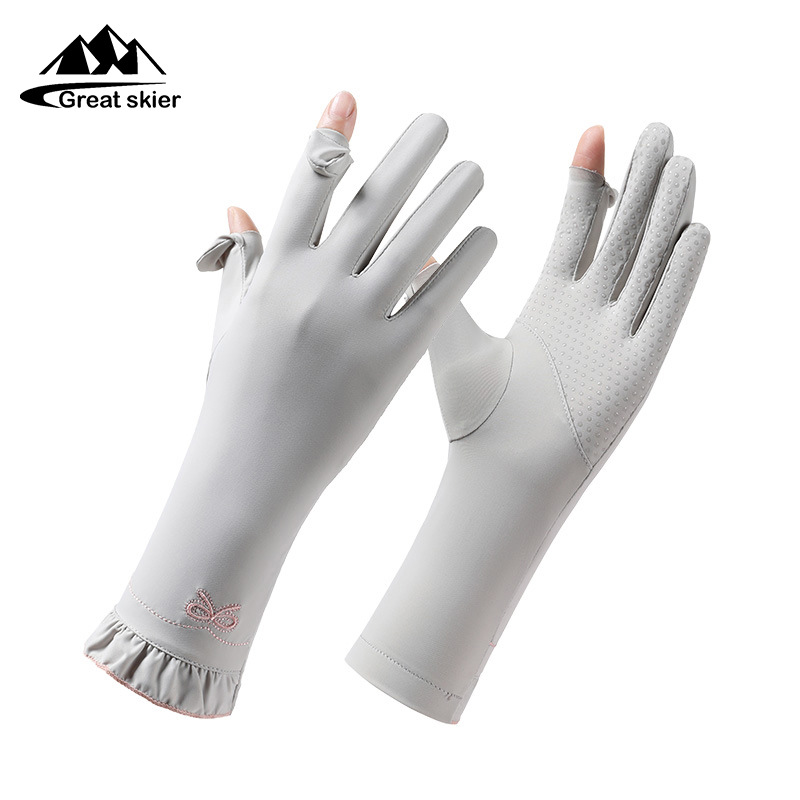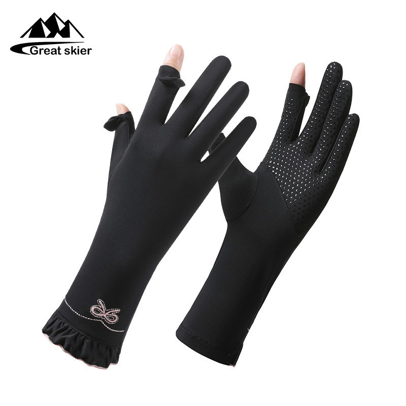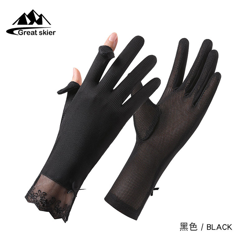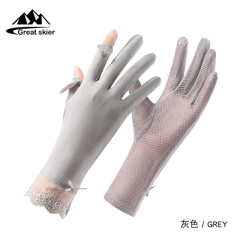 防晒手套女外出防紫外线冰丝薄款开车骑车防滑可翻盖触屏手套批发