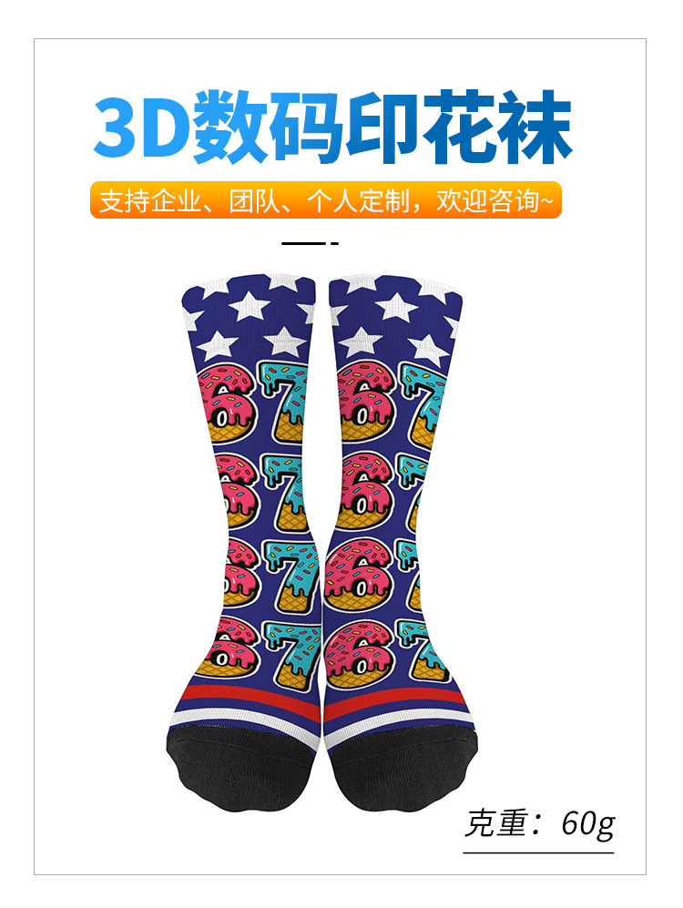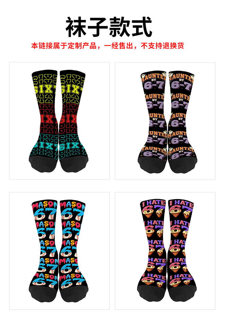 独立站热销袜子数码印花袜趣味ins潮袜中筒长袜67运动袜欧美跨