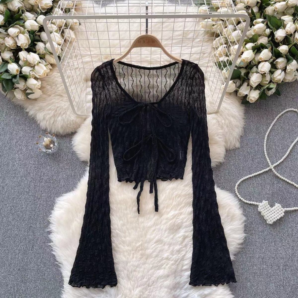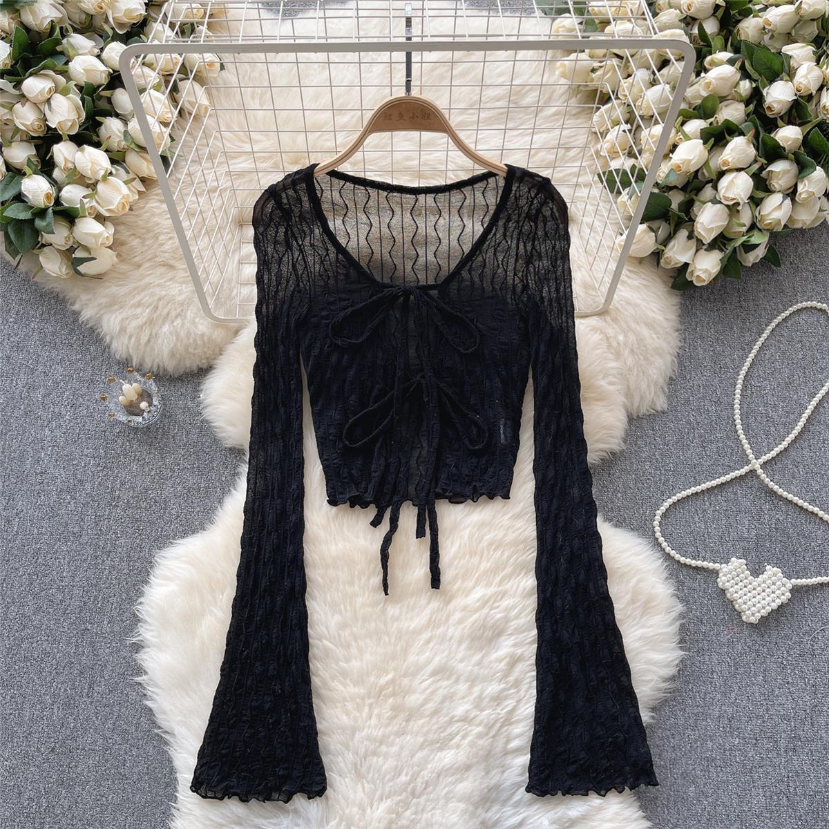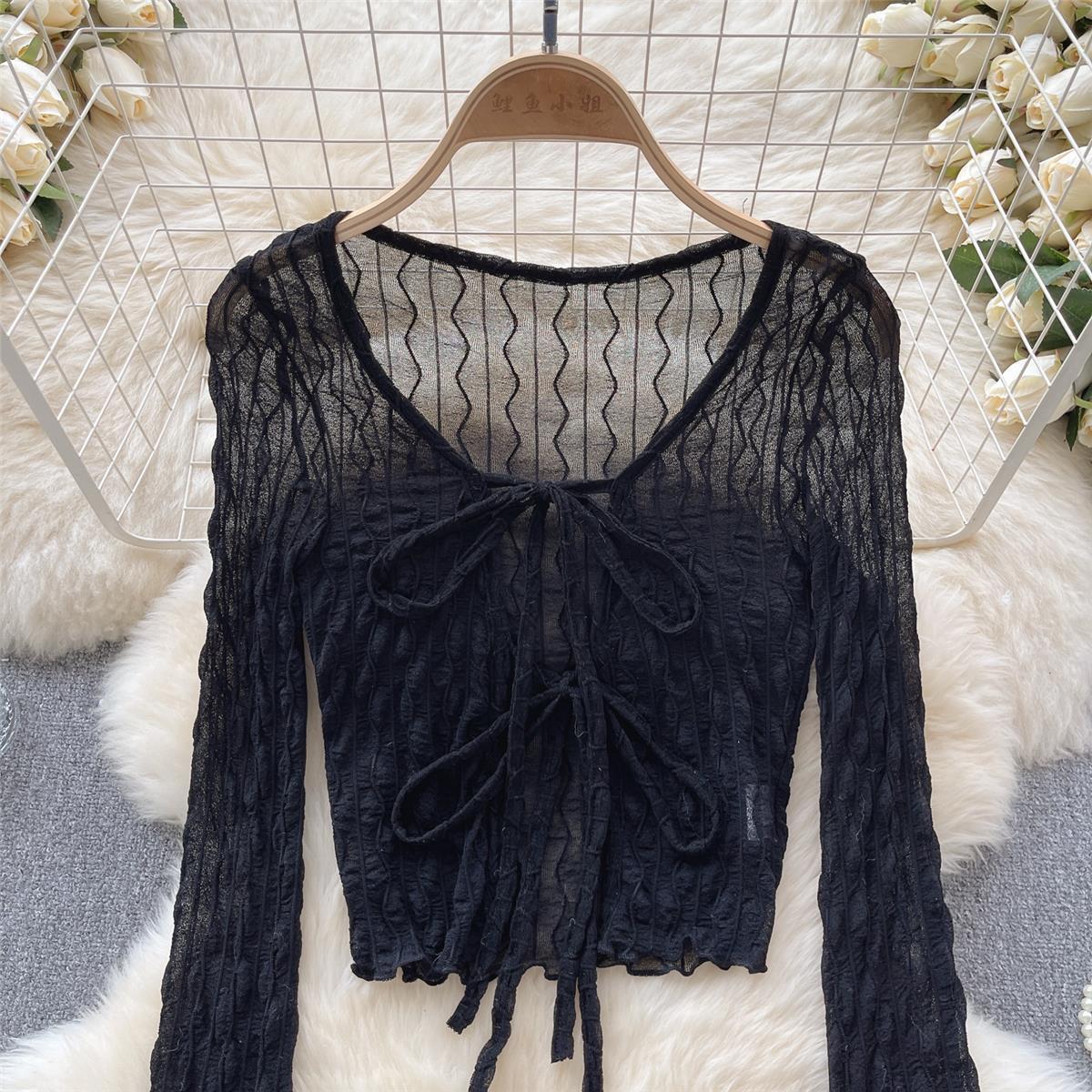 纯欲黑色收腰雪纺防晒衬衫外套女春秋夏季高级设计感小众法式上衣