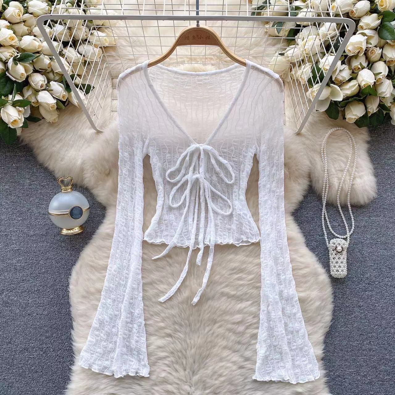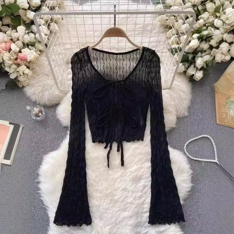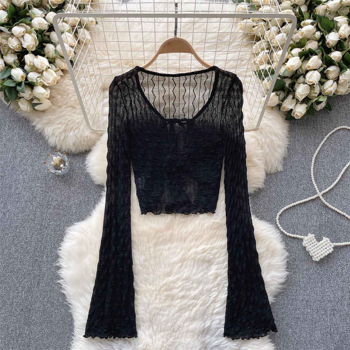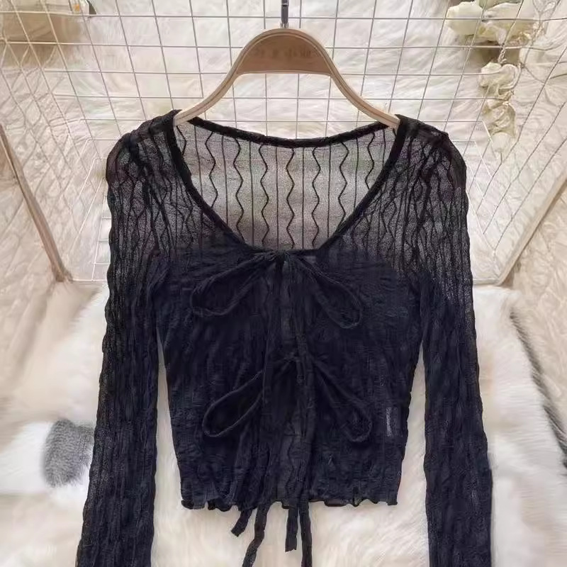 纯欲黑色收腰雪纺防晒衬衫外套女春秋夏季高级设计感小众法式上衣