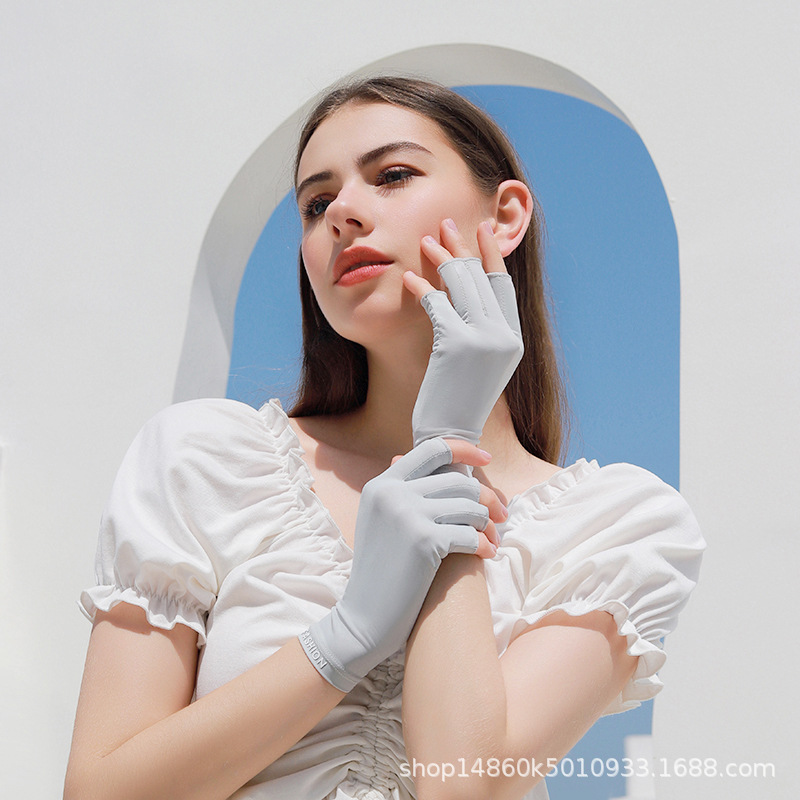 美甲防护手套防晒女夏透气冰丝露指防紫外线烤黑防滑骑行开车五指