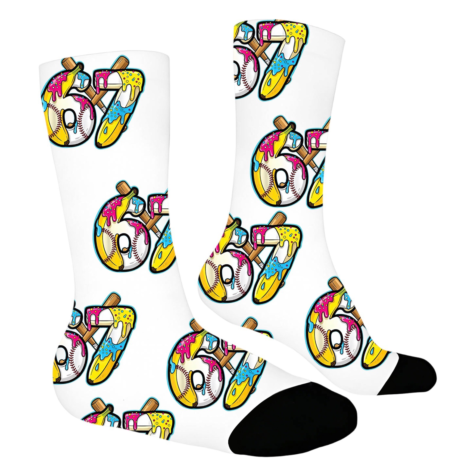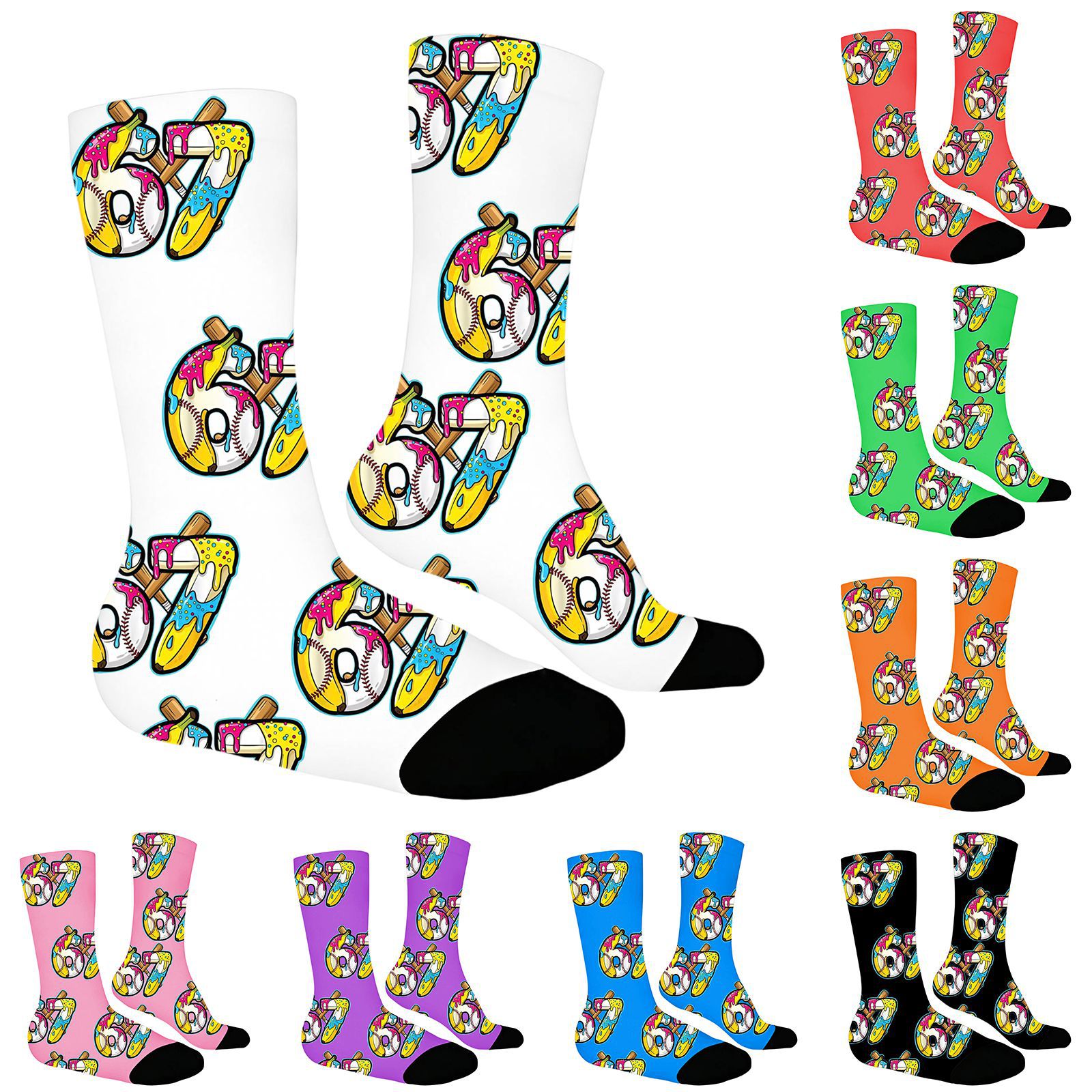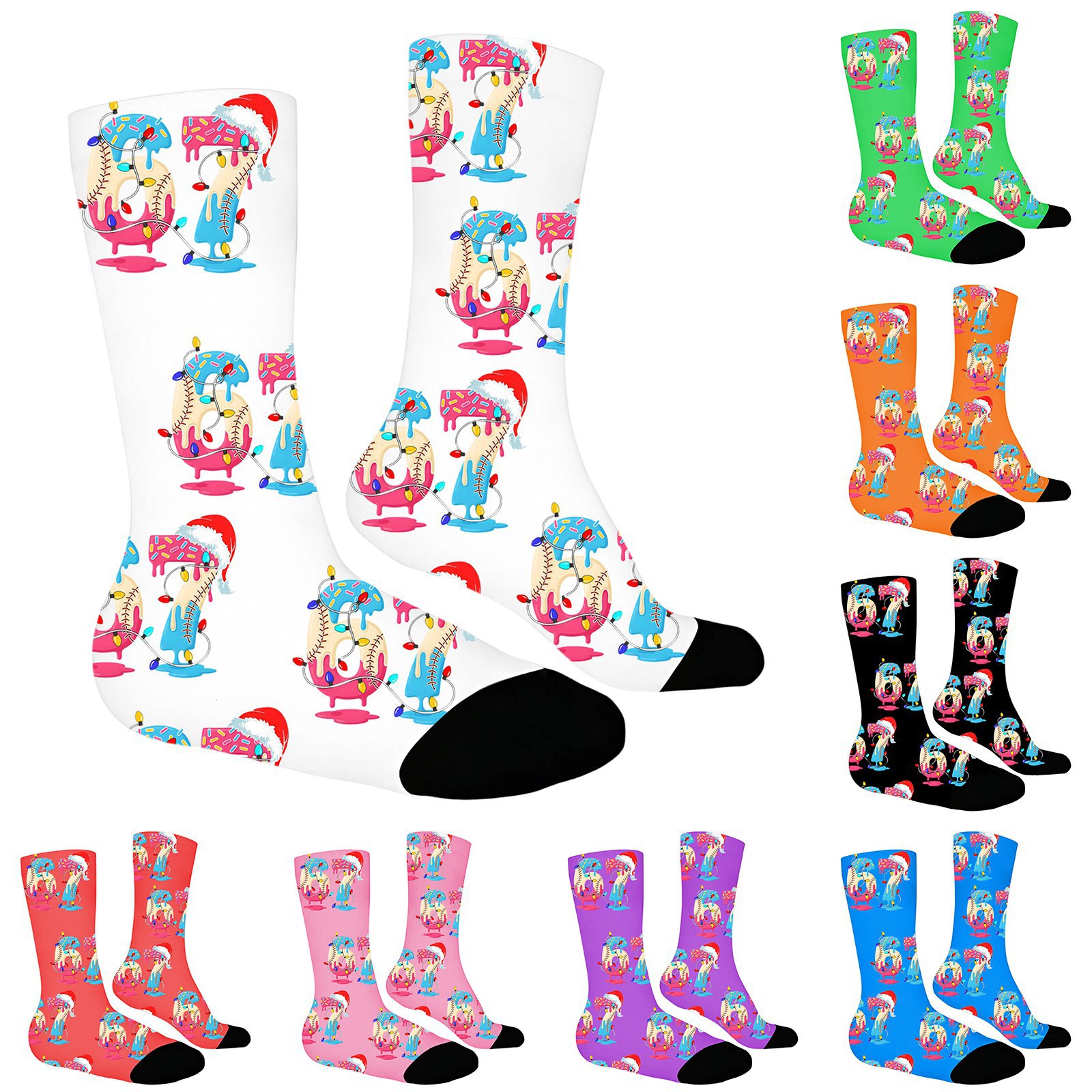 跨境亚马逊袜子3D数码印花袜360度无缝趣味中筒潮袜ins秋冬男女士