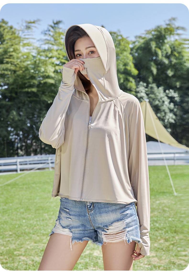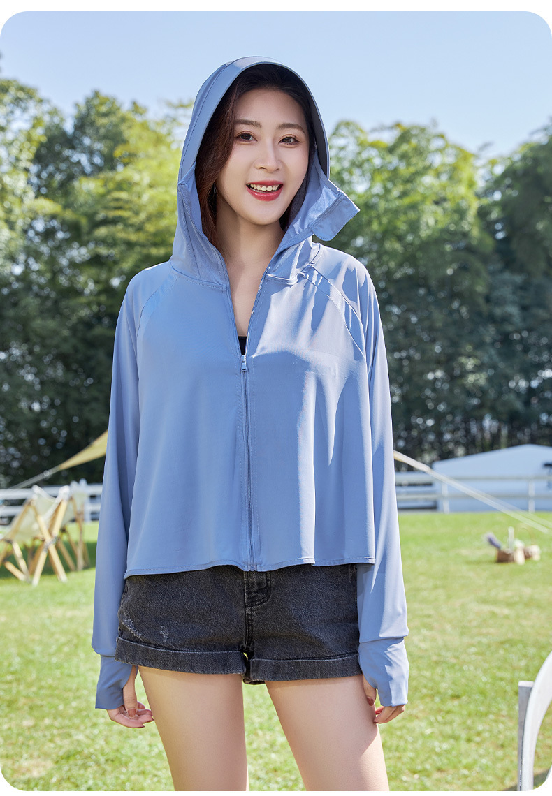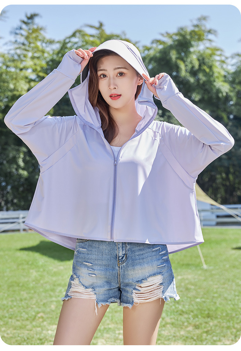 2024短款防晒衣女夏季防紫外线黑胶帽檐连帽防晒服薄外套批发遮阳