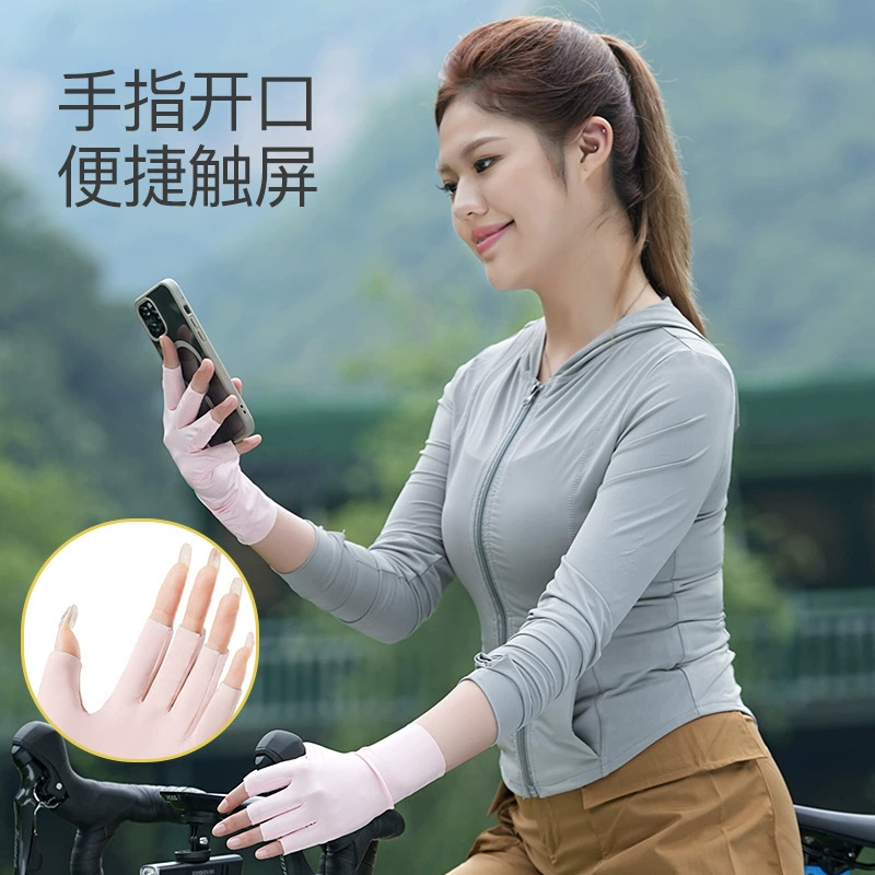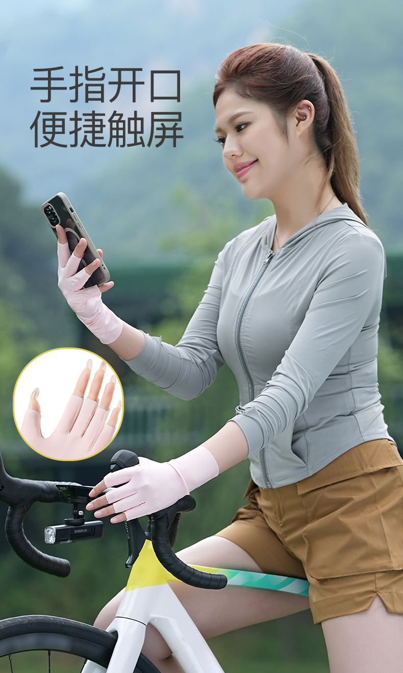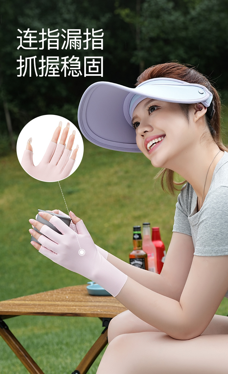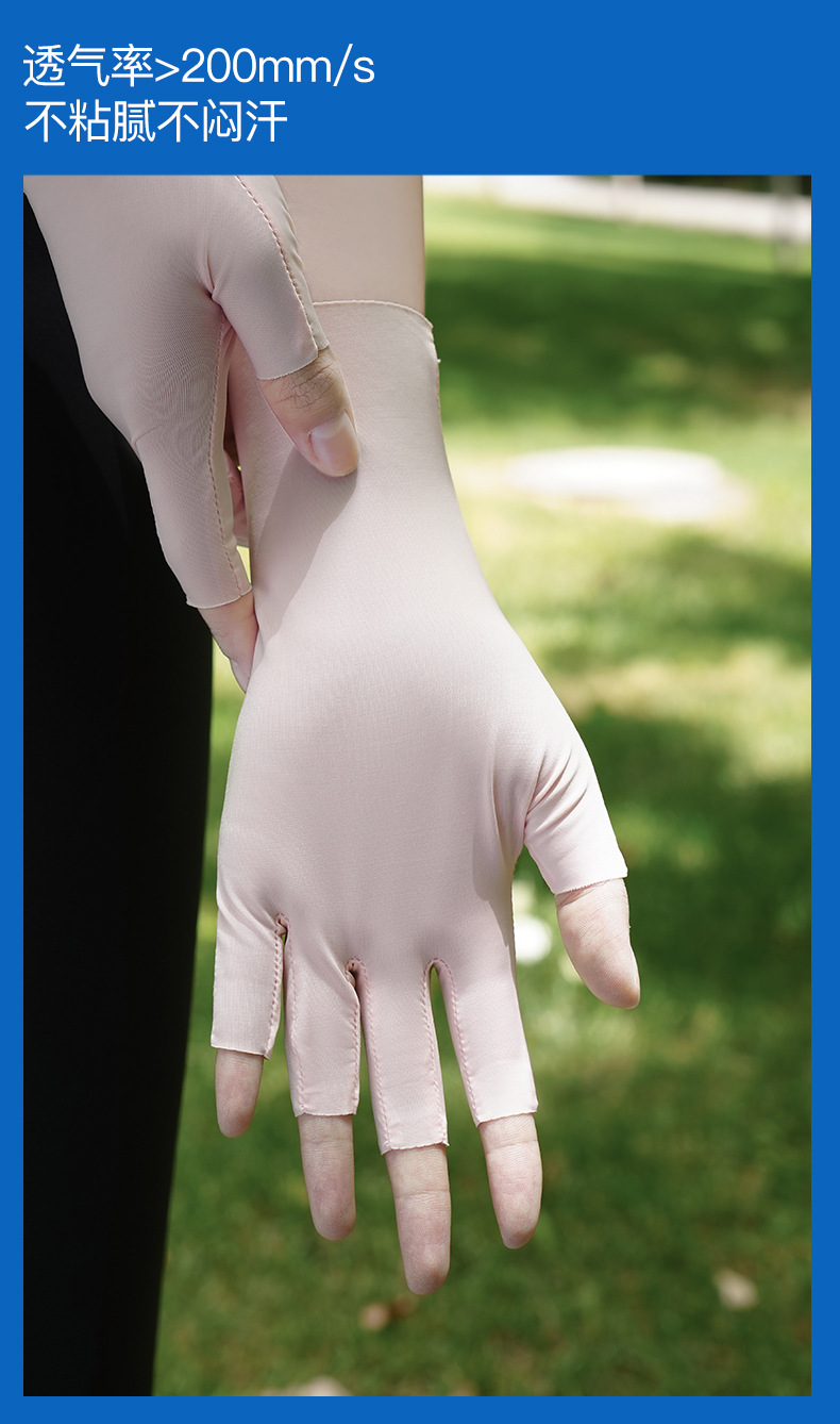 防晒手套女防紫外线美甲关节防起茧原纱薄款透气夏季半指手套