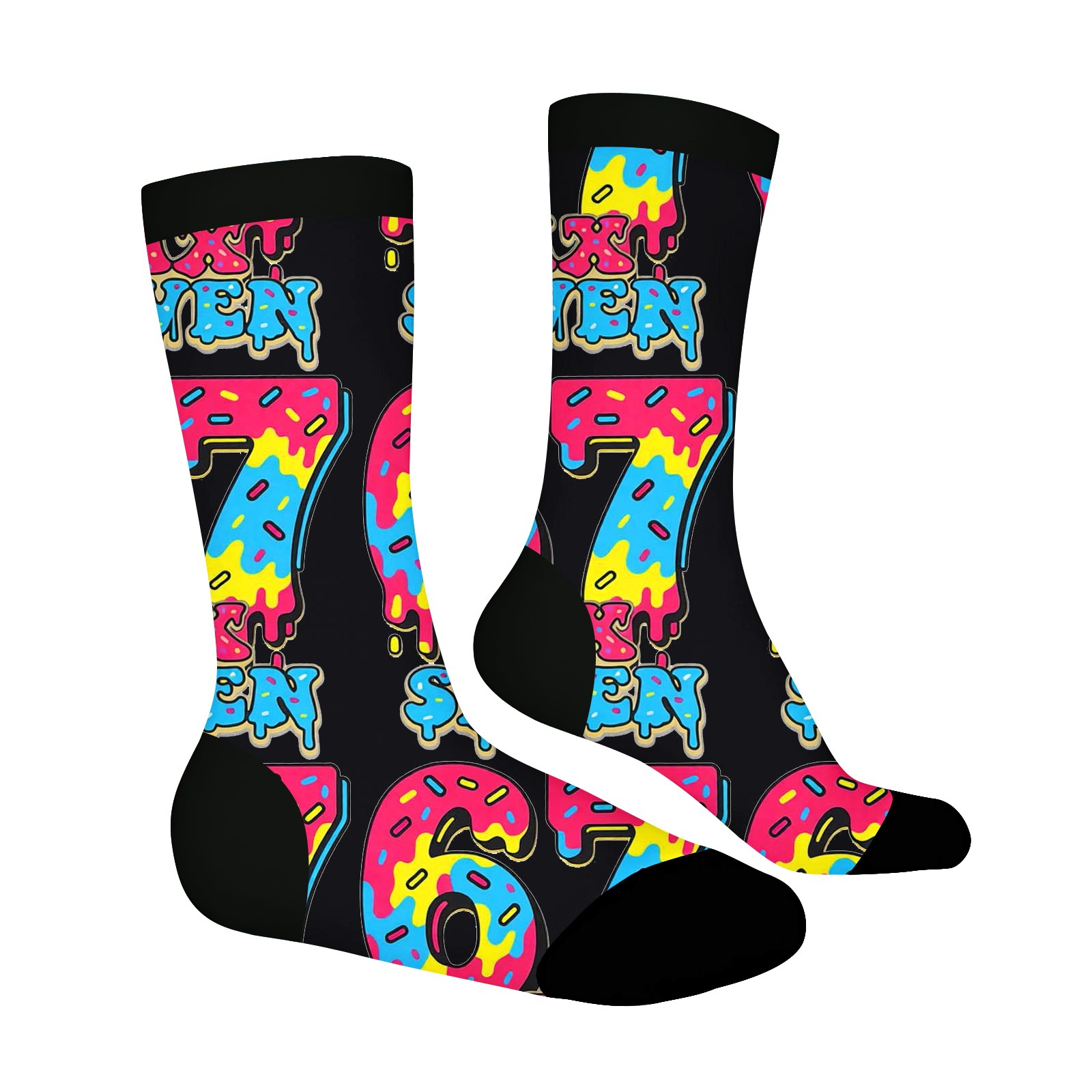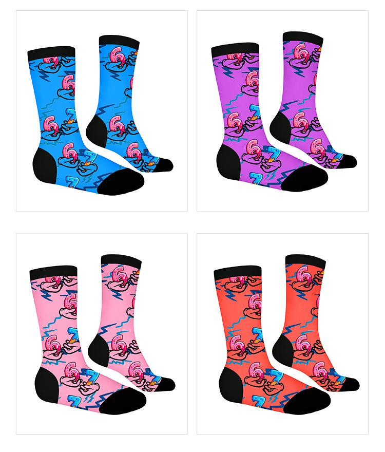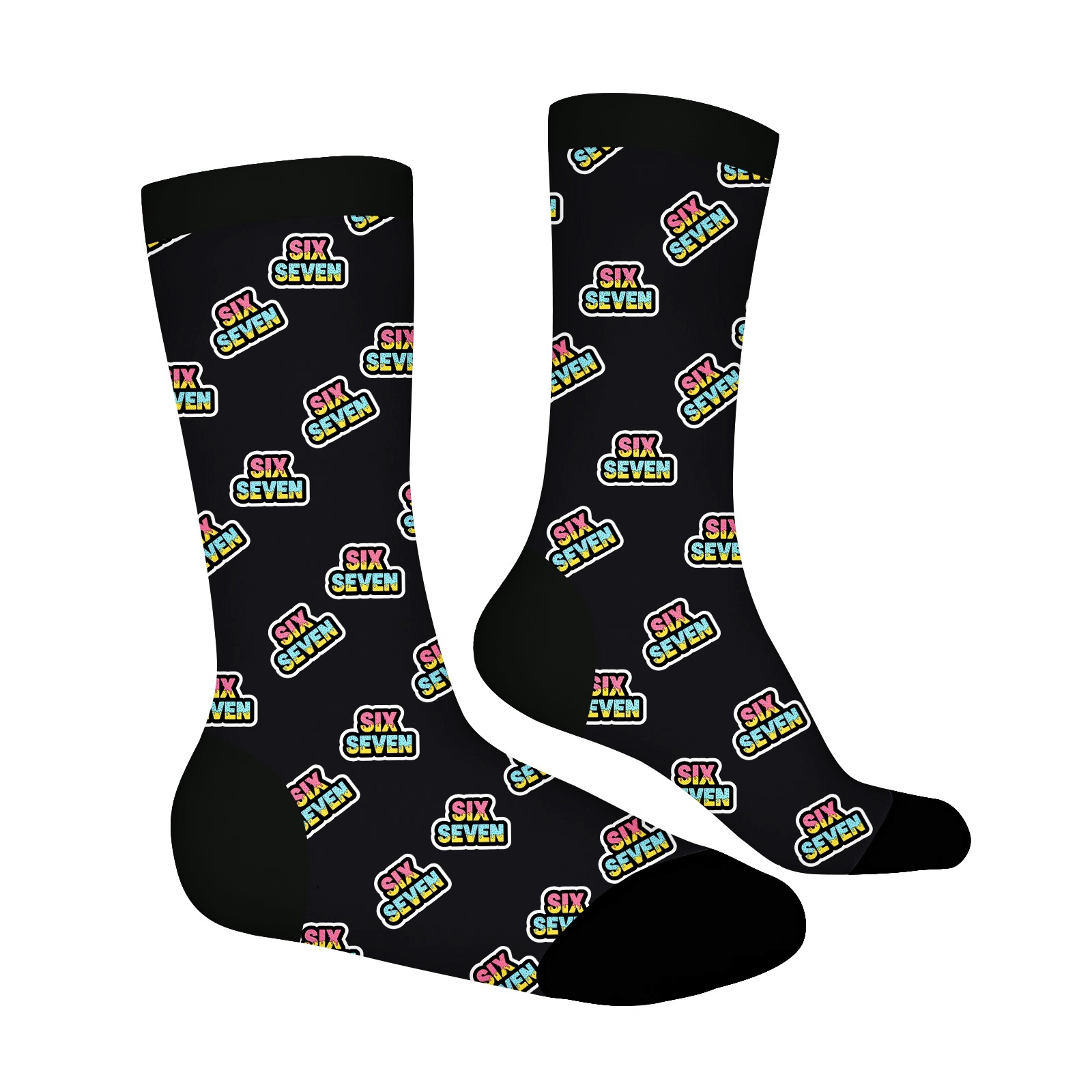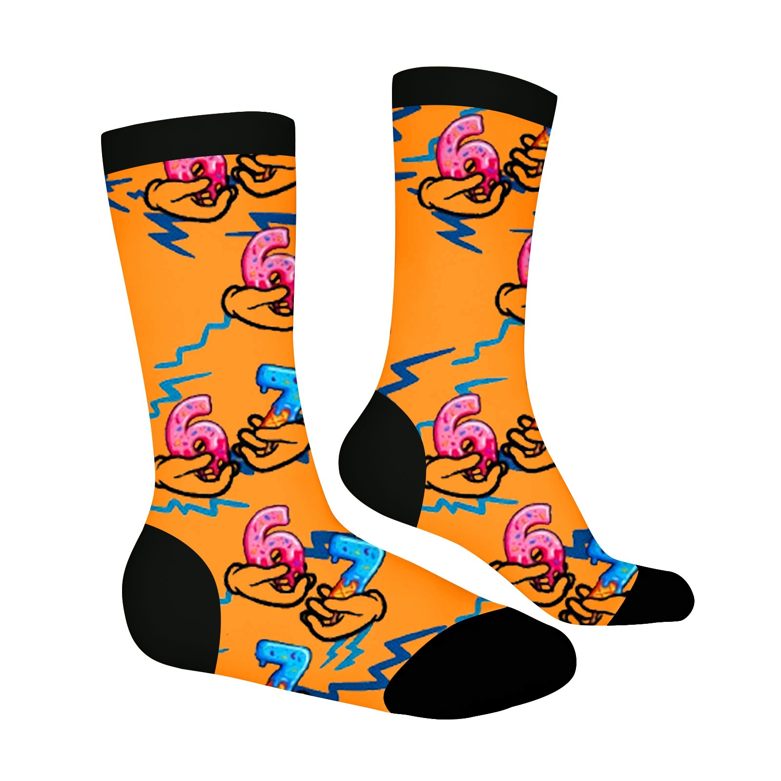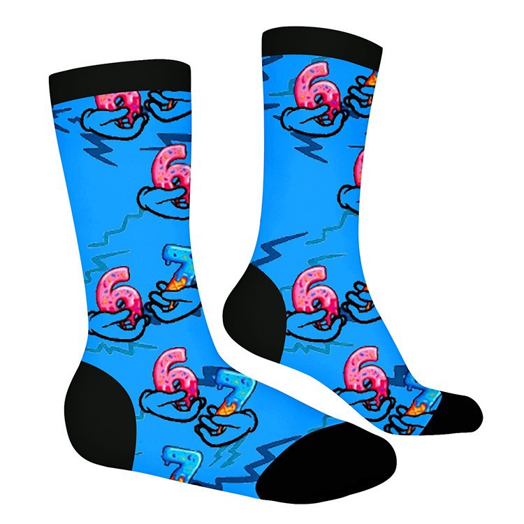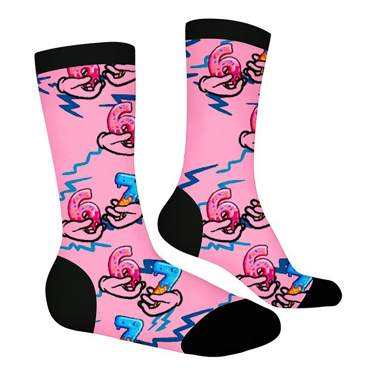 新款亚马逊袜子秋冬创意ins潮袜男女士运动袜3D数码印花360度无缝
