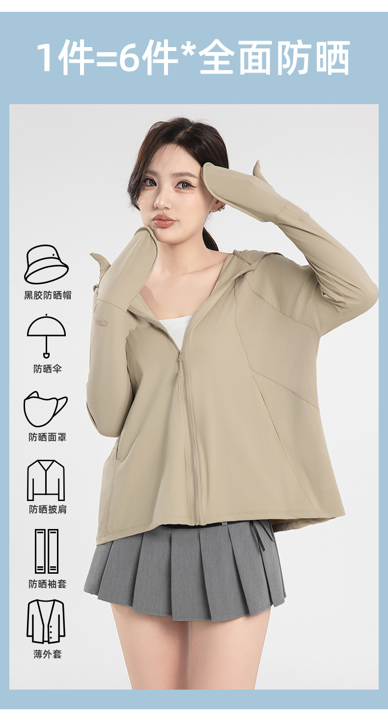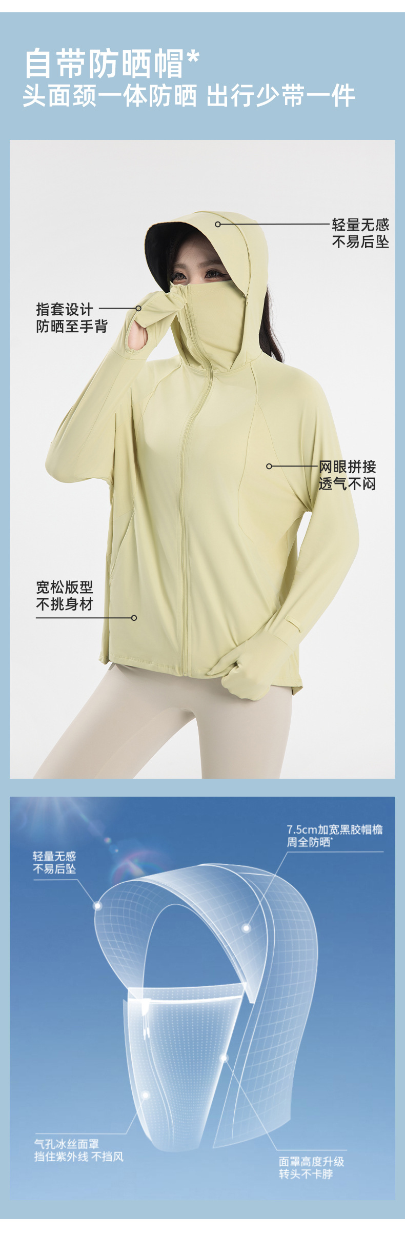 可拆卸全防护指尖夏季防晒衣原纱锦纶透气防紫外线外套UPF50+