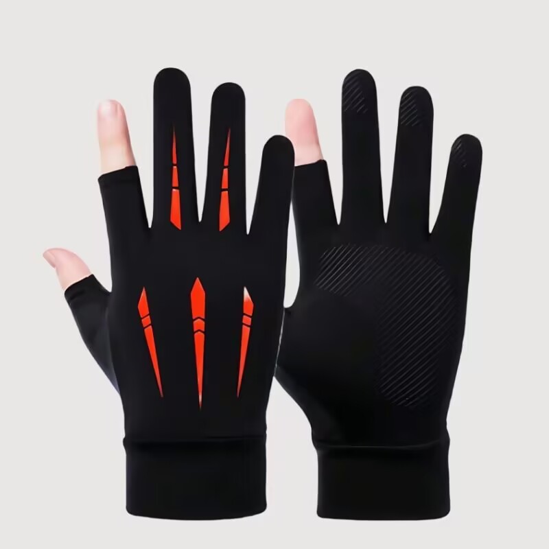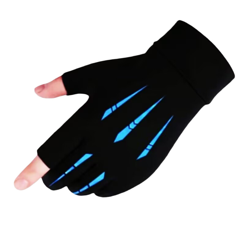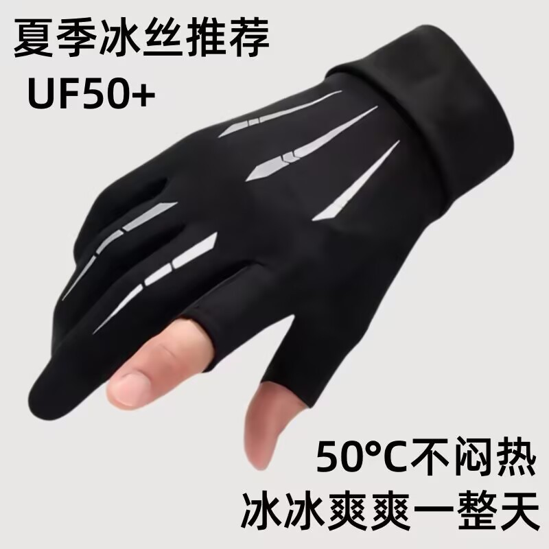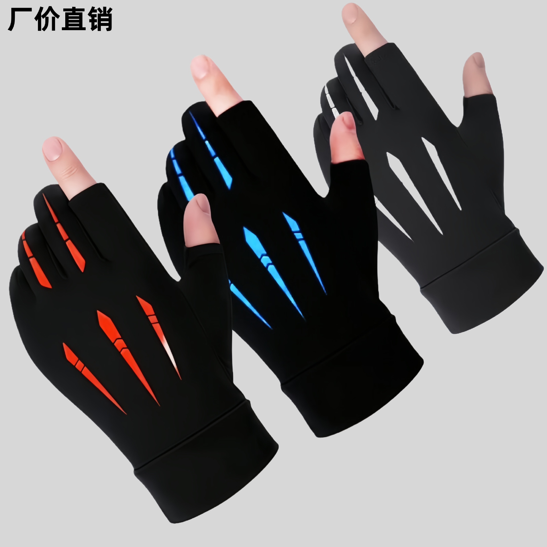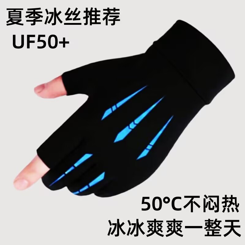 夏季漏二指冰丝手套户外运动钓鱼手套半指冰丝送外卖手套批发