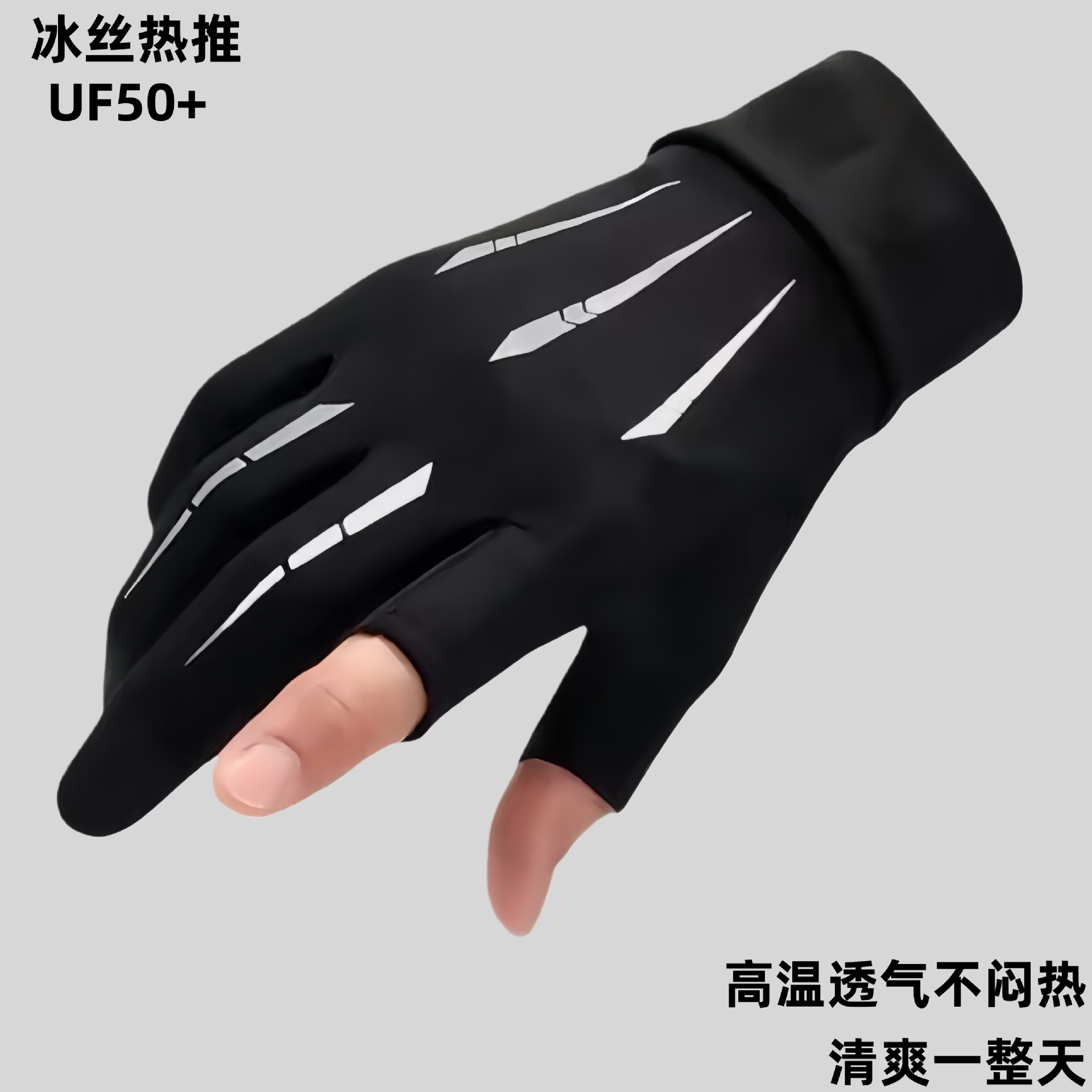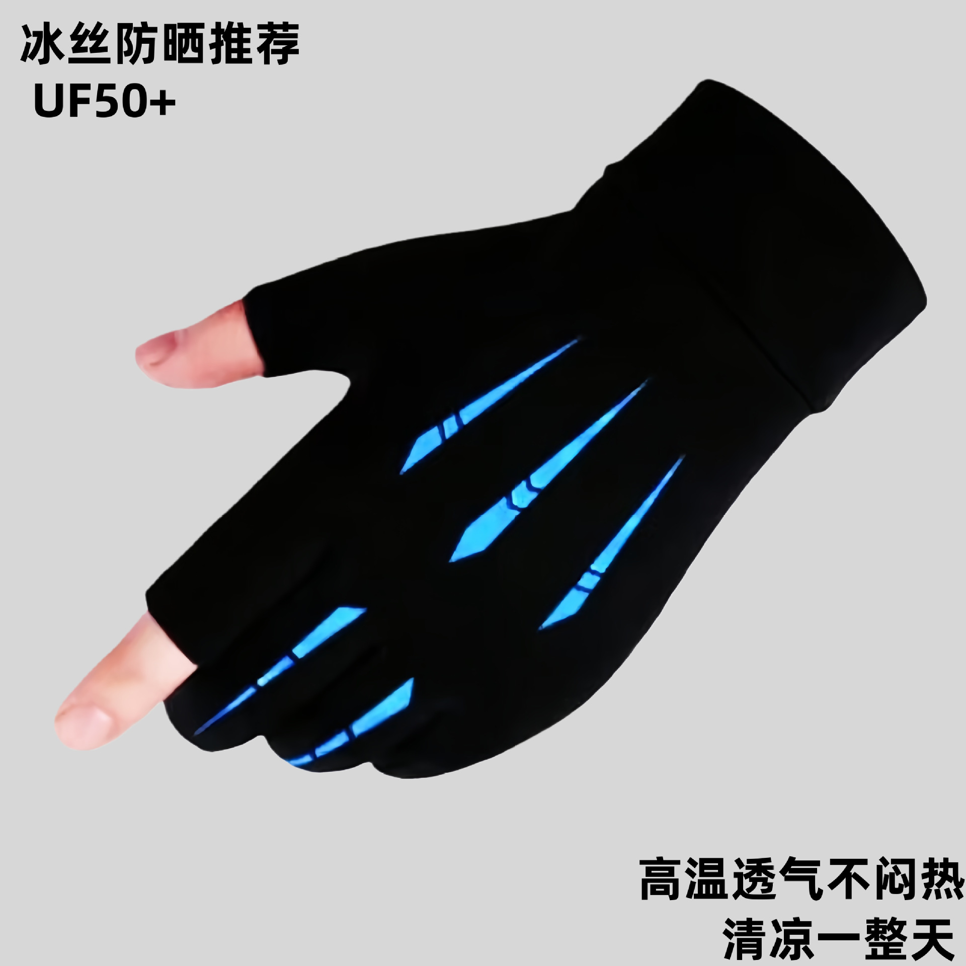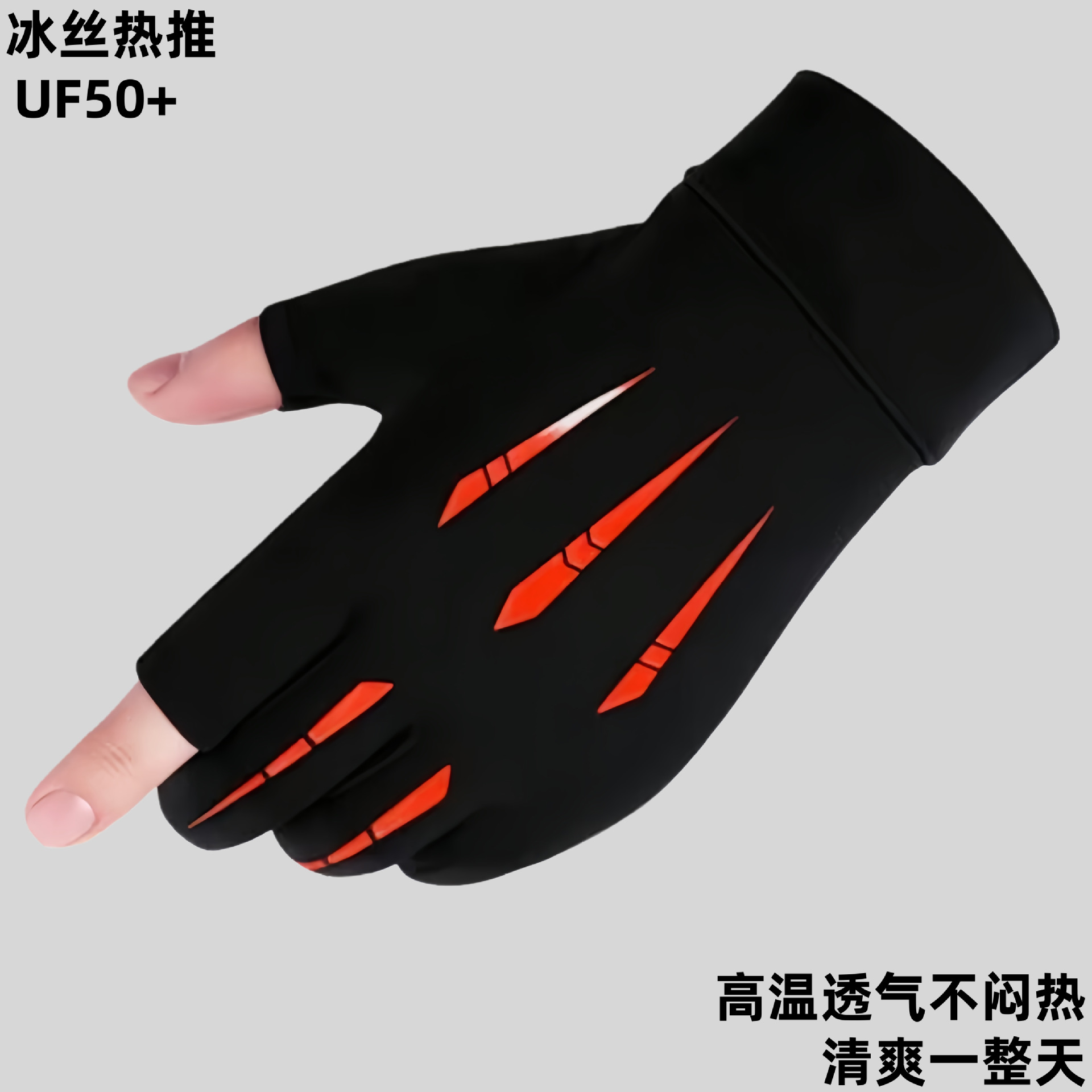 夏季漏二指冰丝手套户外运动钓鱼手套半指冰丝送外卖手套批发