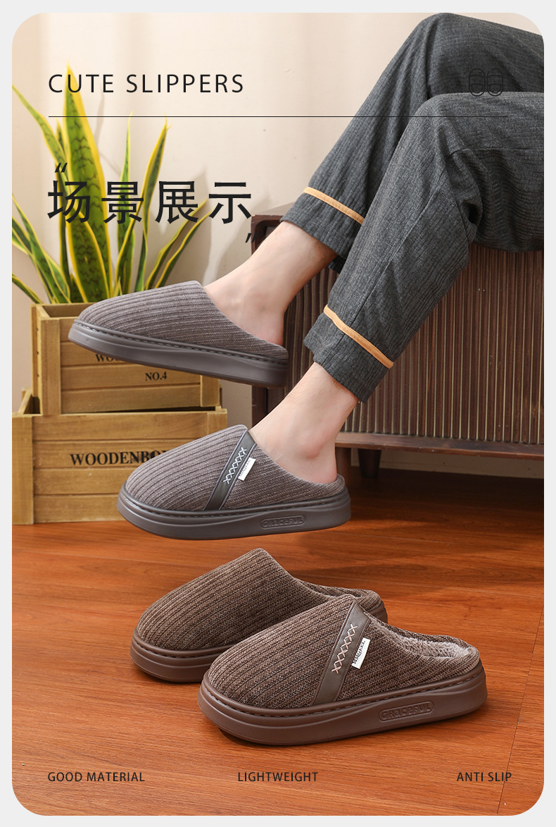 跨境棉拖鞋男秋冬季保暖居家eva厚底防滑不臭脚 抖快热卖拖鞋男款