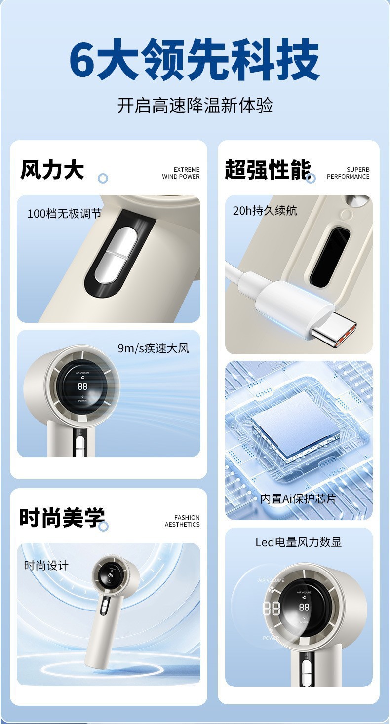 跨境东南亚100档高速手持风扇usb充电迷你户外暴力涡轮百档小风扇