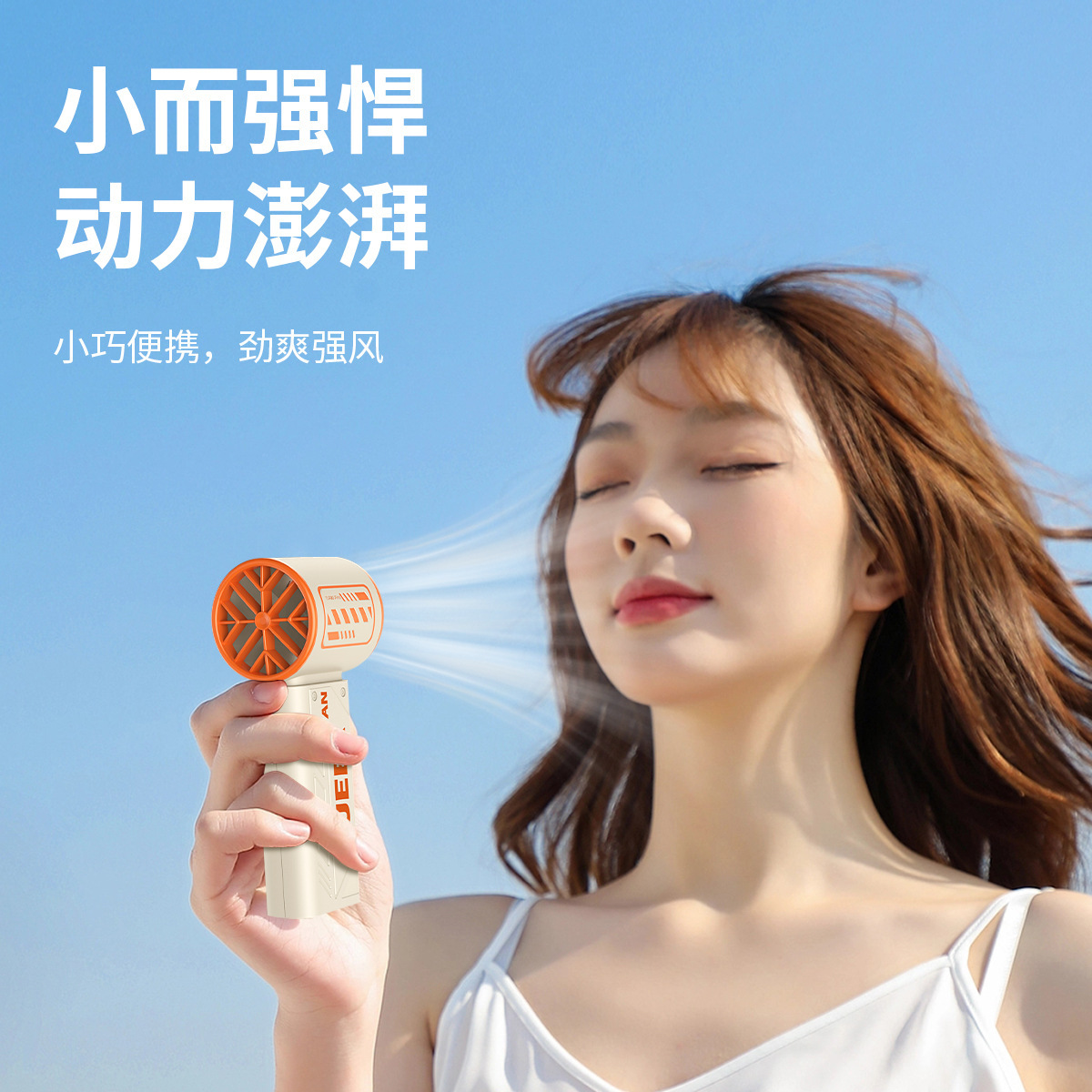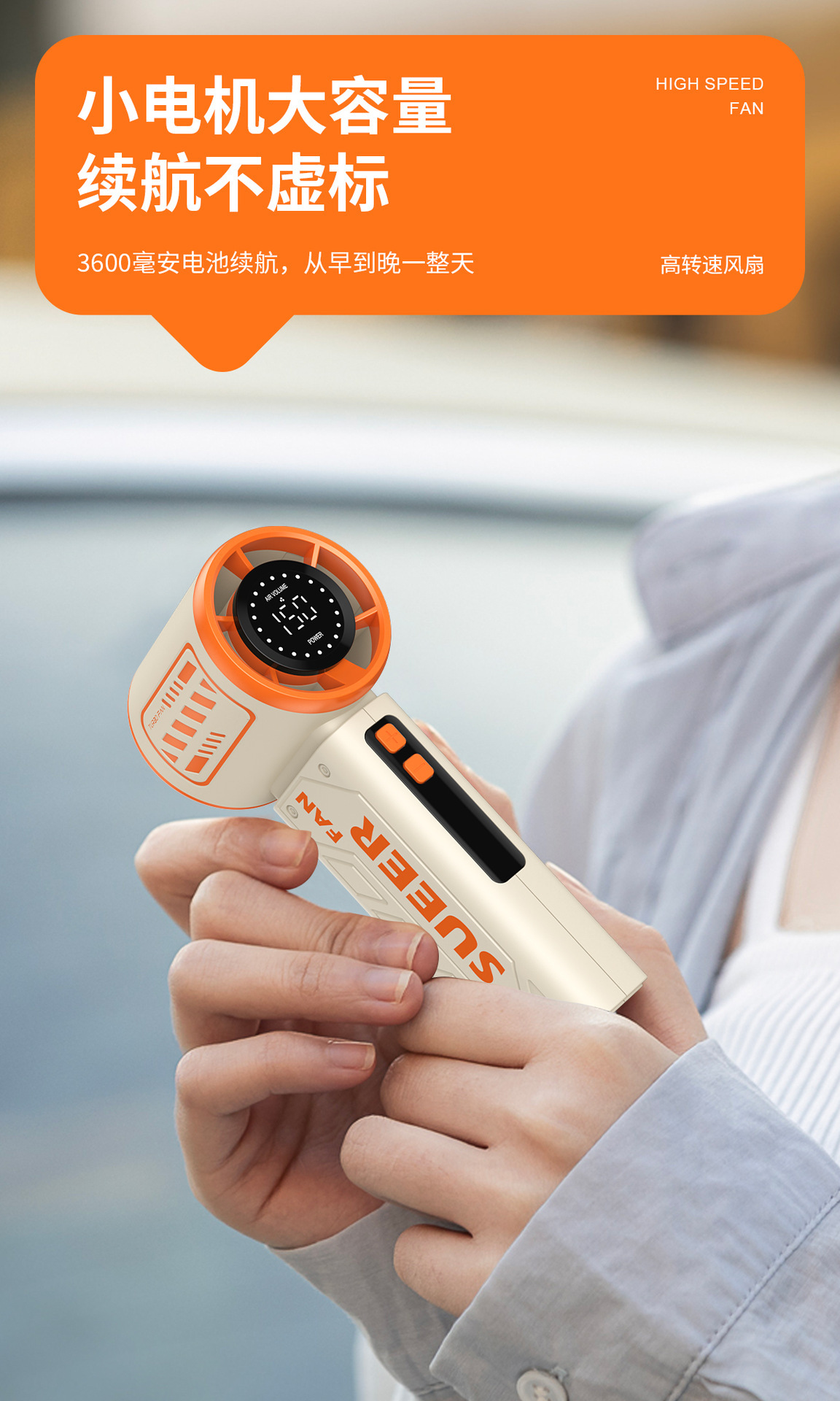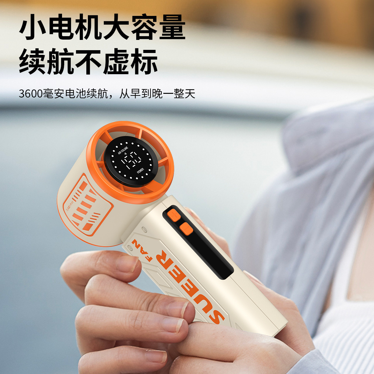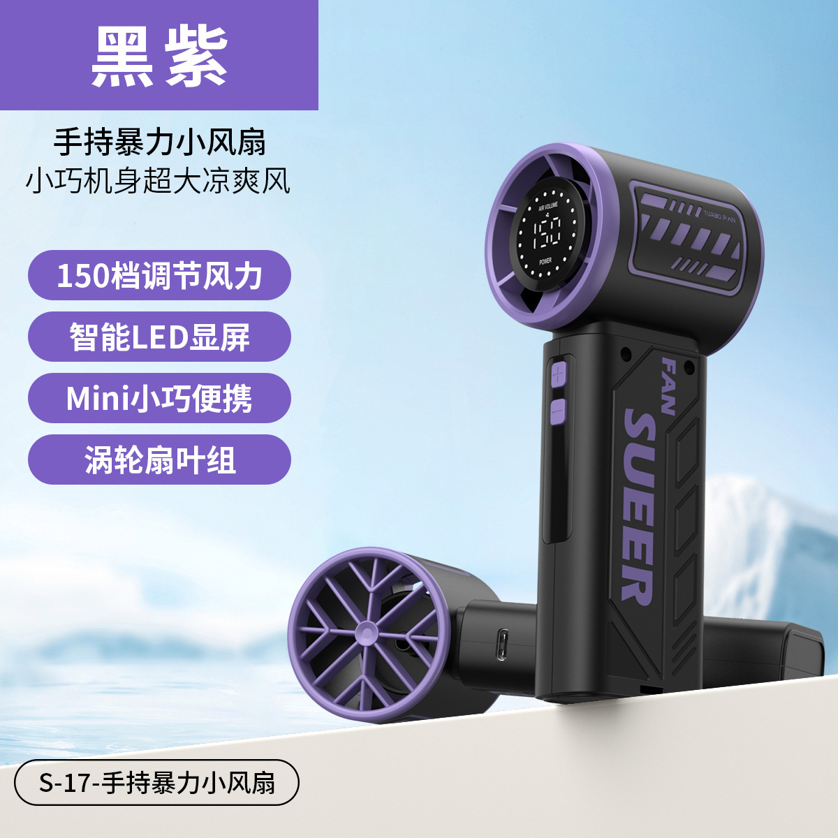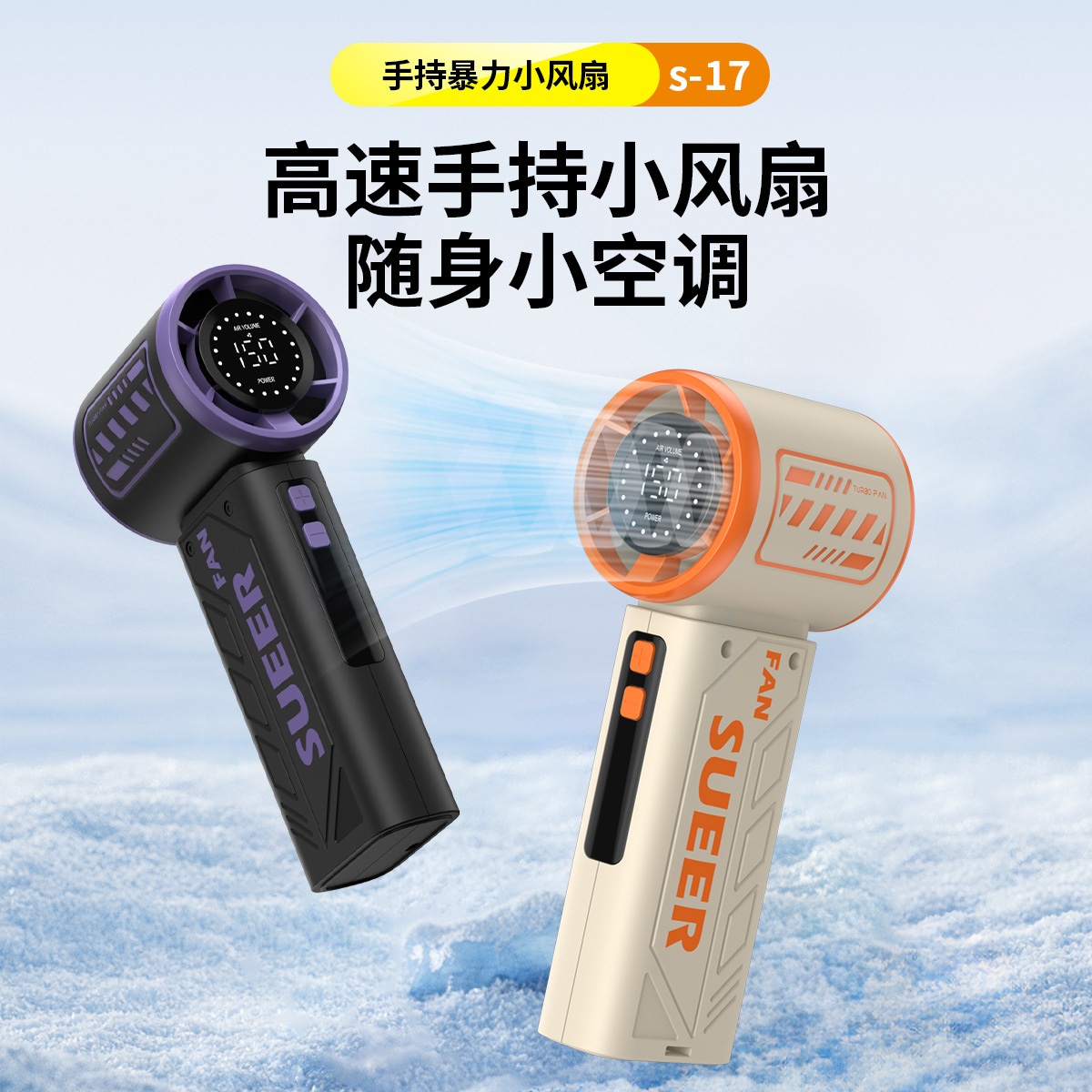 跨境新款S-17创意时尚机甲涡轮小风扇便携数显手持高速暴力小风扇