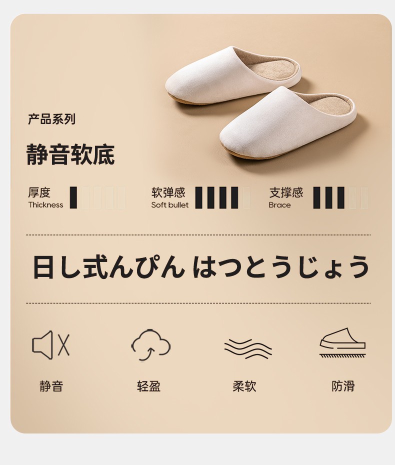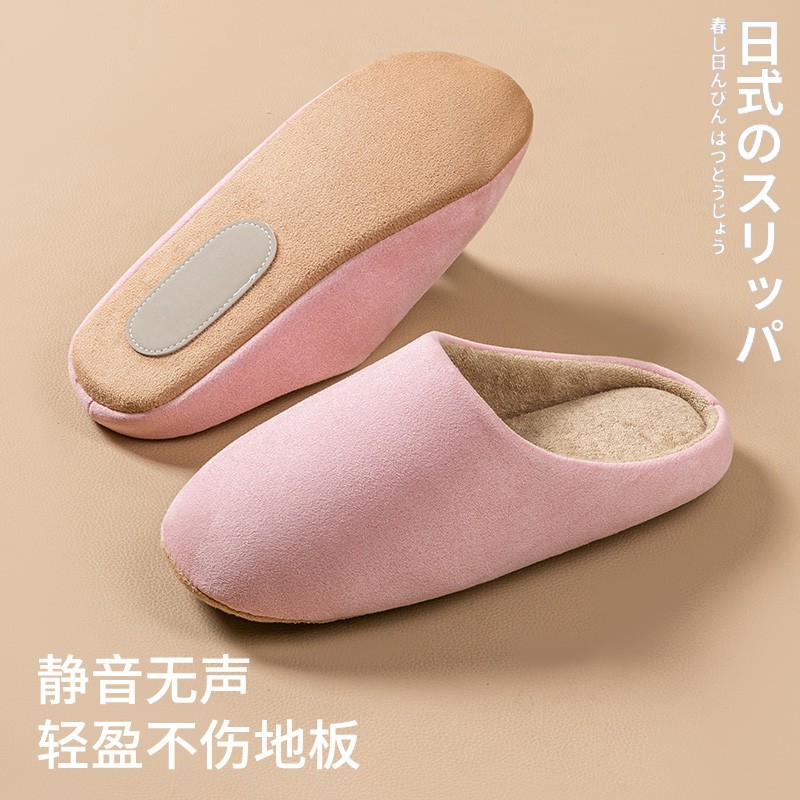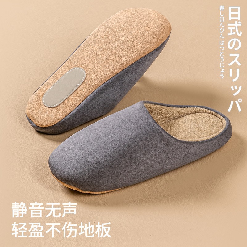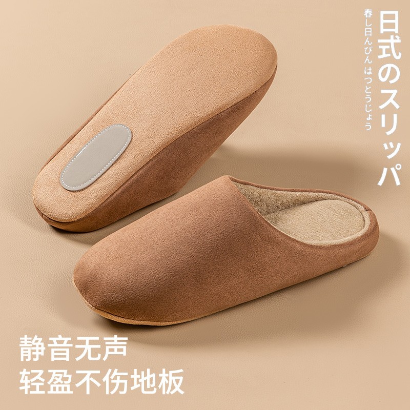 秋冬季日式居家居室内男女士无声家用软底大码防滑地板月子棉拖鞋