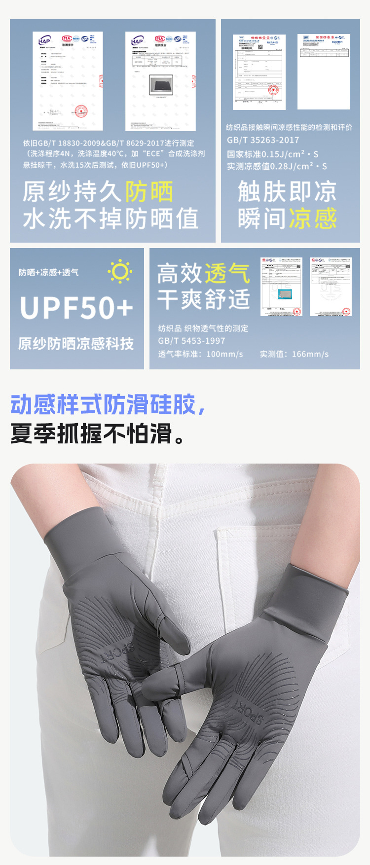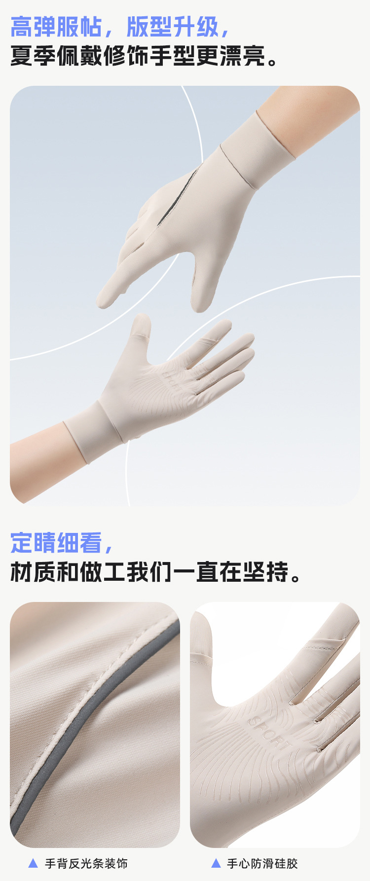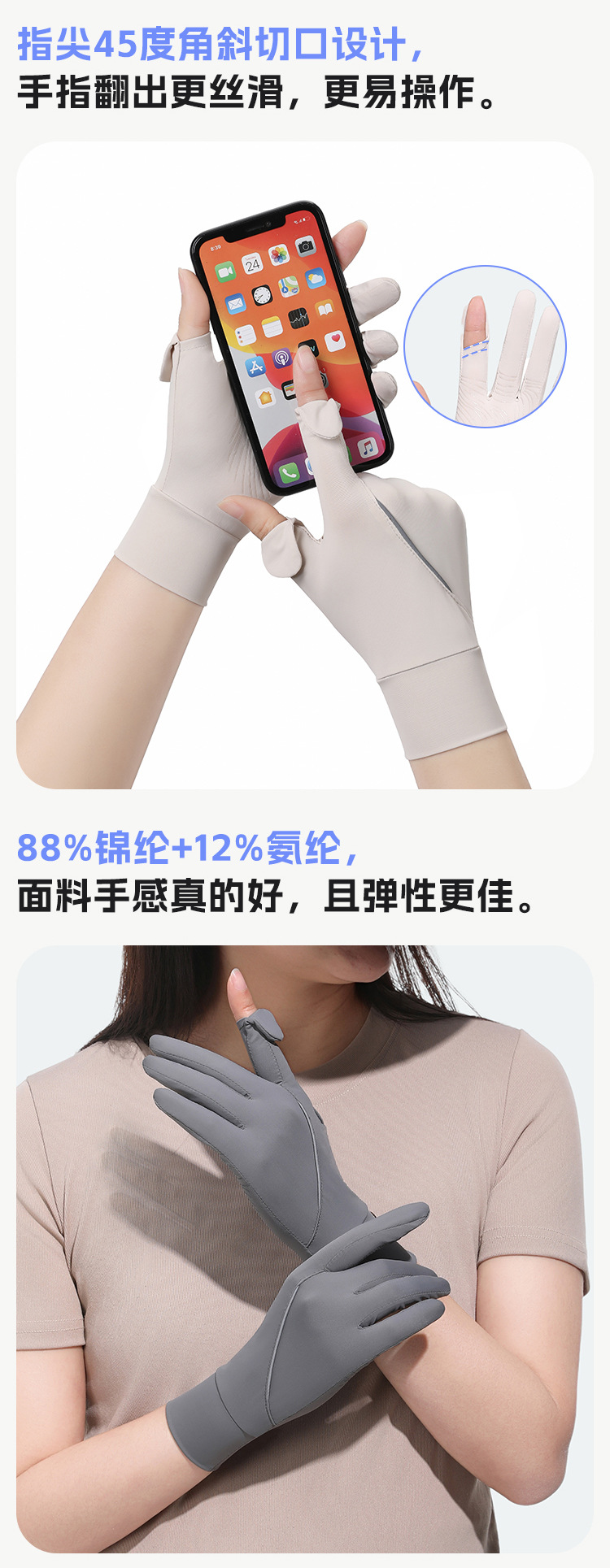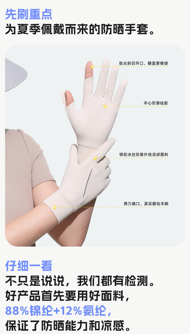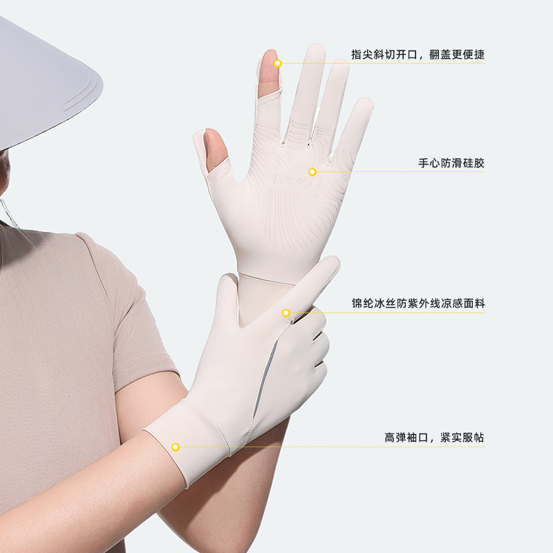 新品防晒手套女款中长款夏季锦纶冰丝防紫外线凉感防滑翻盖可触屏
