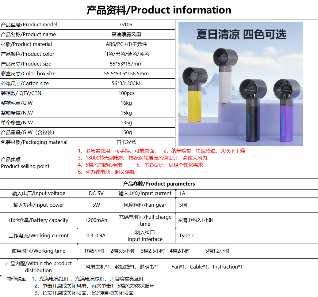 新款手持高速喷雾风扇便携式迷你小风扇制冷风扇跨境直播学生宿舍