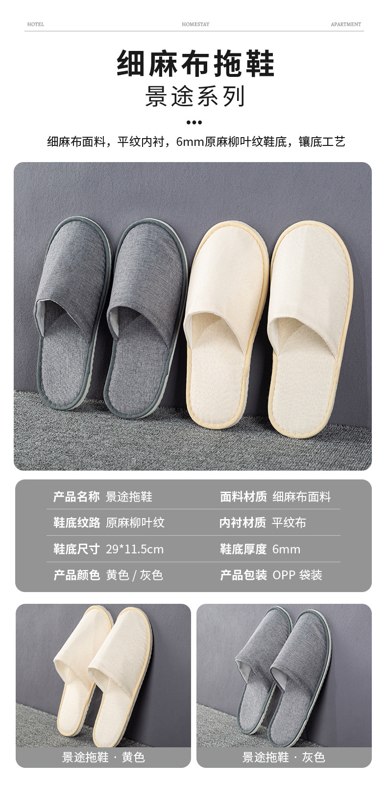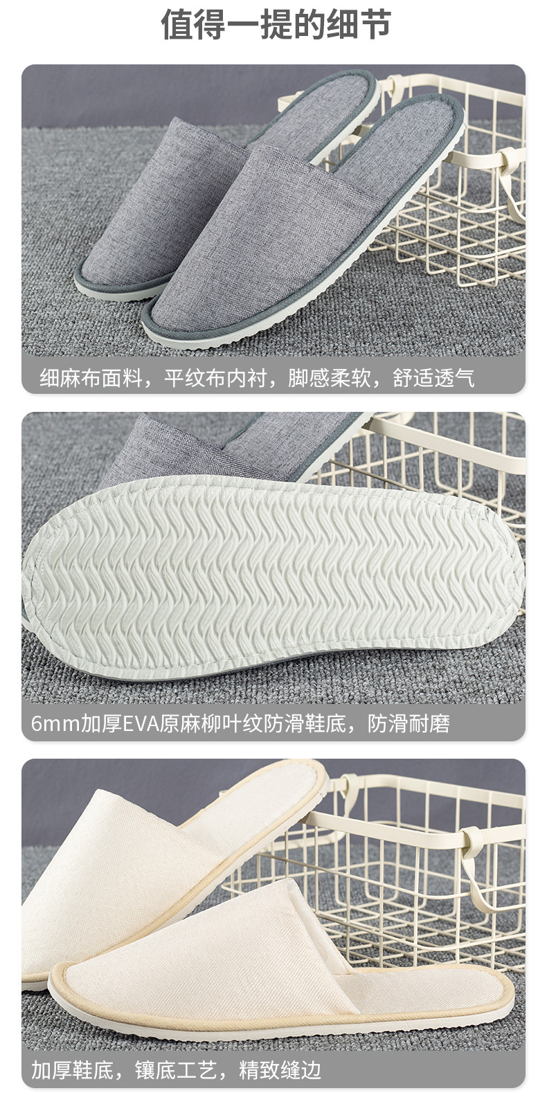 美容院防滑底加厚宾馆用品批发待客棉麻民宿酒店专用一次性拖鞋