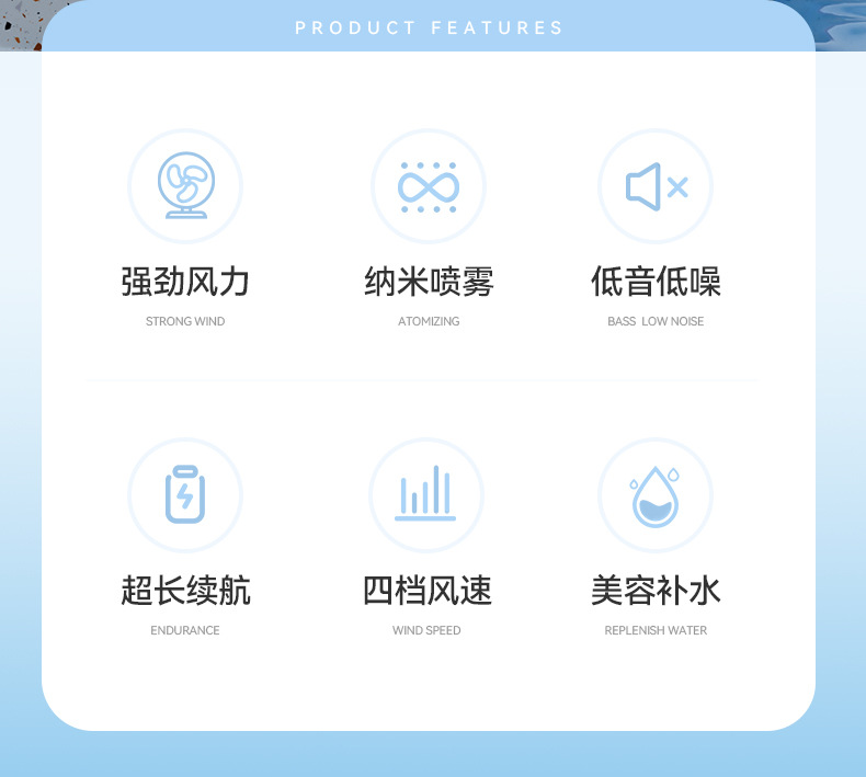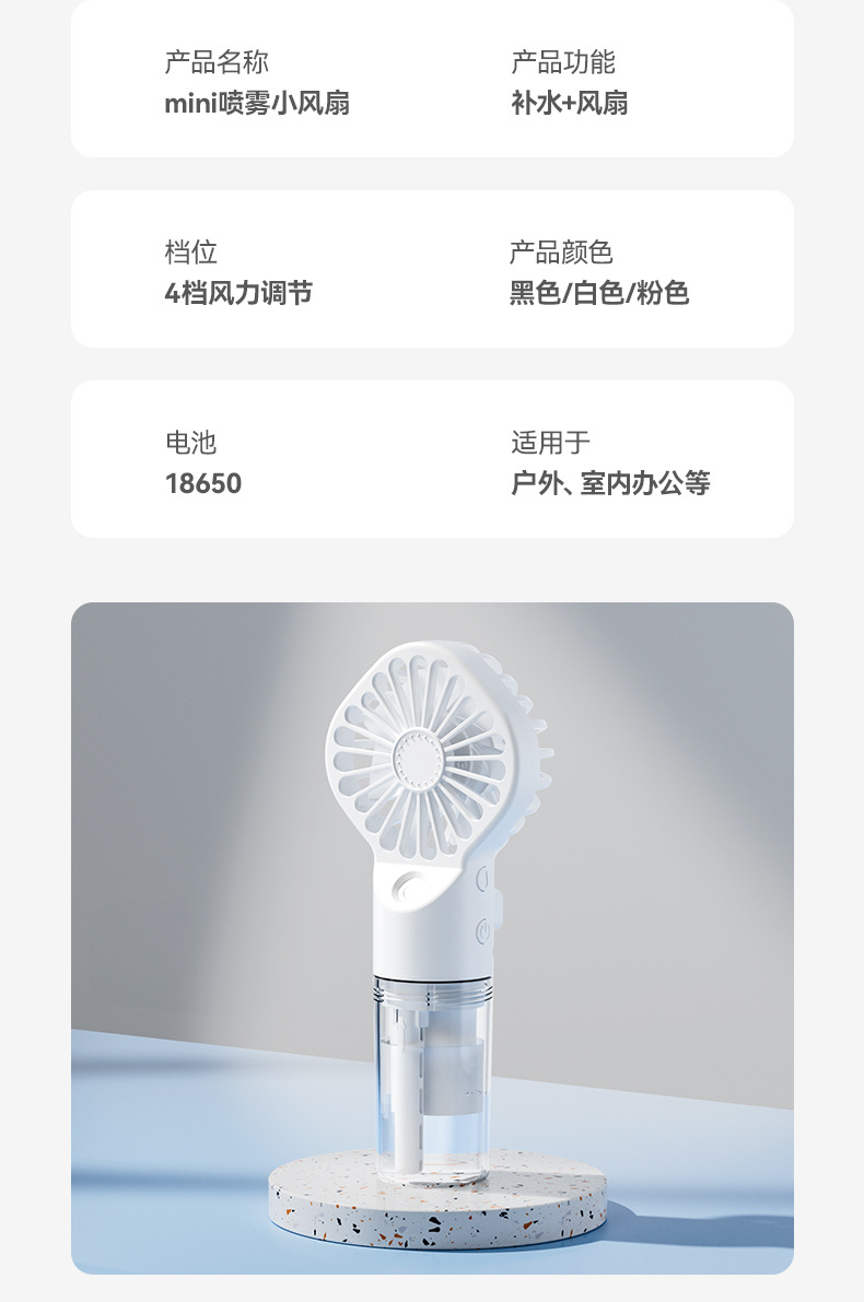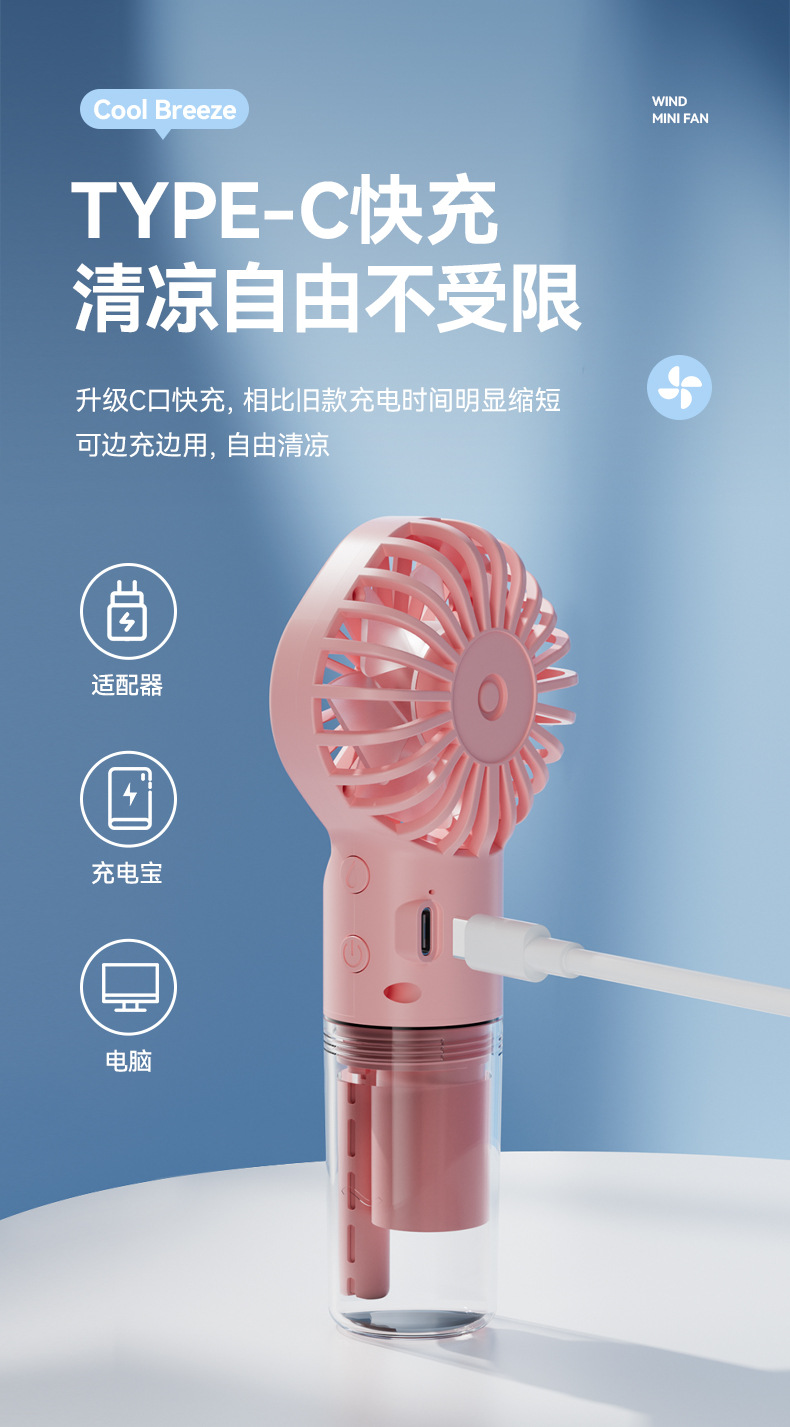 室外必备喷雾风扇便携式补水降温加湿喷水电风扇充电式F3手持小风