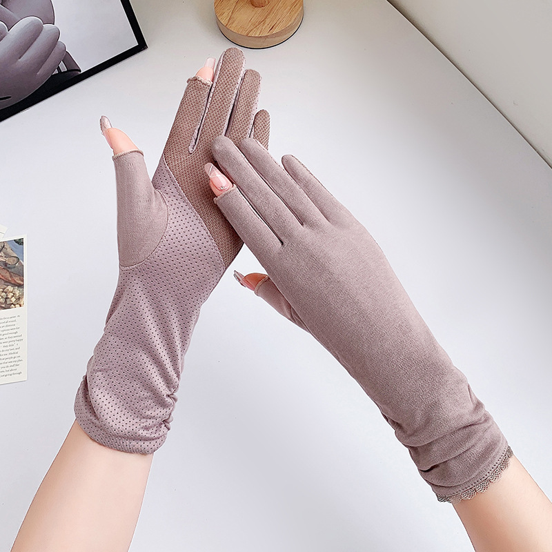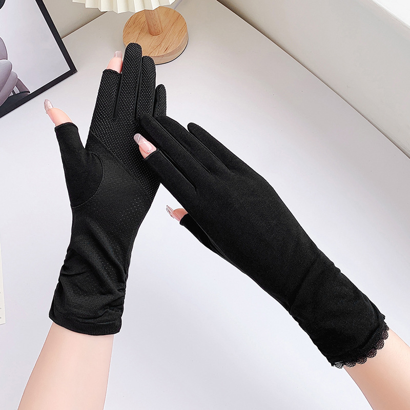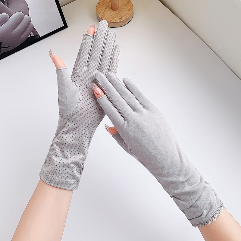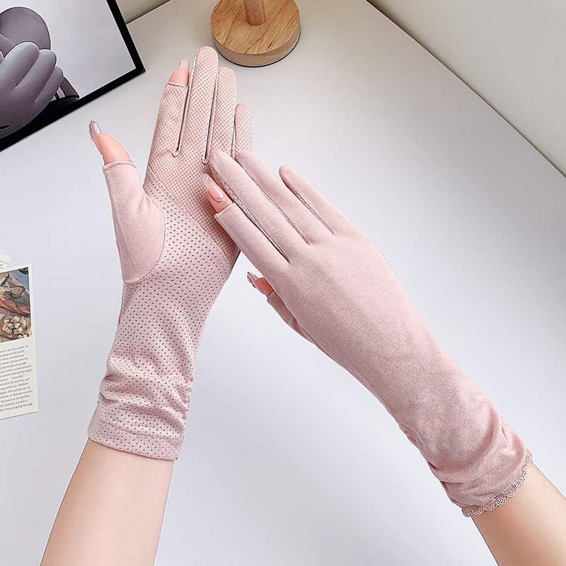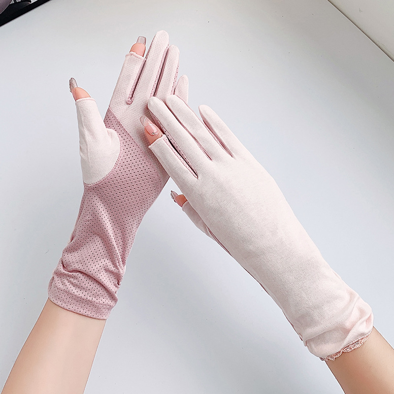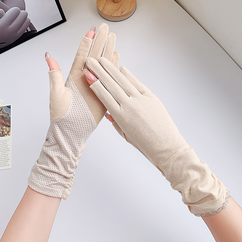 防晒手套女中长款夏薄款开车骑行采茶美甲防滑棉露指防晒女式手套