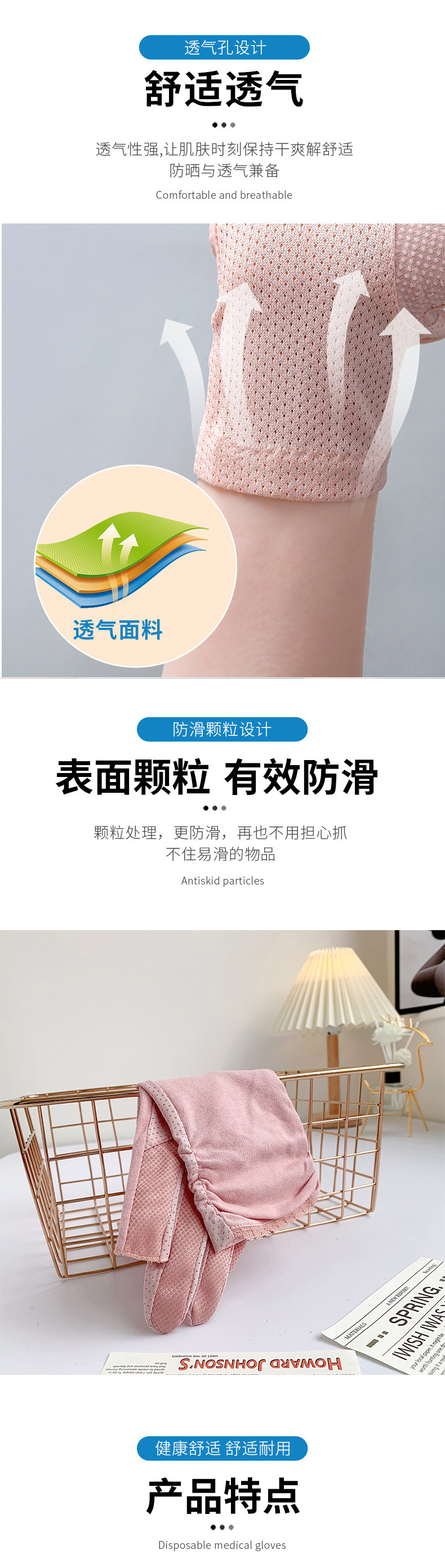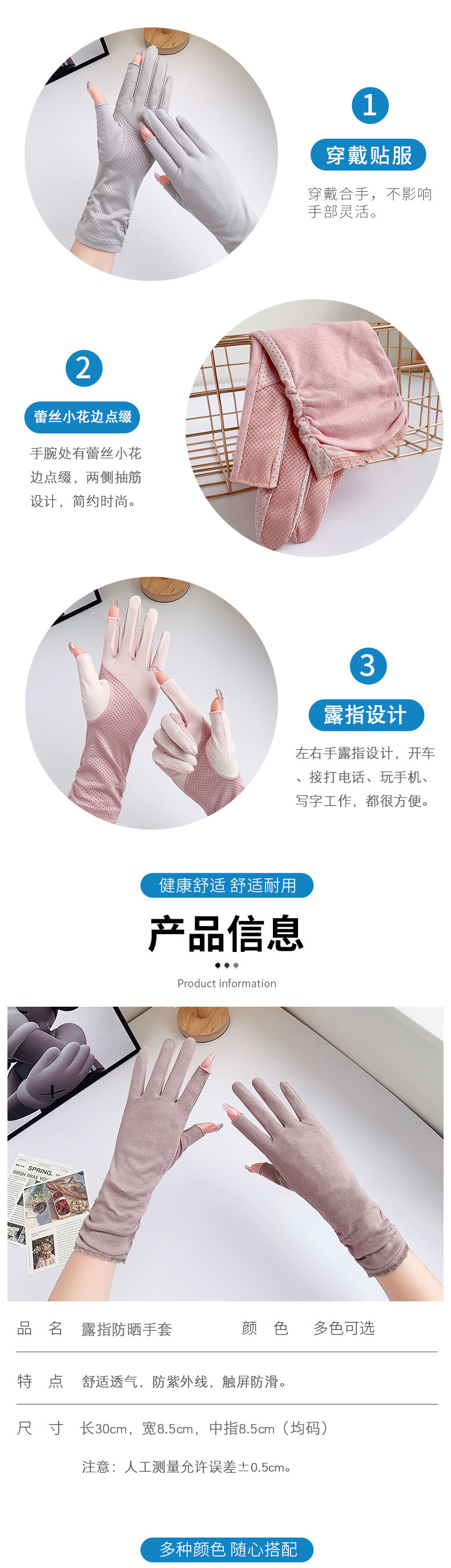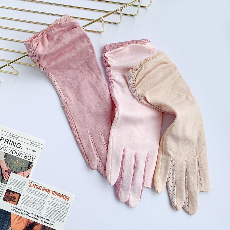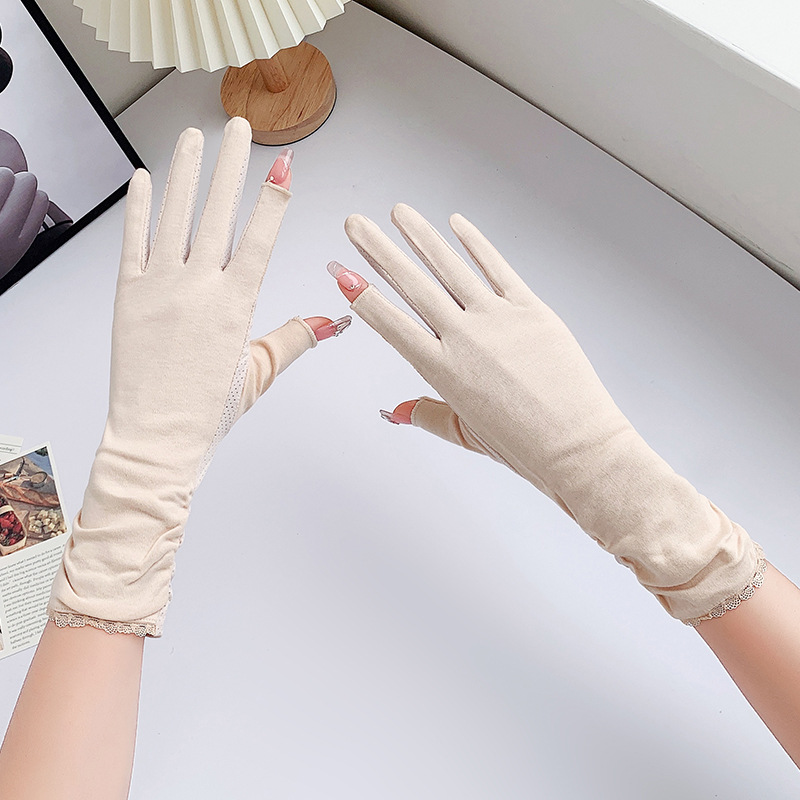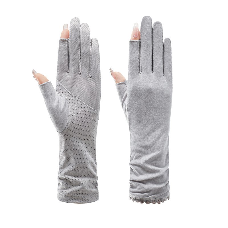 防晒手套女中长款夏薄款开车骑行采茶美甲防滑棉露指防晒女式手套