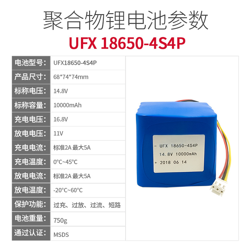 UFX18650-4S4P大容量电池组14.8v10AH 应急电源 智能机器人电池