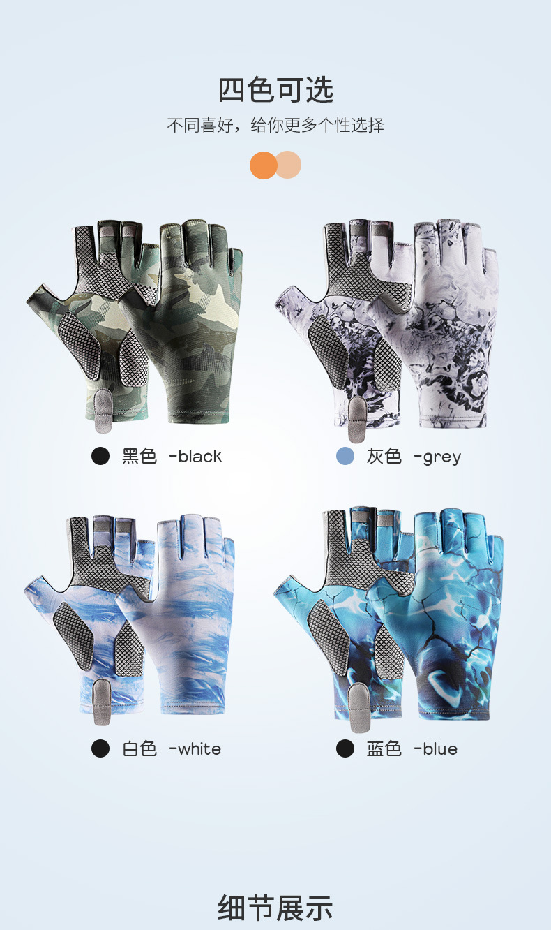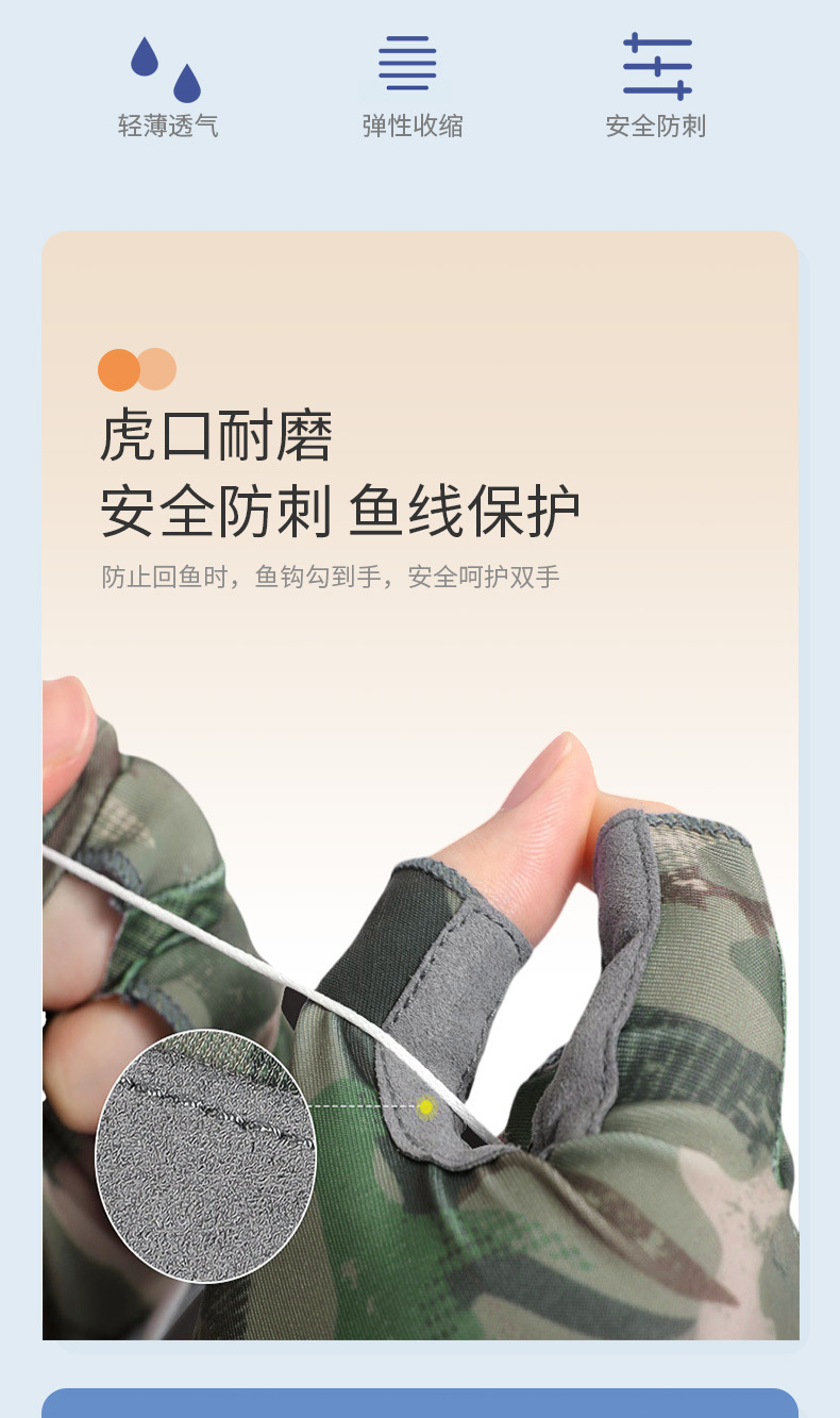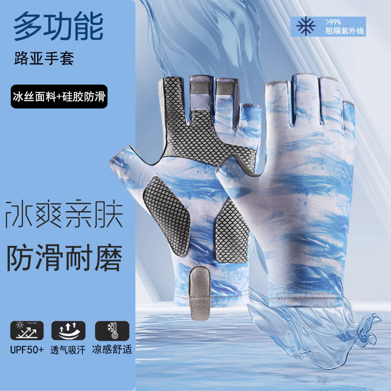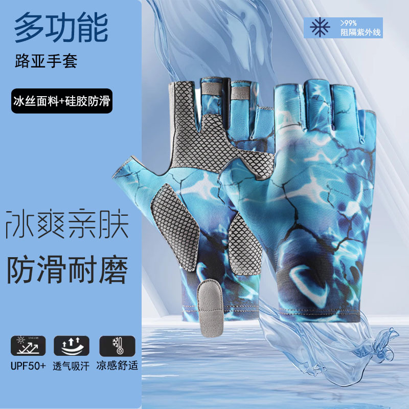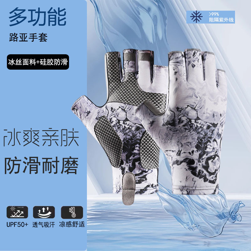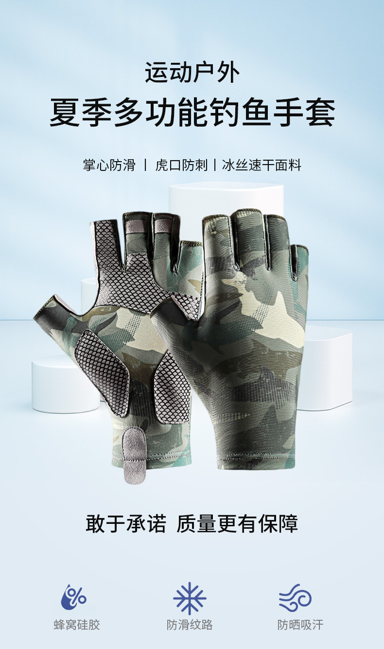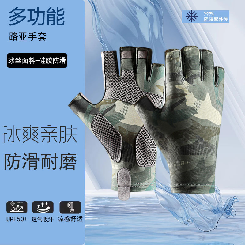 钓鱼手套男士户外冰丝防晒路亚飞磕专用露指防滑速干薄款半指手套