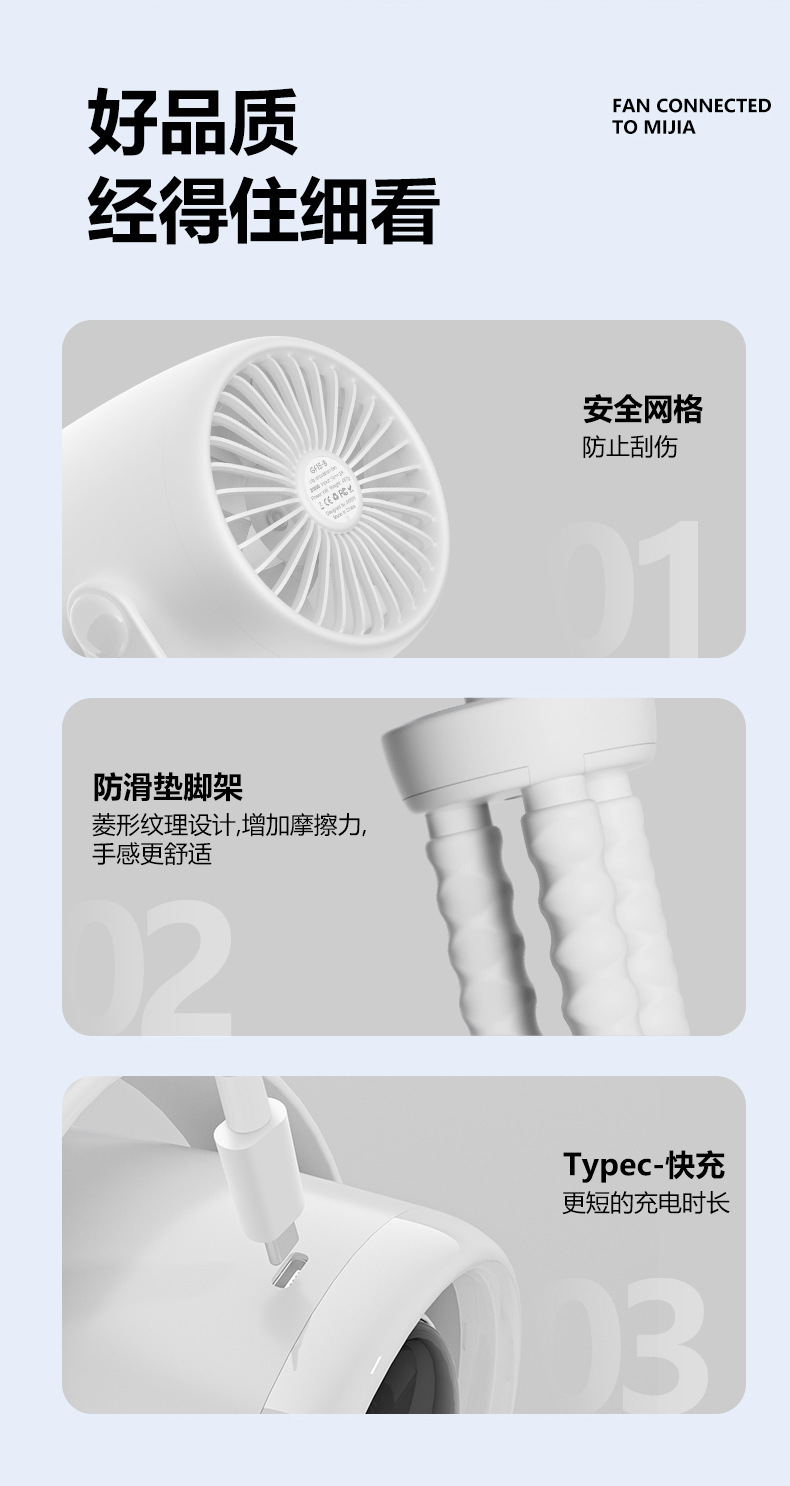 跨境婴儿车小风扇八爪鱼静音变频循环扇儿童手推车带夜灯香薰驱蚊