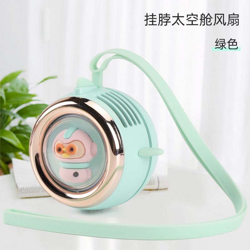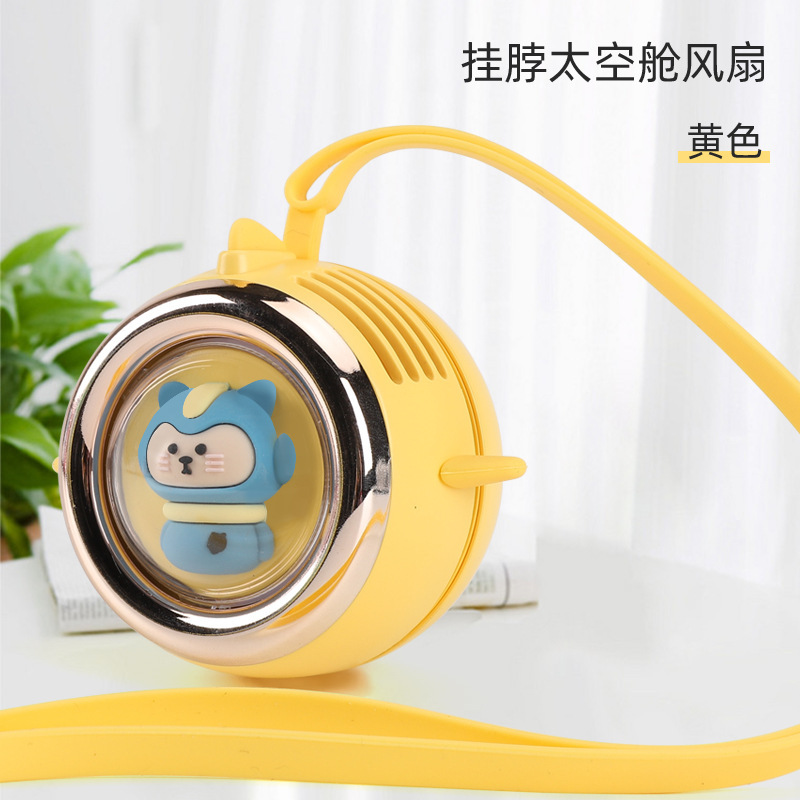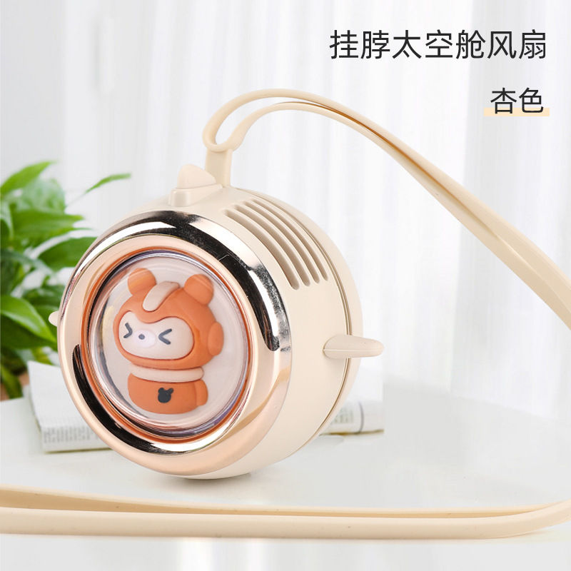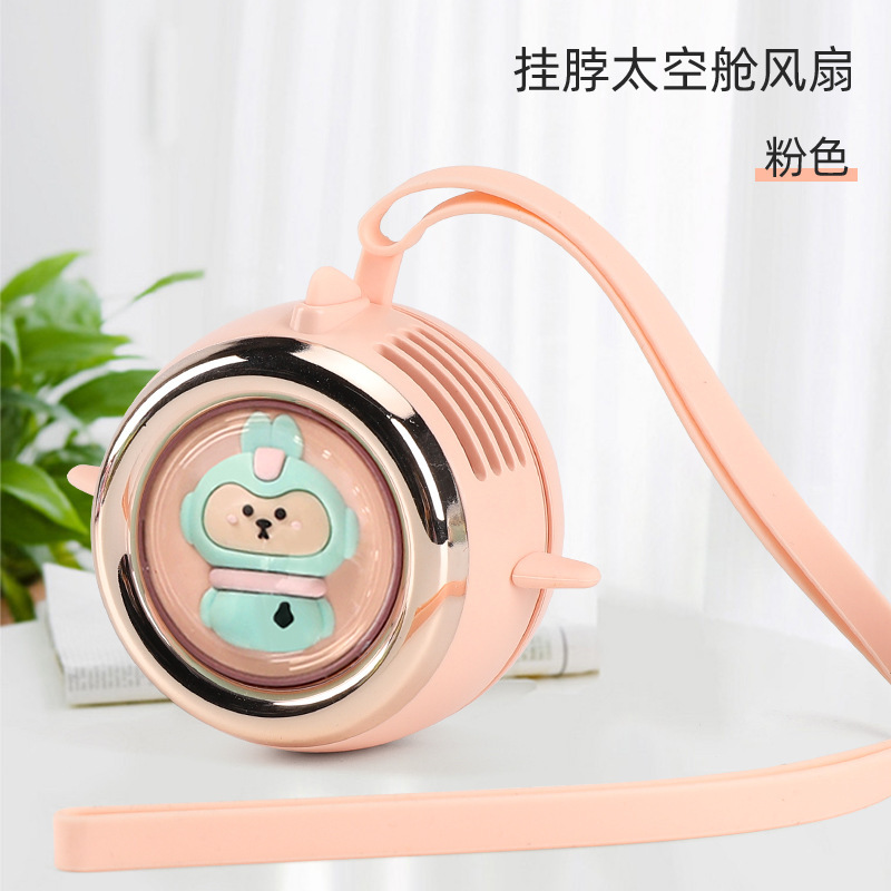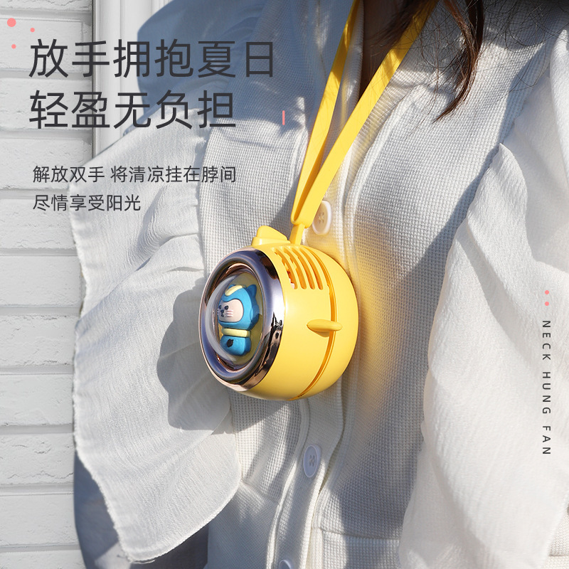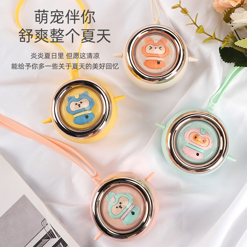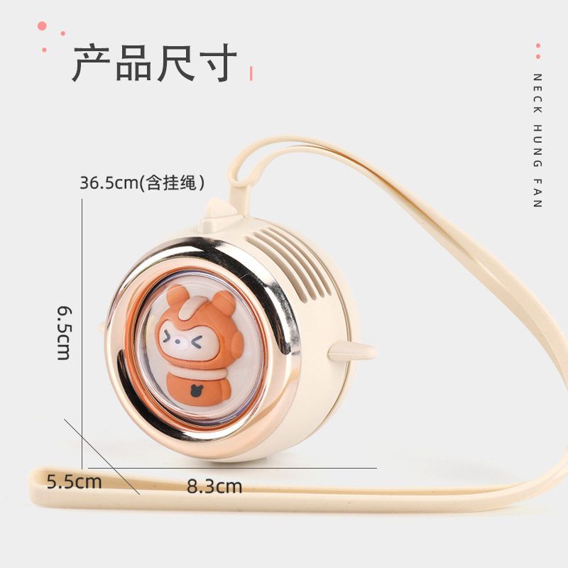 跨境无叶挂脖迷你小风扇卡通萌宠公仔USB充电便携学生办公室 旅游
