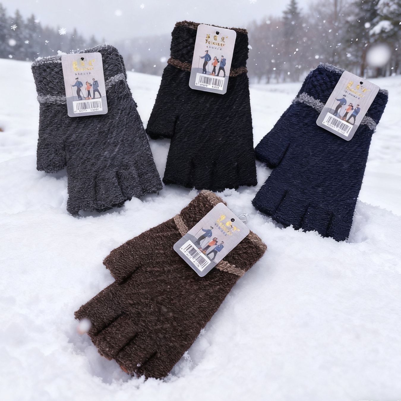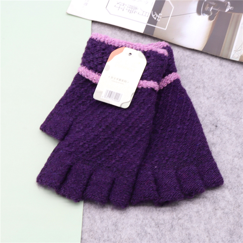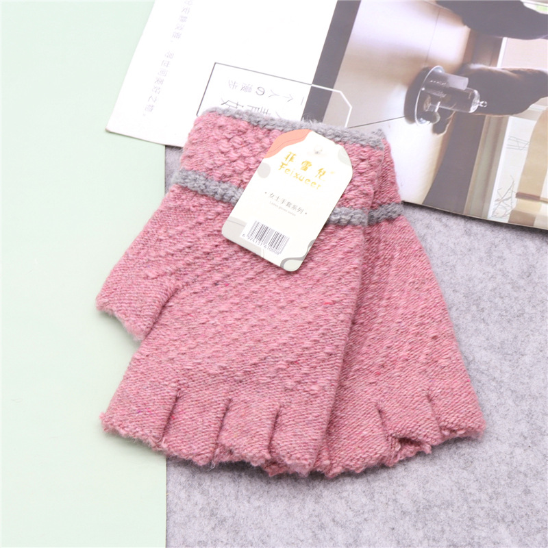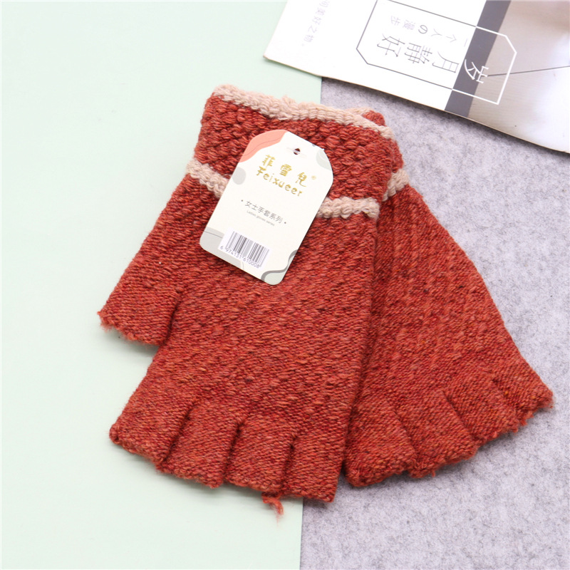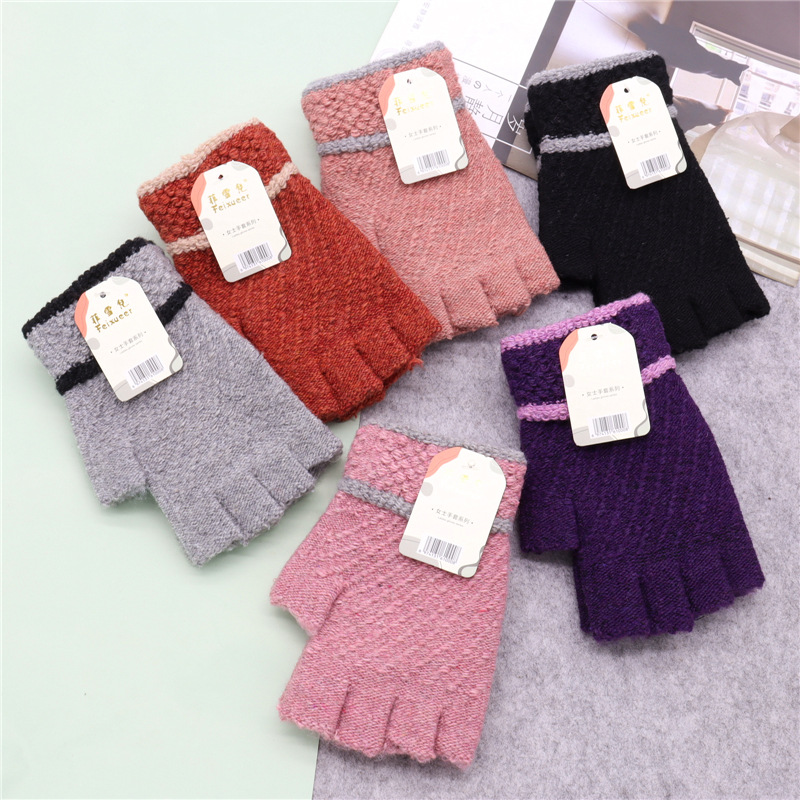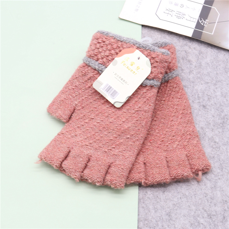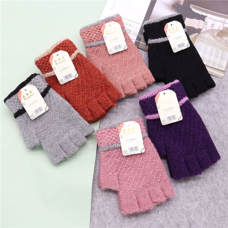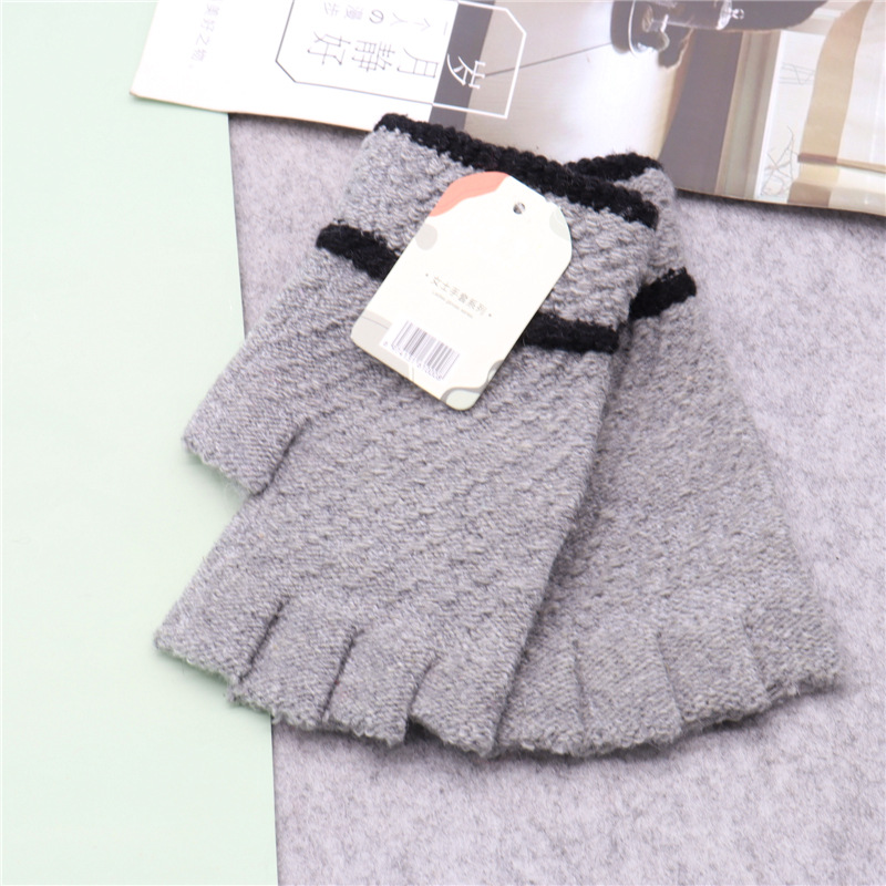 保暖半指毛线新款写字秋冬针织男女成人手套韩式加厚半截手套批发