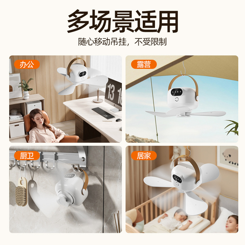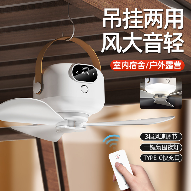 新款无线遥控灯光吊扇USB床上宿舍小吊扇户外露营便携夜灯电风扇