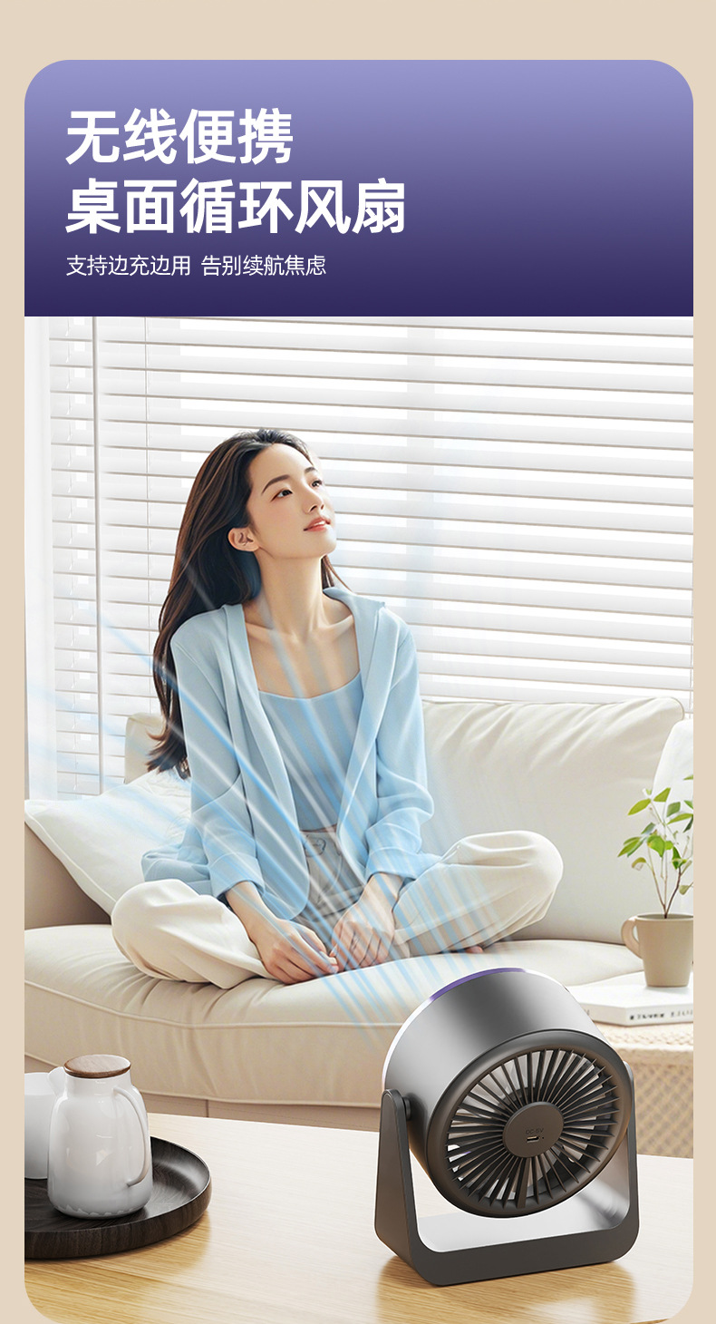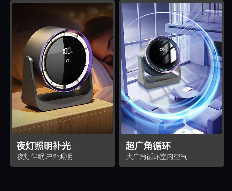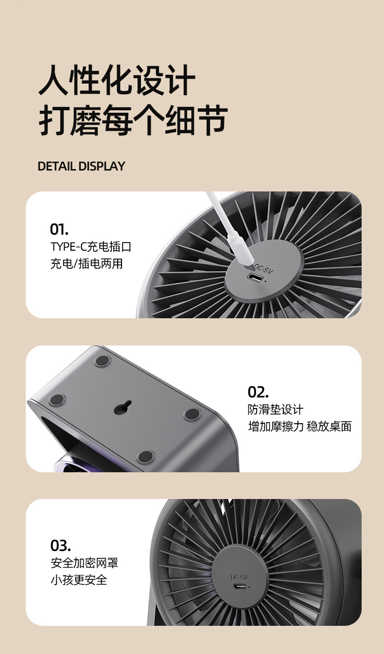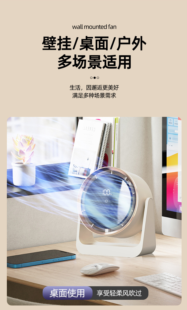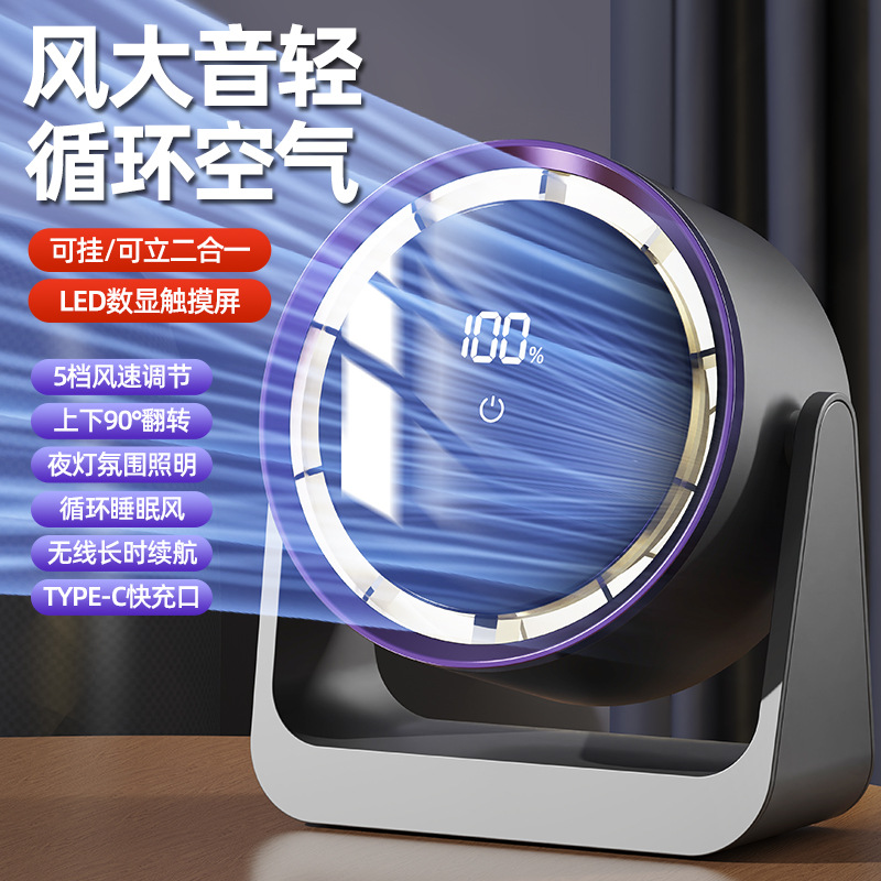 2025新款跨境迷你电风扇桌面宿舍USB台灯风扇挂壁家用宿舍循环扇
