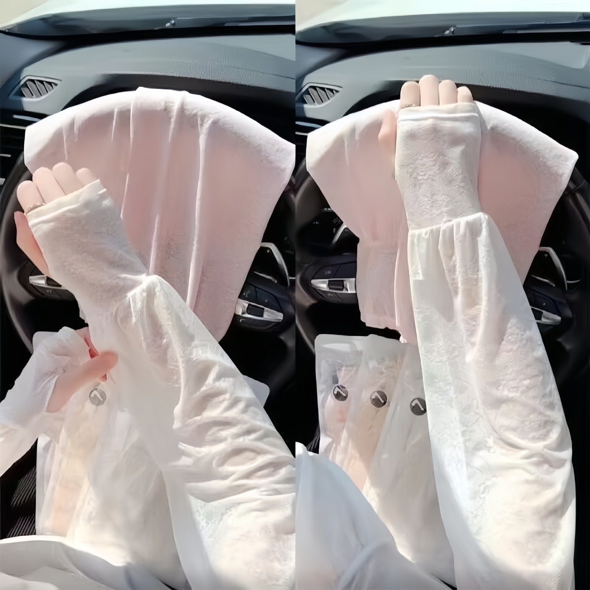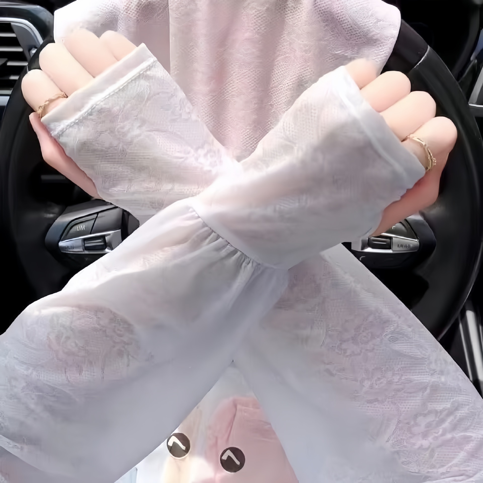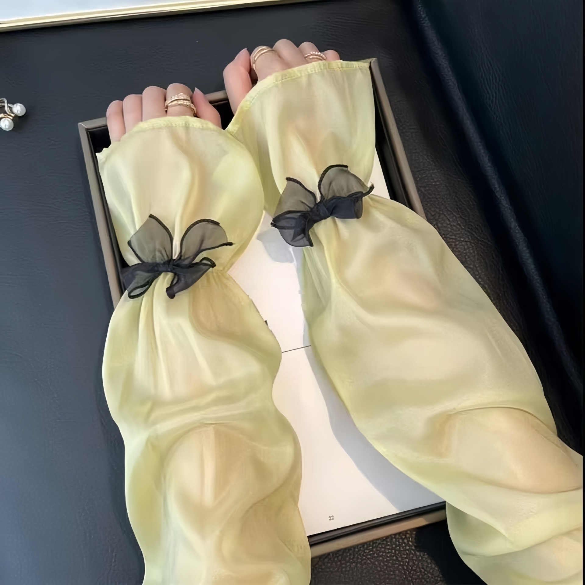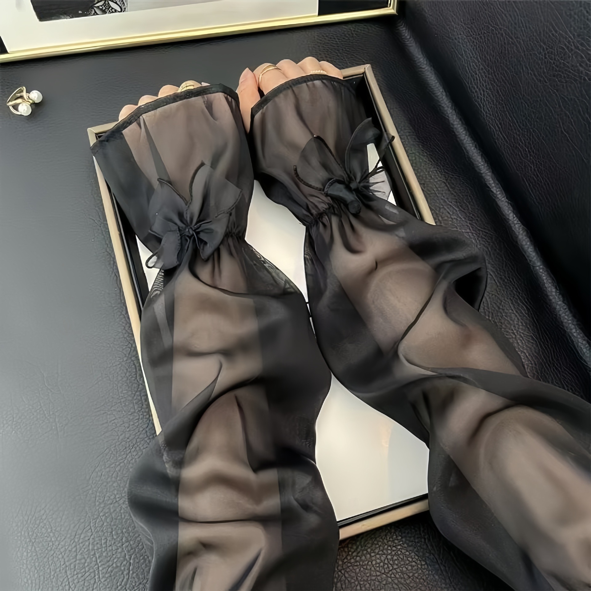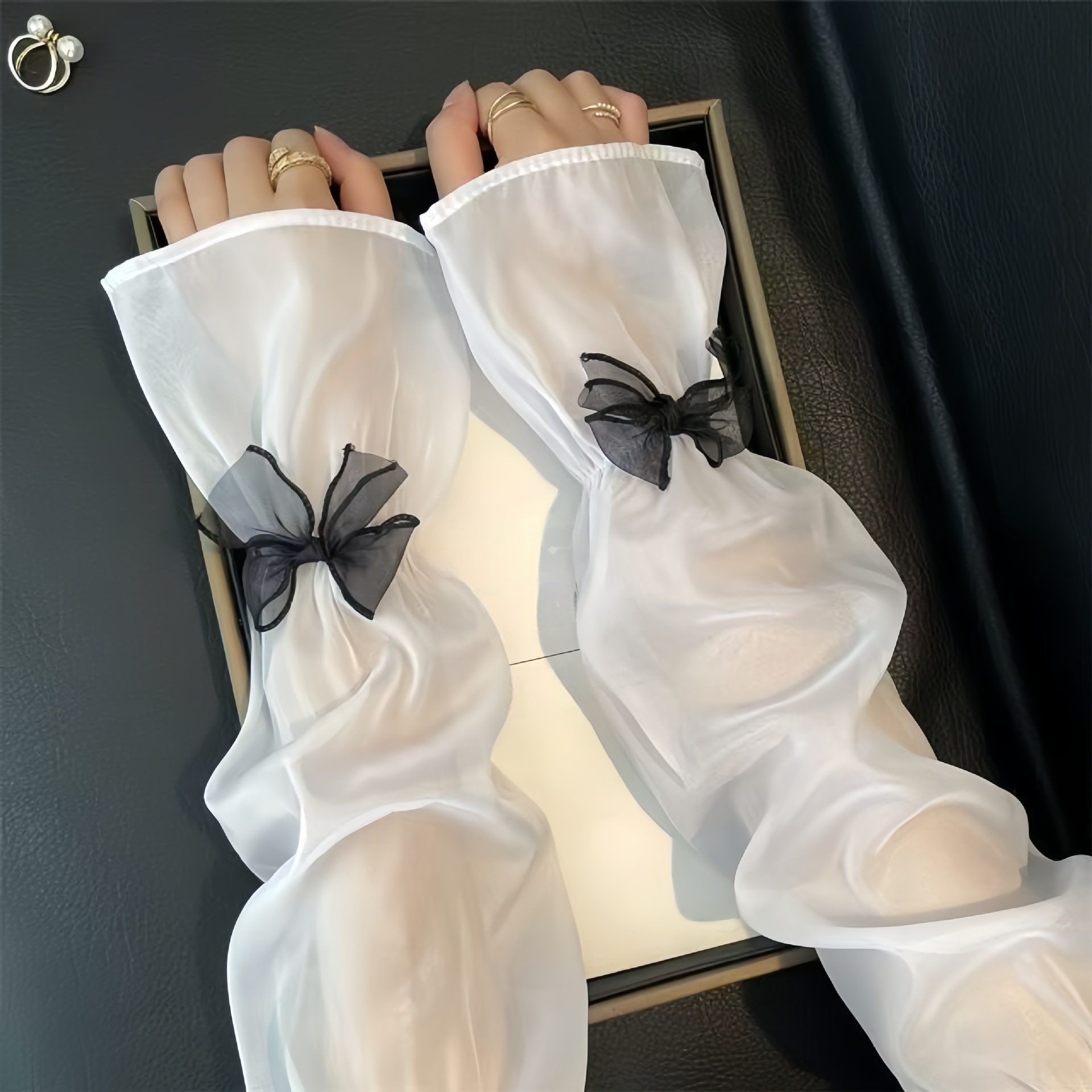 夏季高档网纱蝴蝶结防晒冰袖户外开车骑行防紫外线喇叭口防晒袖套