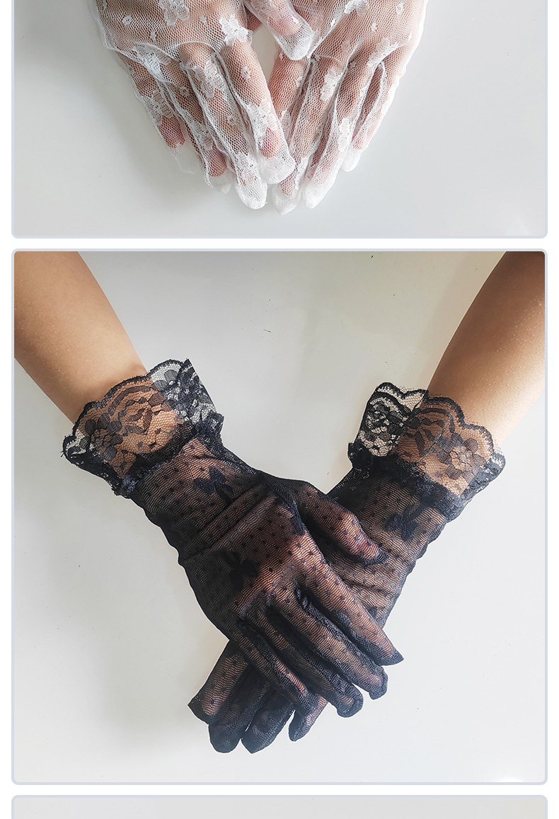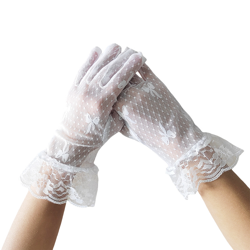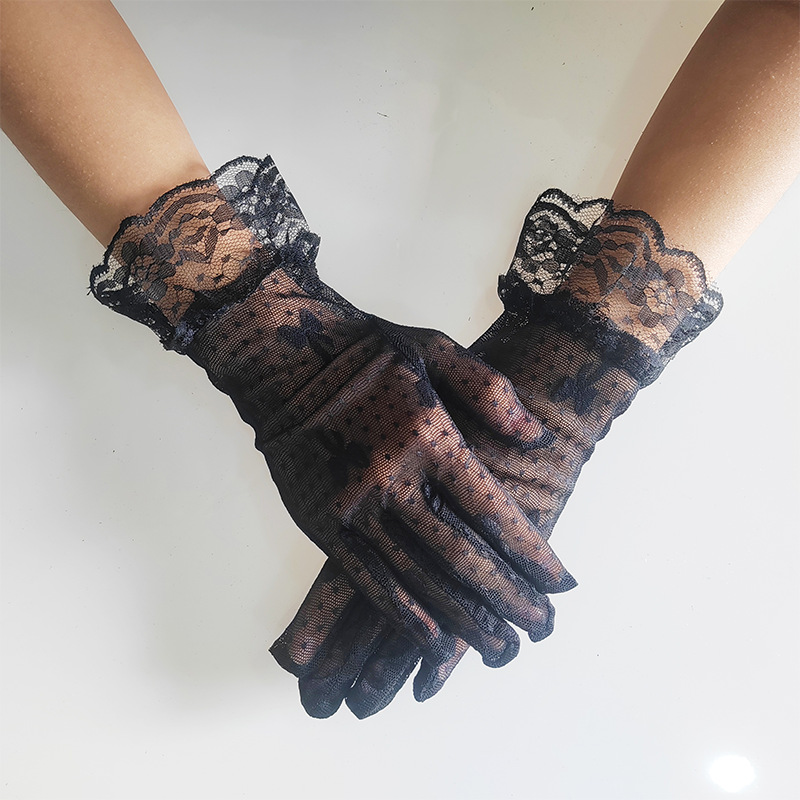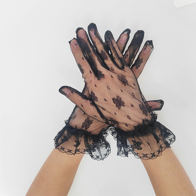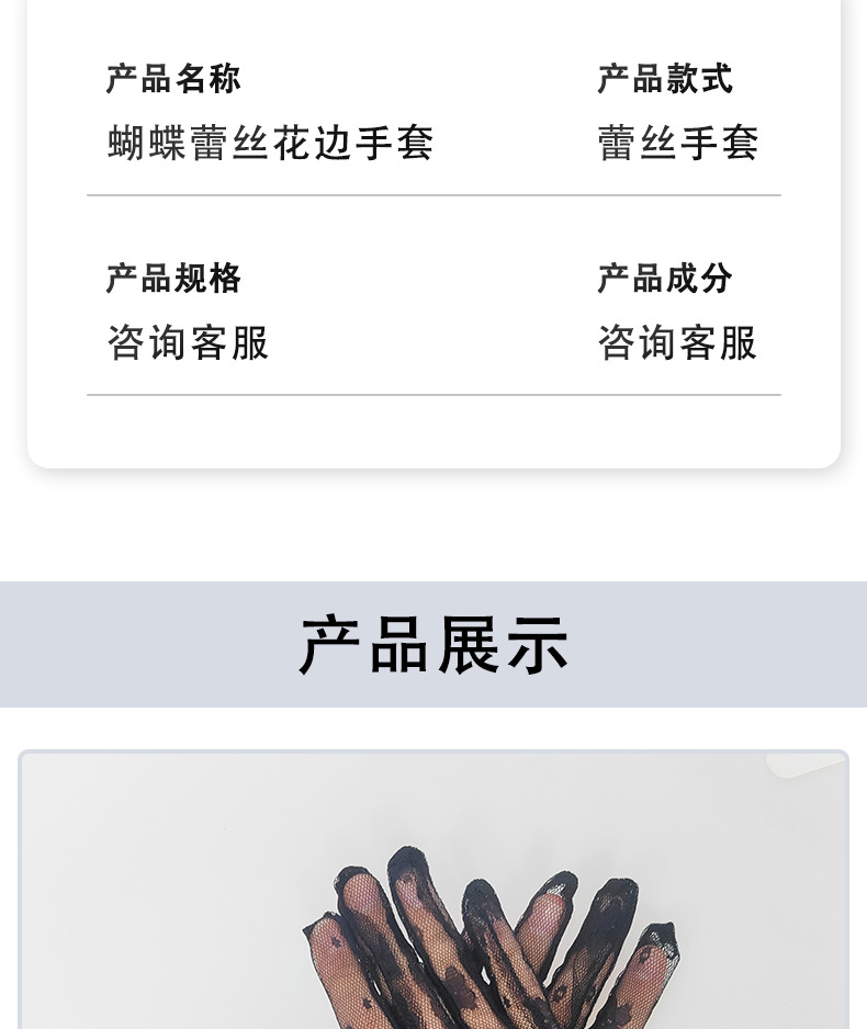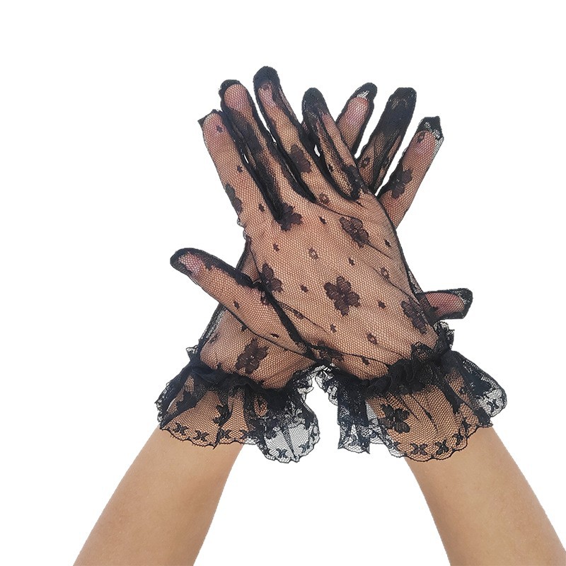 跨境薄款网纱手套女镂空夏天性感黑白弹力蝴蝶蕾丝花边透气饰品