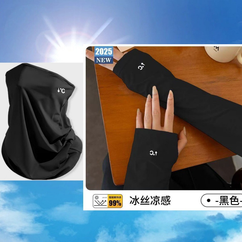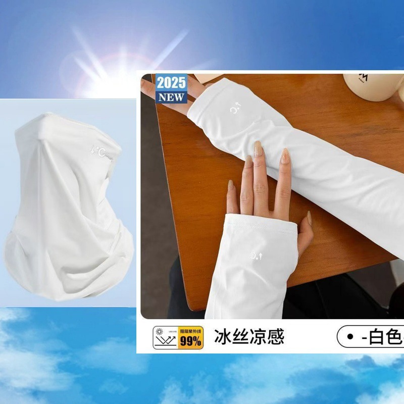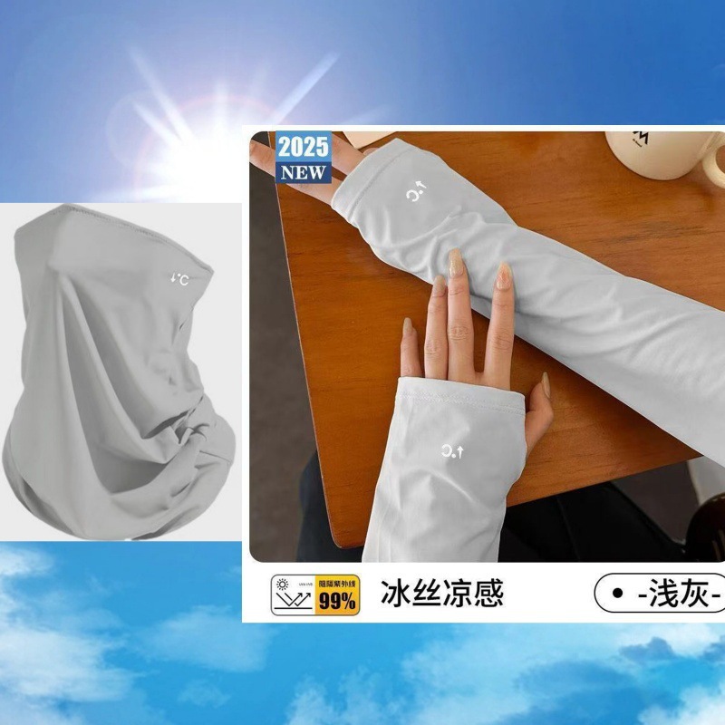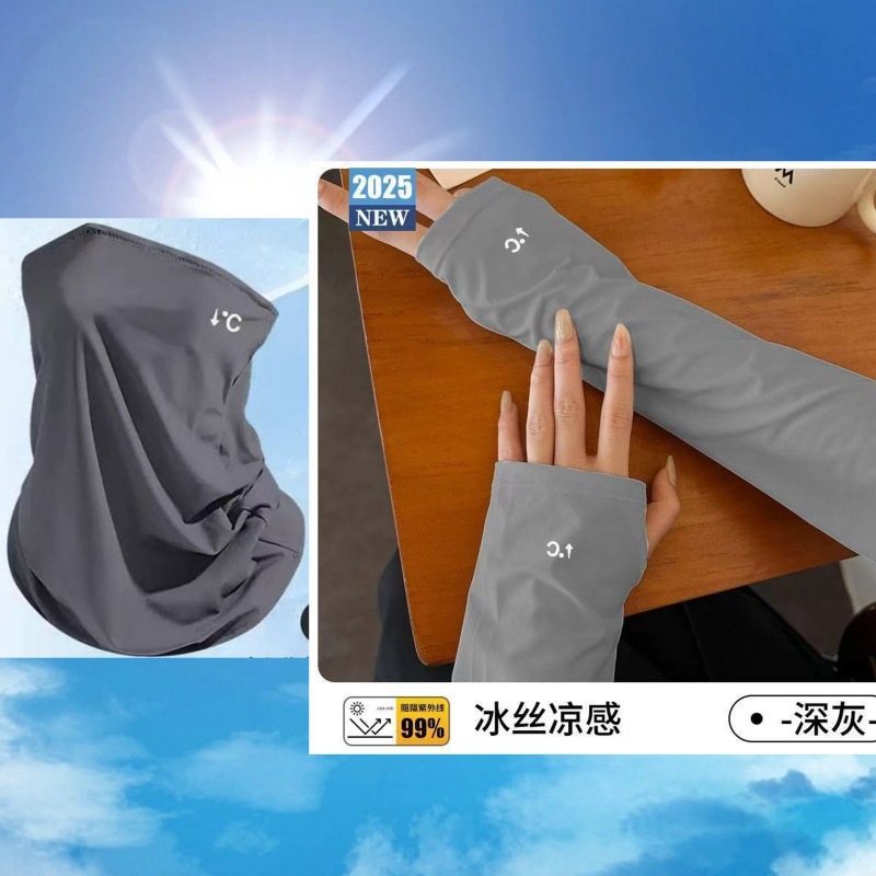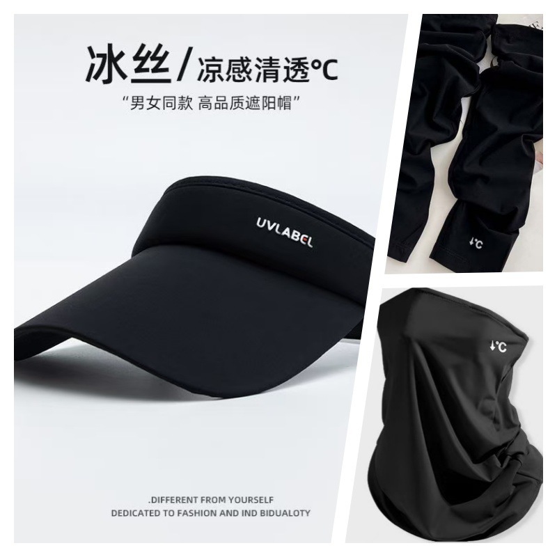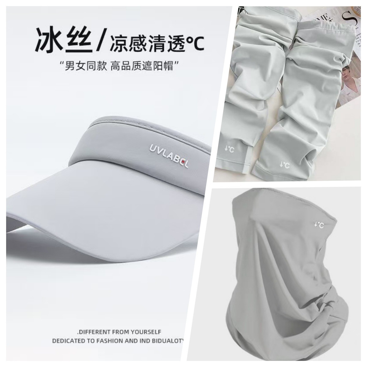 夏季新款冰丝遮阳防晒冰袖开车户外防紫外线宽松透气三件套袖套女