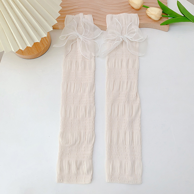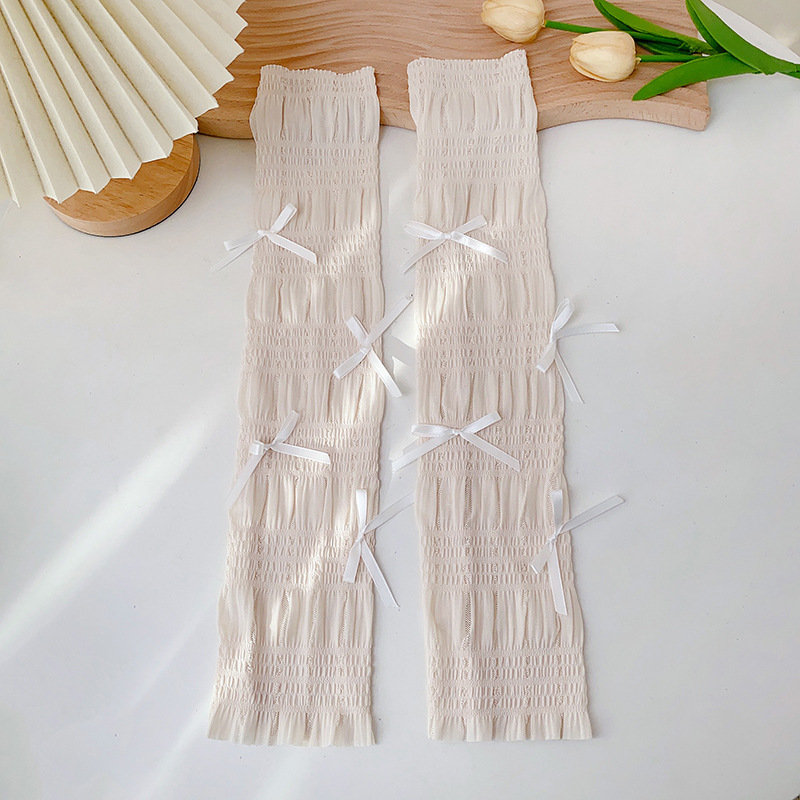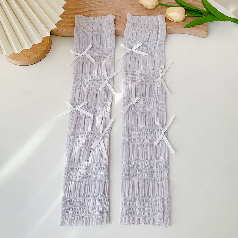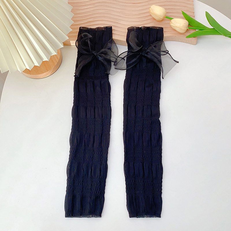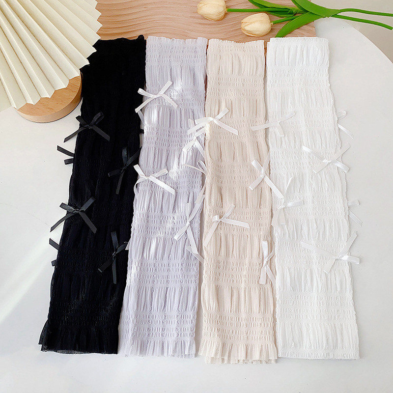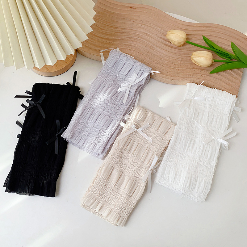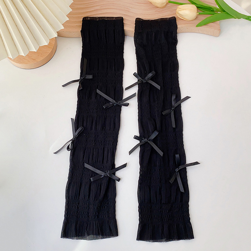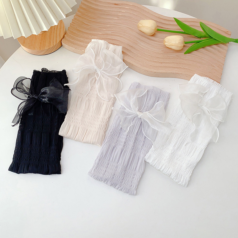冰丝防晒手套女士夏季开车户外防紫外线蝴蝶结透气成人骑行手臂套