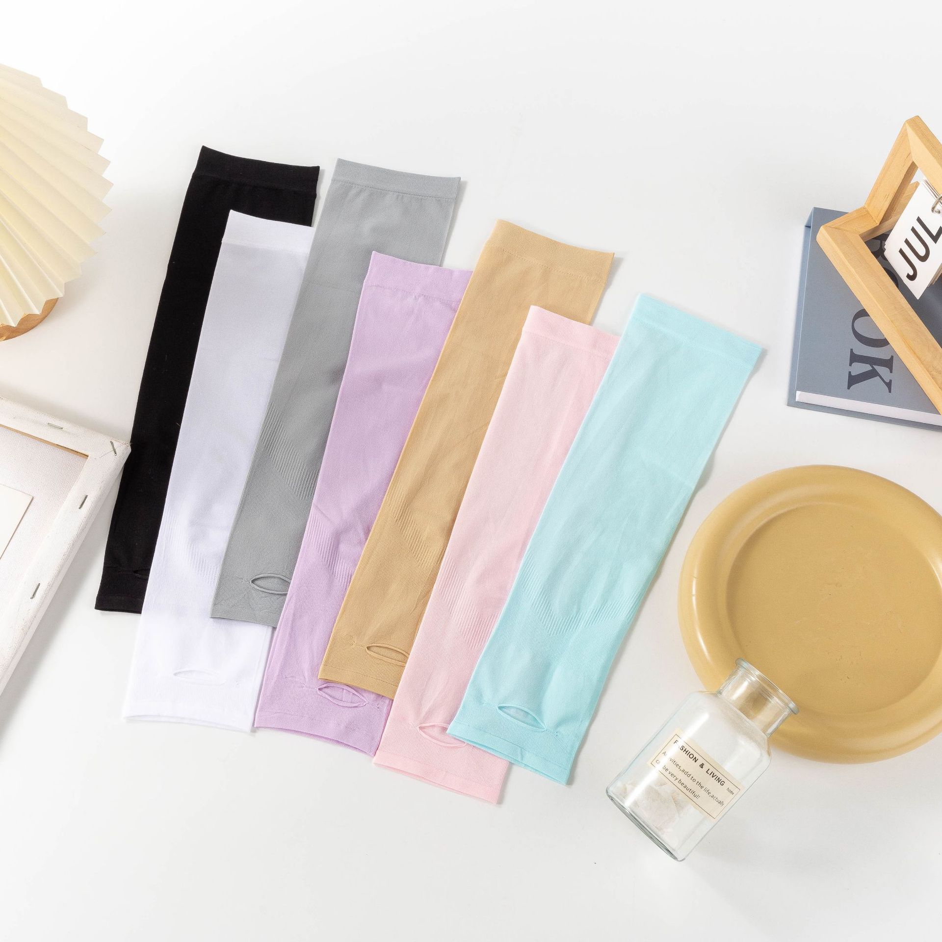 袖套防紫外线夏季冰袖纯色户外护臂休闲长袖登山男女防晒冰丝袖套