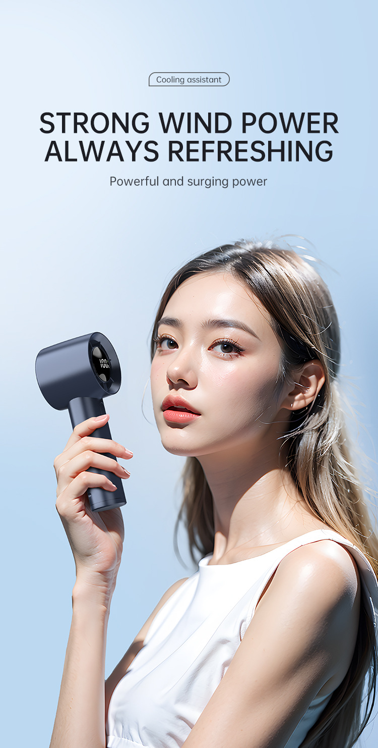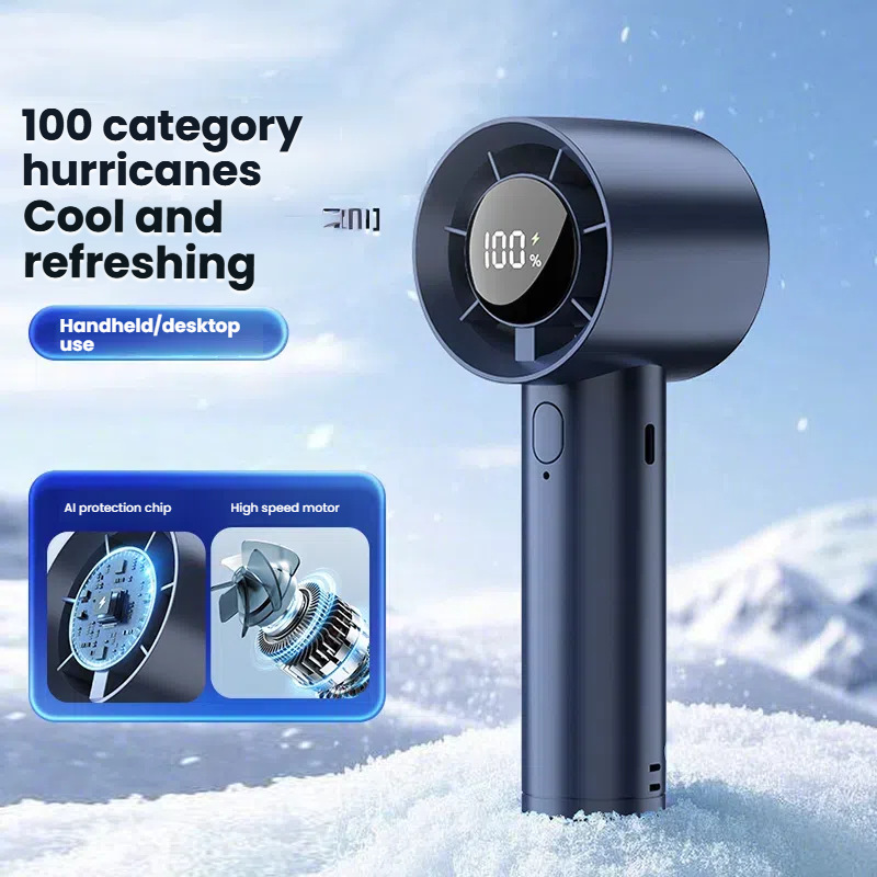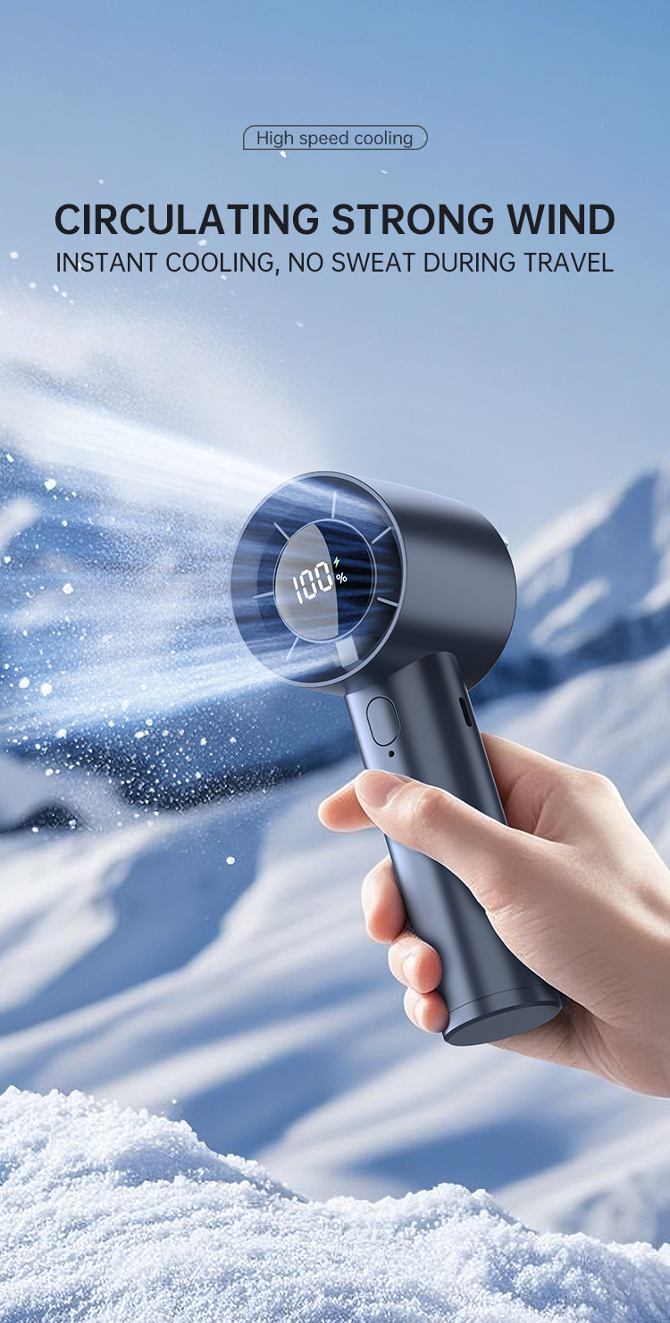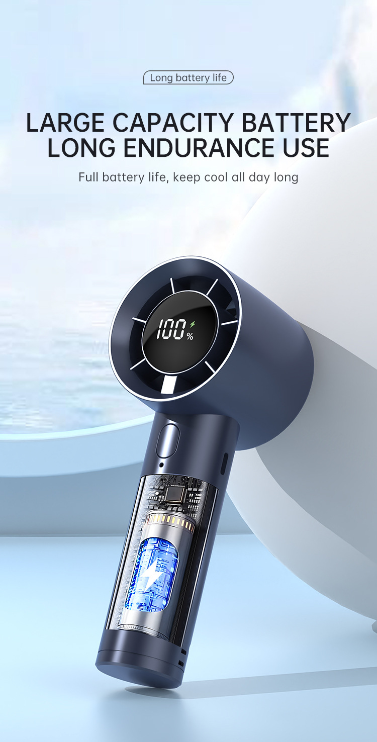 跨境手持小风炮涡轮高速风扇USB充电家用学生数显便携式小风扇